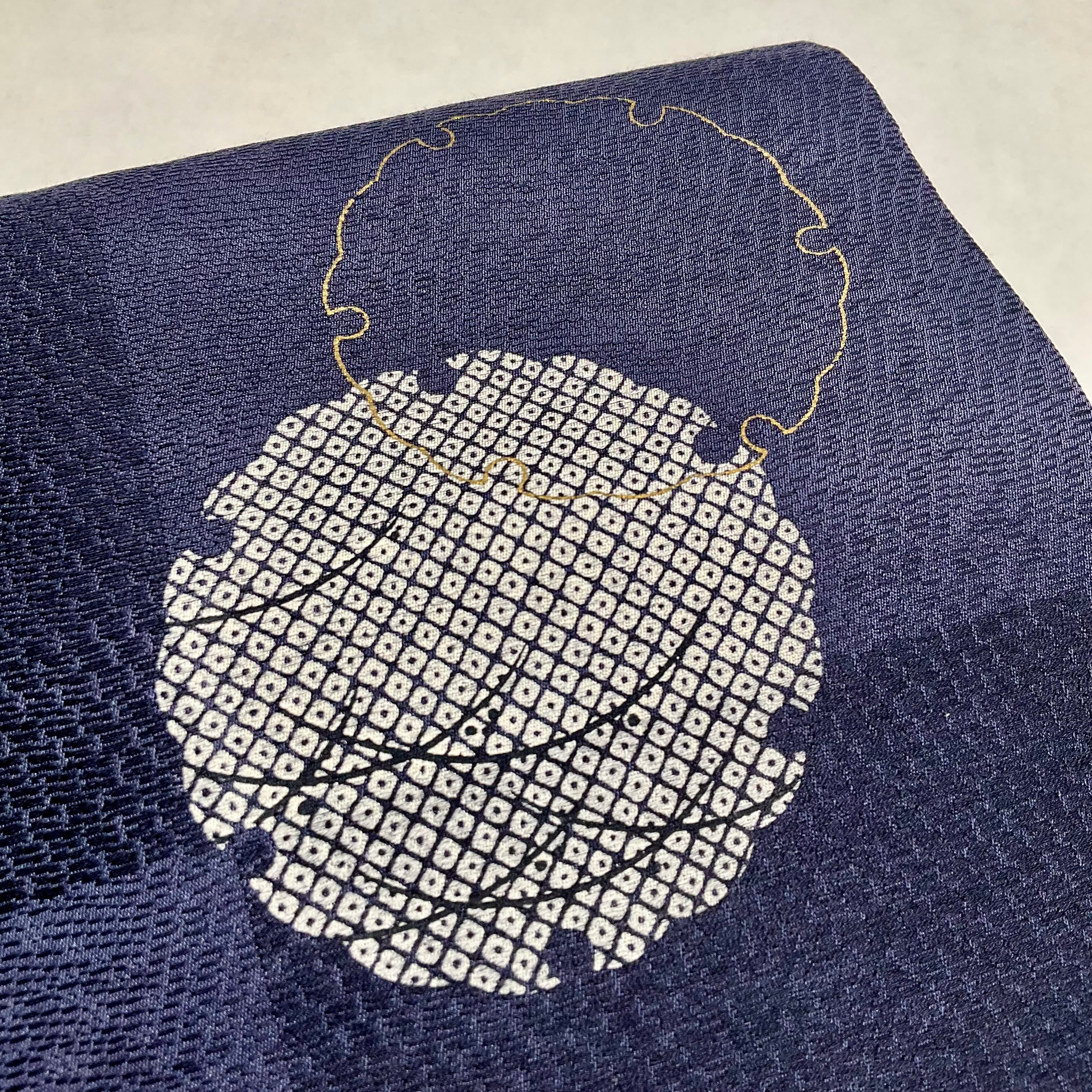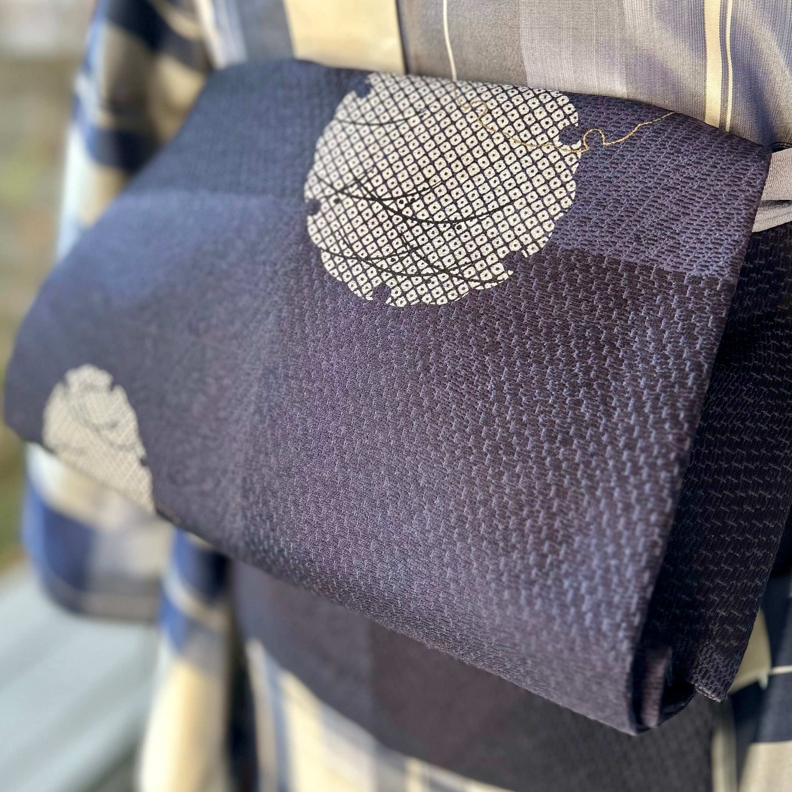 落ち着いたネイビーの地色が静かな夜を思い浮かべるような帯姿ですね