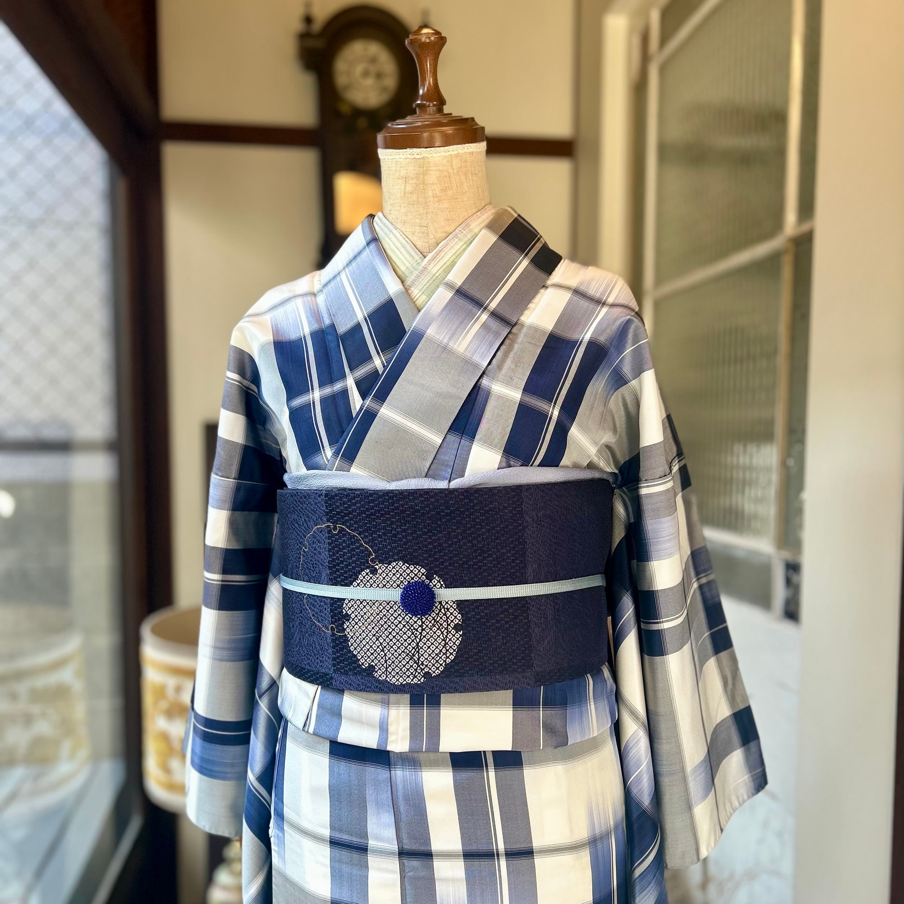 ○合わせた小紋とオリジナル帯揚げスモークブルーとオリジナル三分紐ブルーグレー×ホワイトはweb shop掲載品です♪