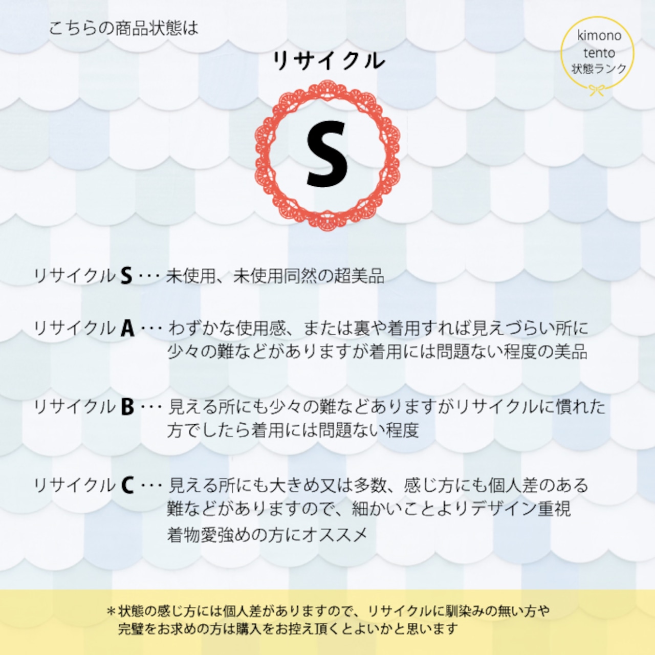 リサイクルC・・・見える所にも大きめ又は多数、感じ方にも個人差のある難などがありますので、細かいことよりデザイン重視!の着物愛強めの方にオススメ!