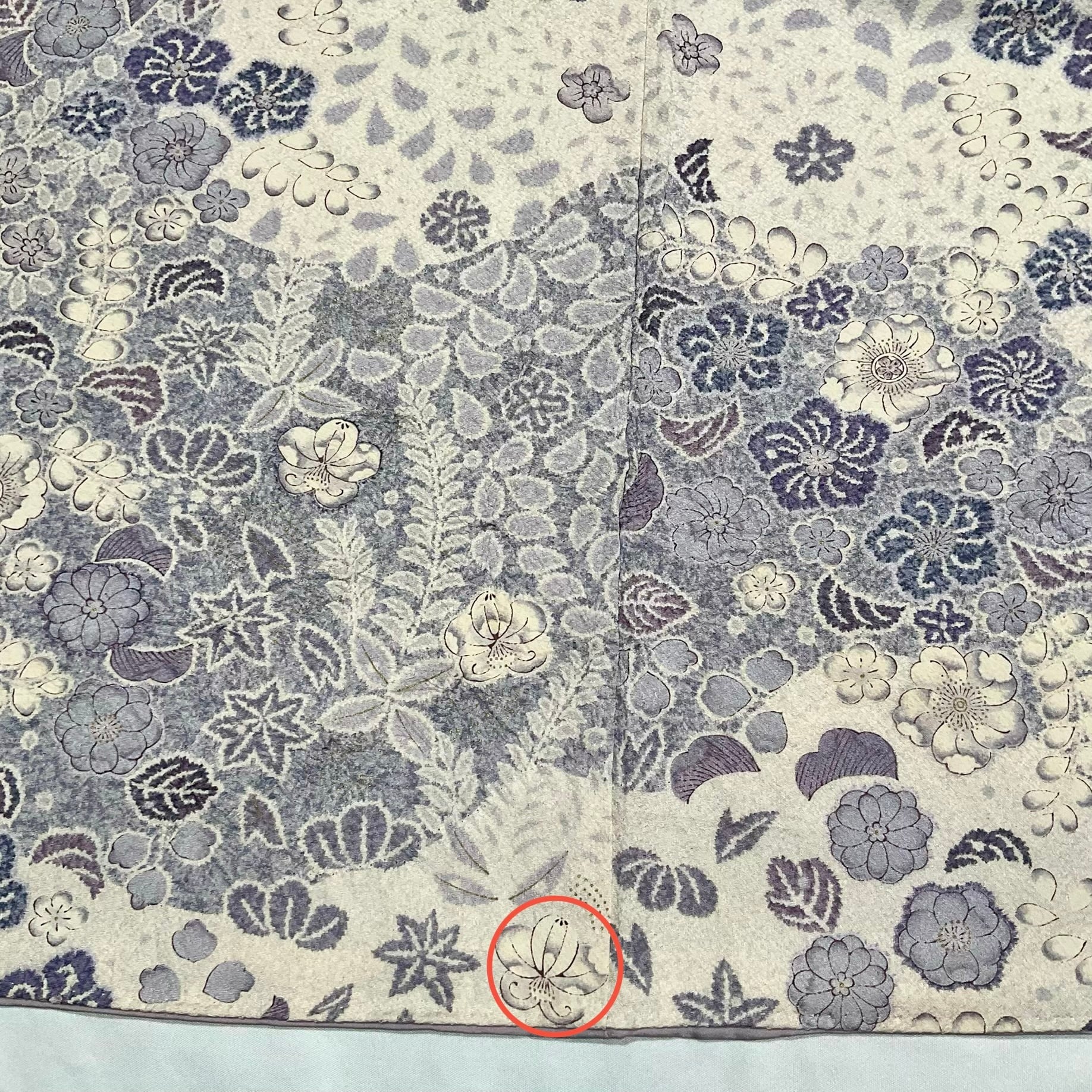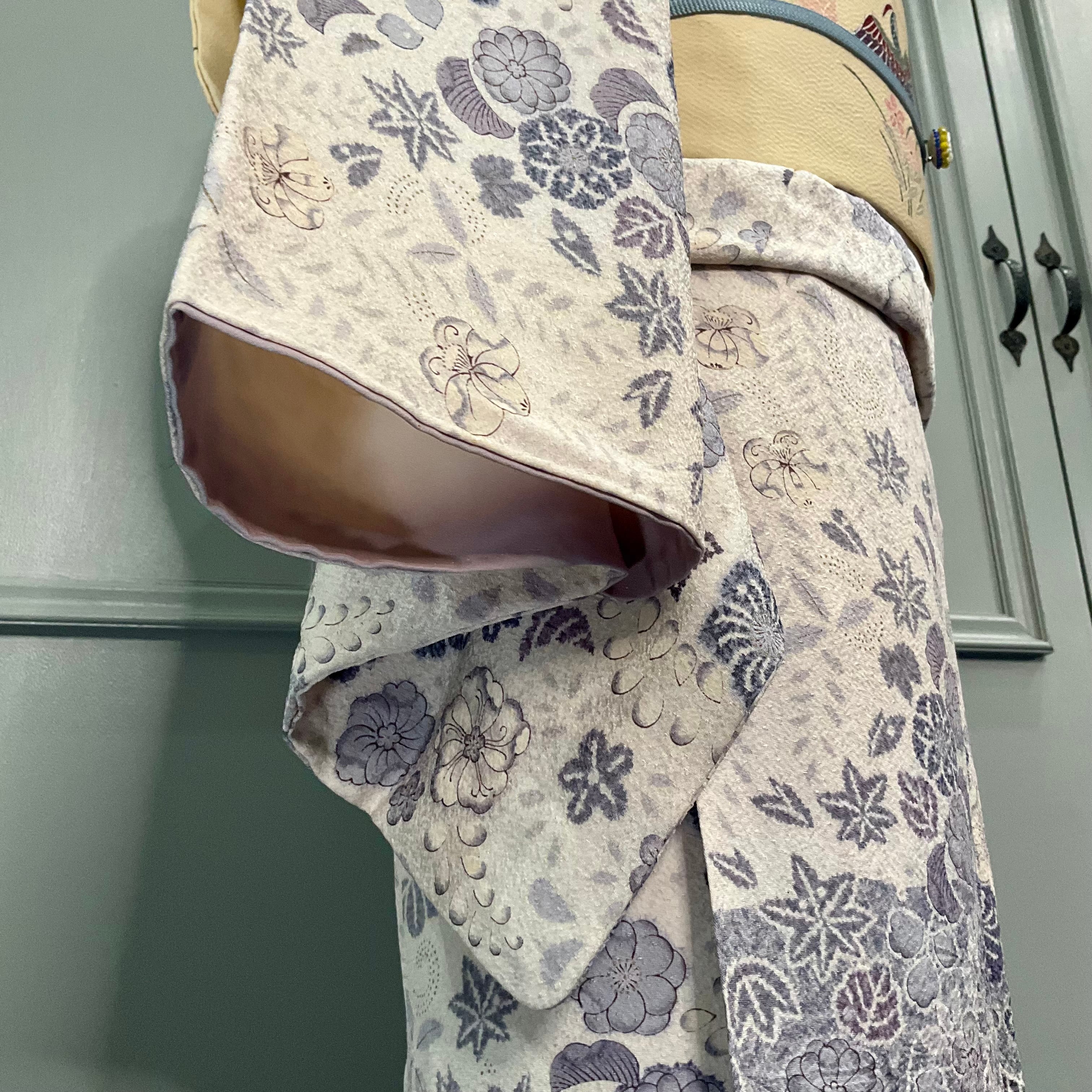 Timeless Grace*辻が花 縮緬 桜 藤 ホワイト 白 ラベンダー 藤色 カジュアル付下げ小紋着物 B607