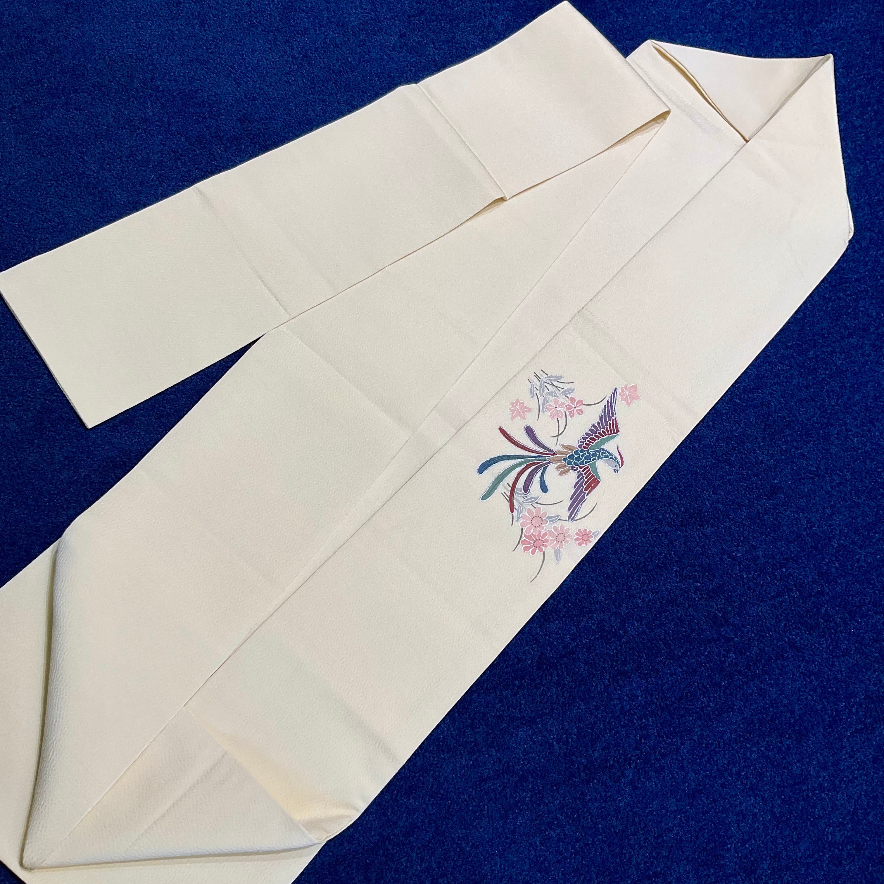 Songbird*鳥 花 縮緬 ちりめん 生成り ベージュ 空色 桃色 黄緑色 名古屋帯 B608