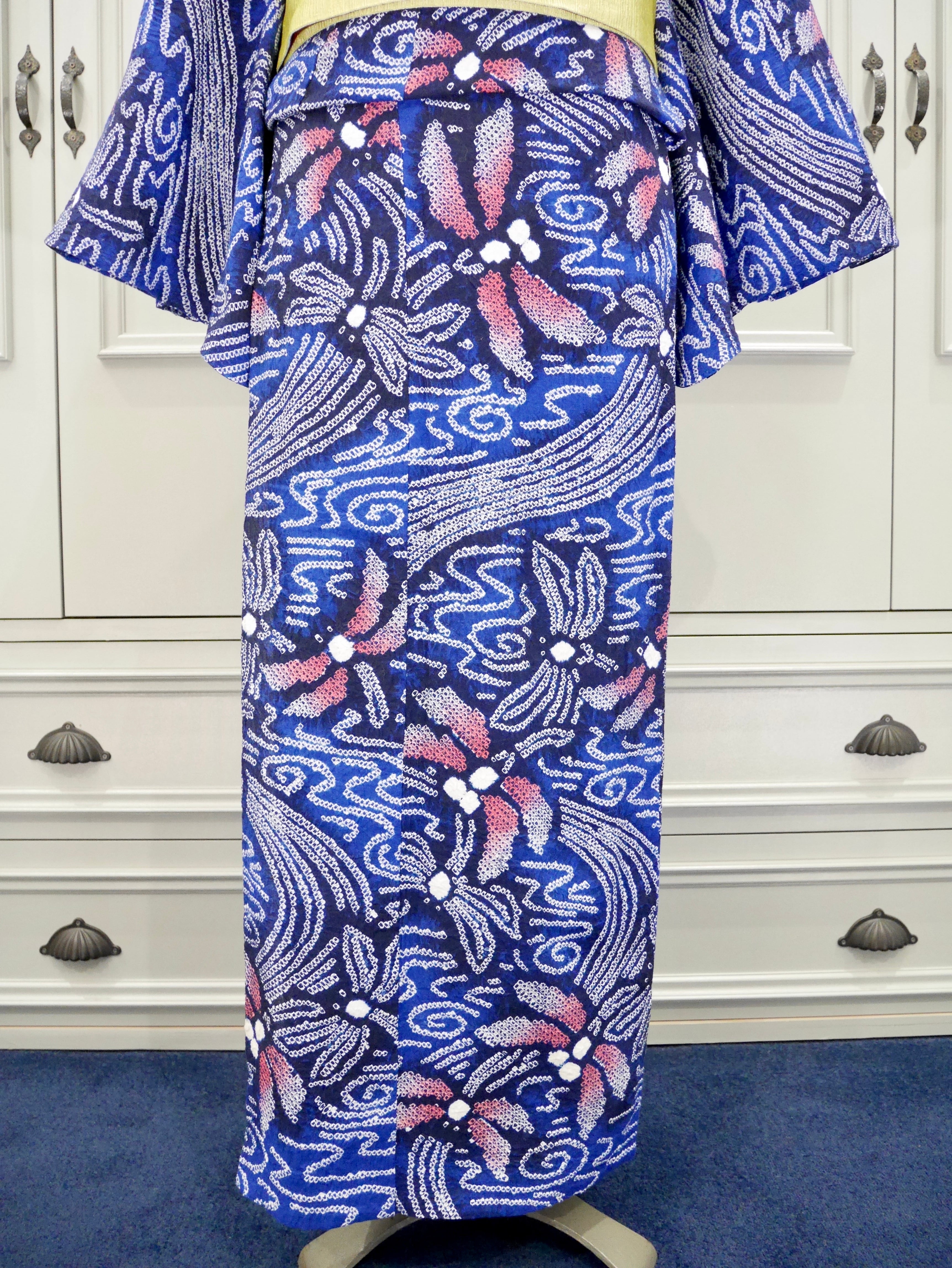 有松鳴海絞り浴衣*瑠璃色 水辺の赤蜻蛉 0152