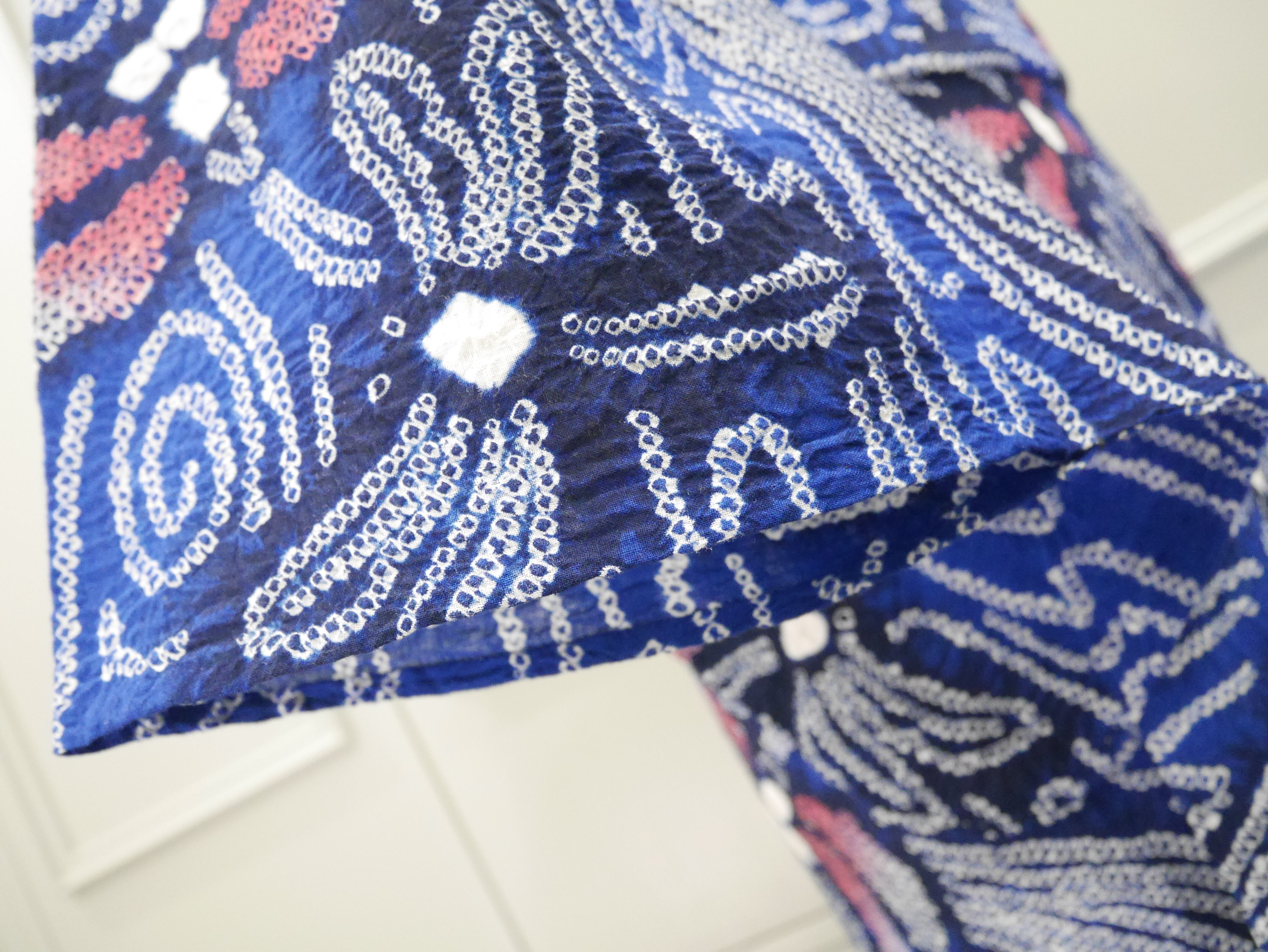 型彫り、絵刷り、糸を使った縫い絞りや括りの手作業、染色、糸抜き、などなどたくさんの技法がたくさんの人の手によって施され出来上がる、伝統工芸品です。