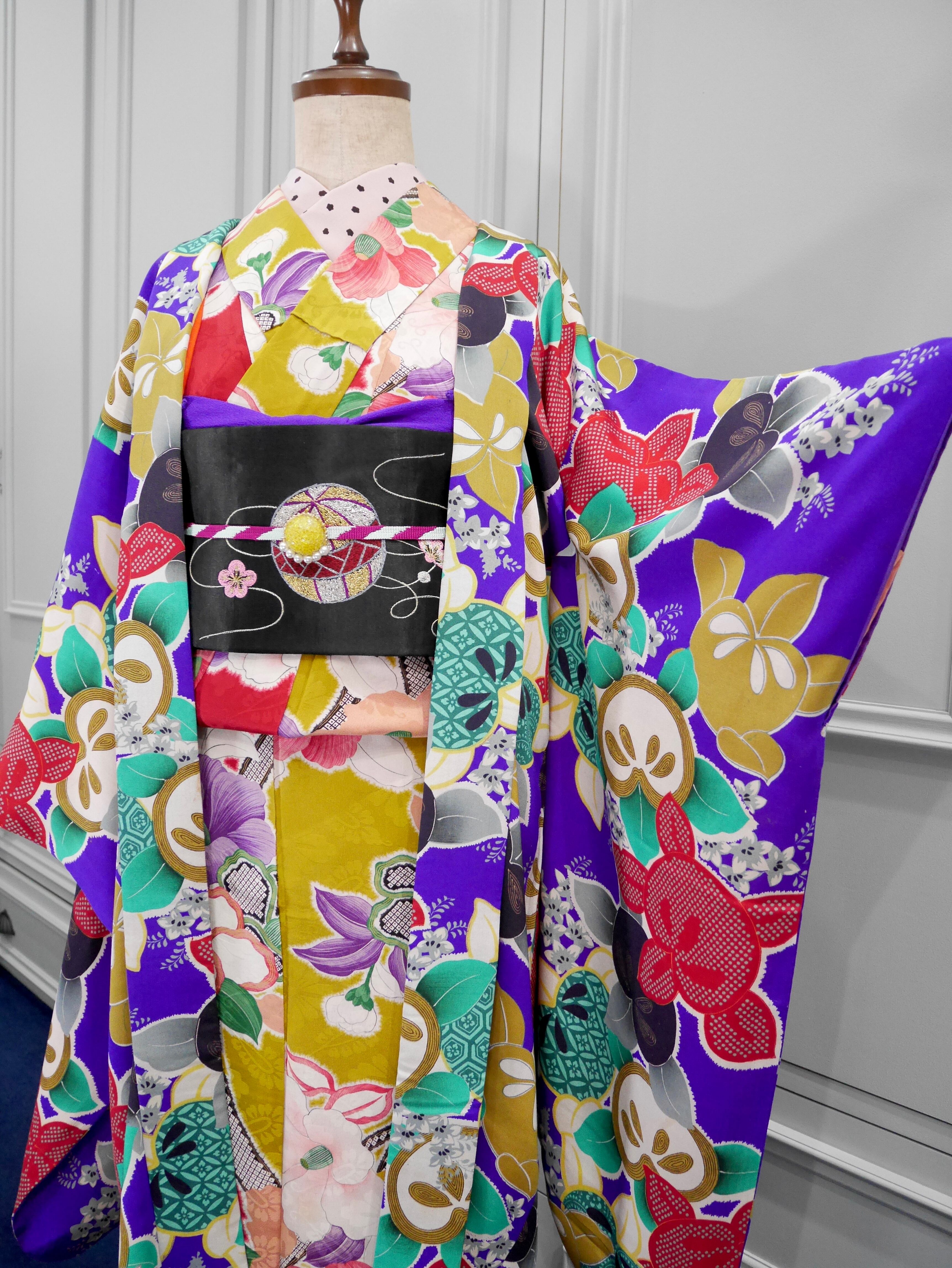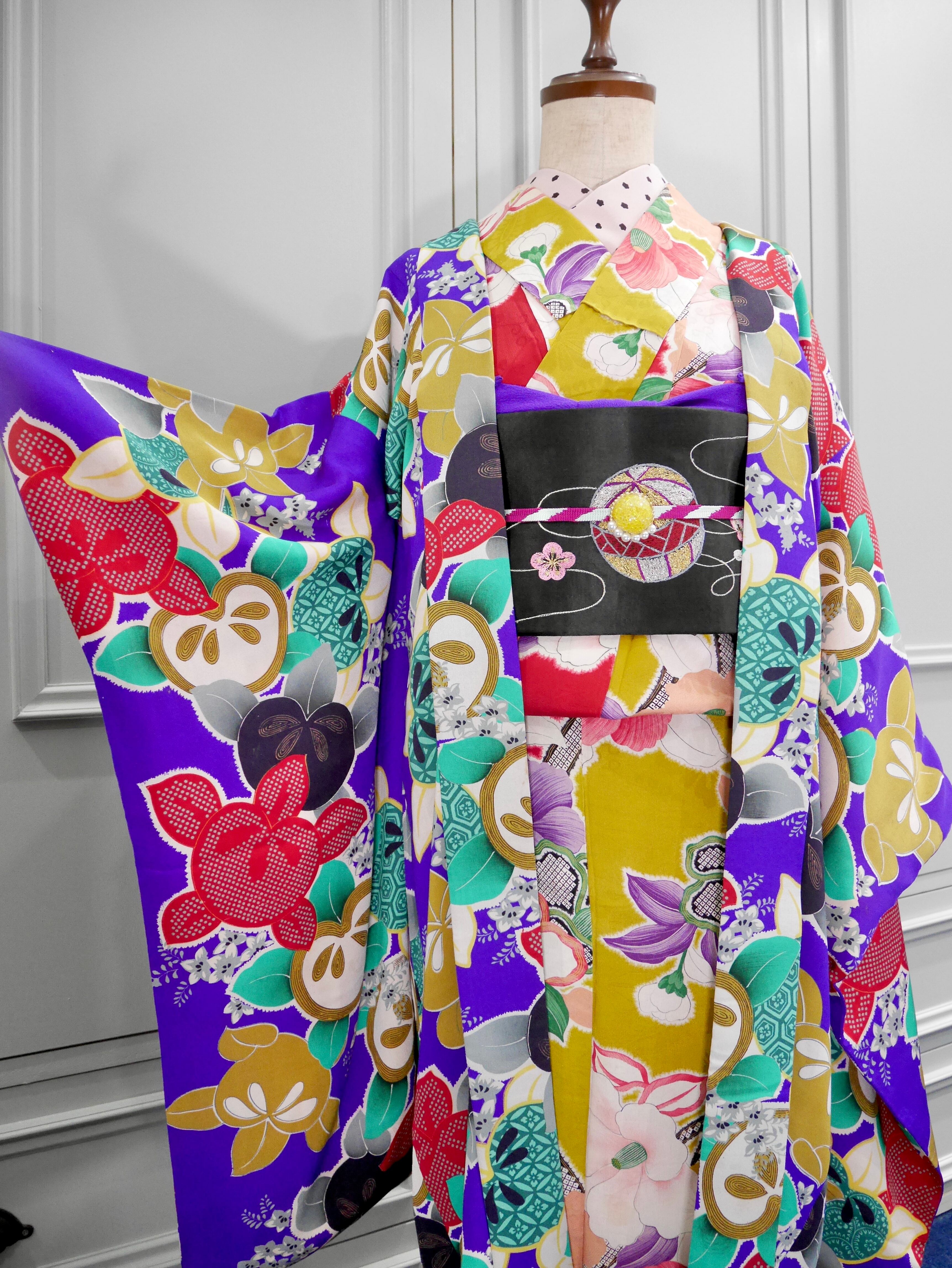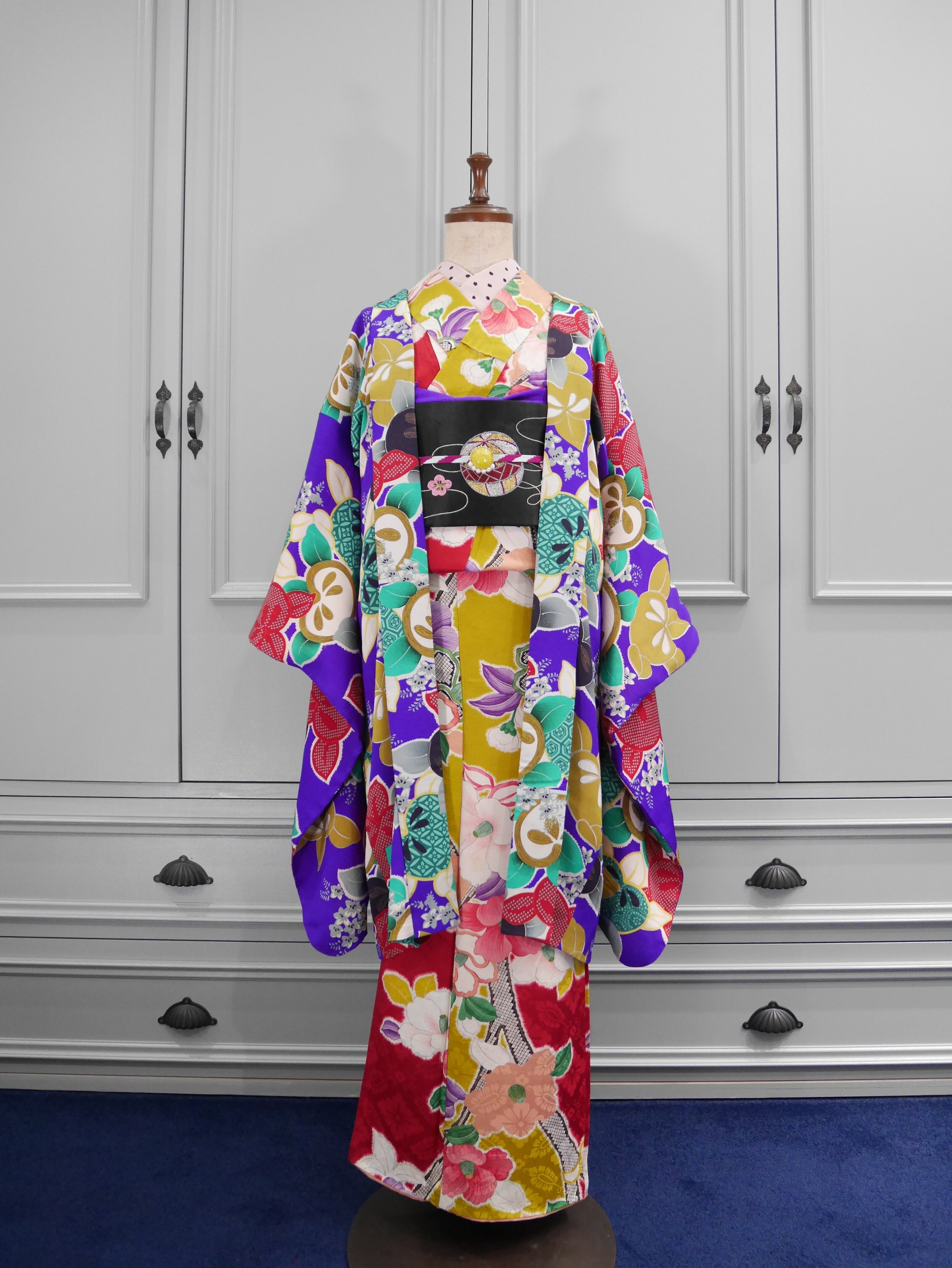 アンティークらしい綺麗な紫色に、赤、緑、黒、白、カラシ色などたくさんの色が入っていますが、抑え目でシックなカラーリングが大人っぽくカッコイイです✨