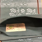 半幅帯*ダスティなブルーグリーンに花柄の織模様 博多織 0233