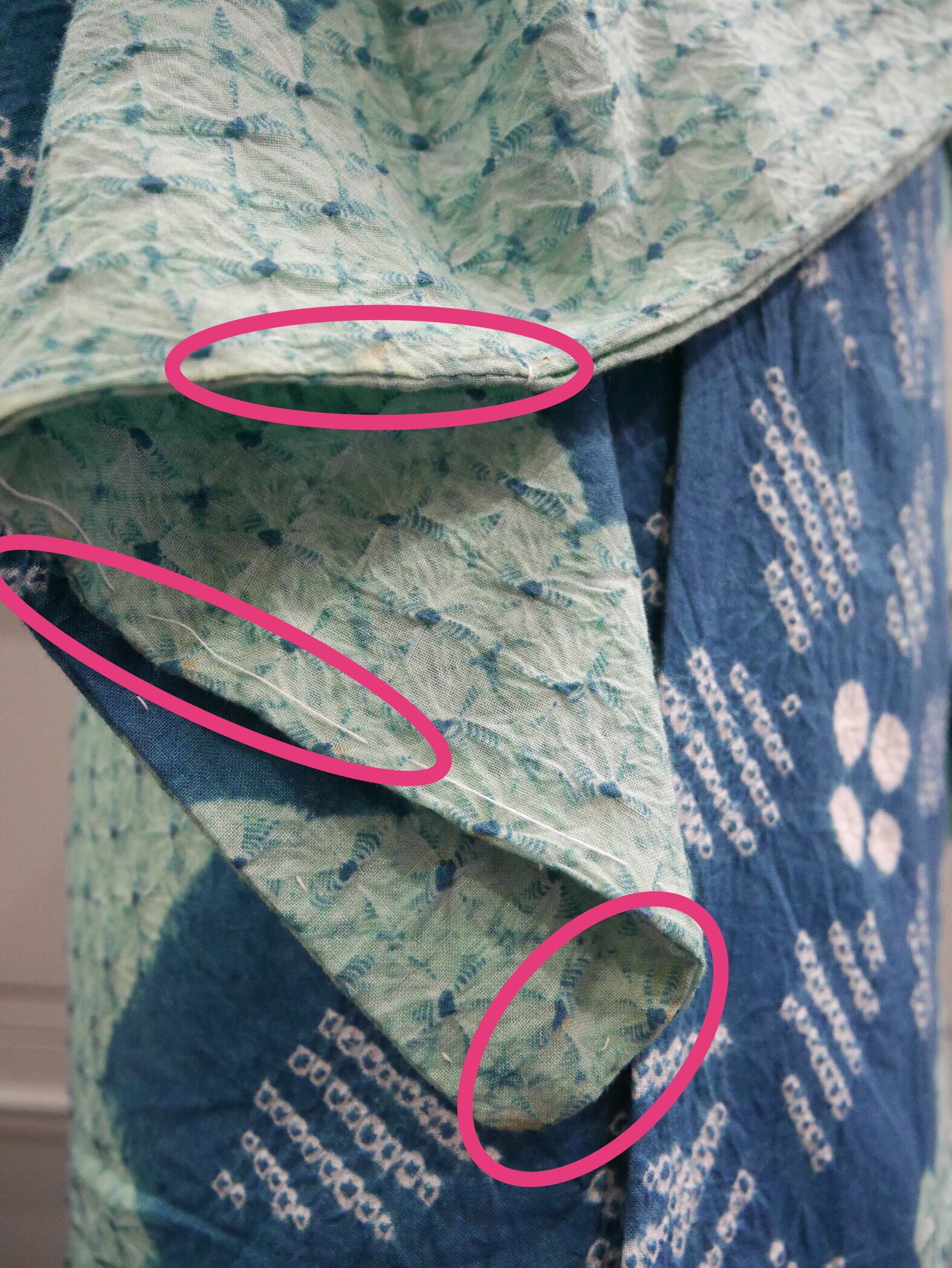 両袖の端、後ろ裾にいくつかアク有り