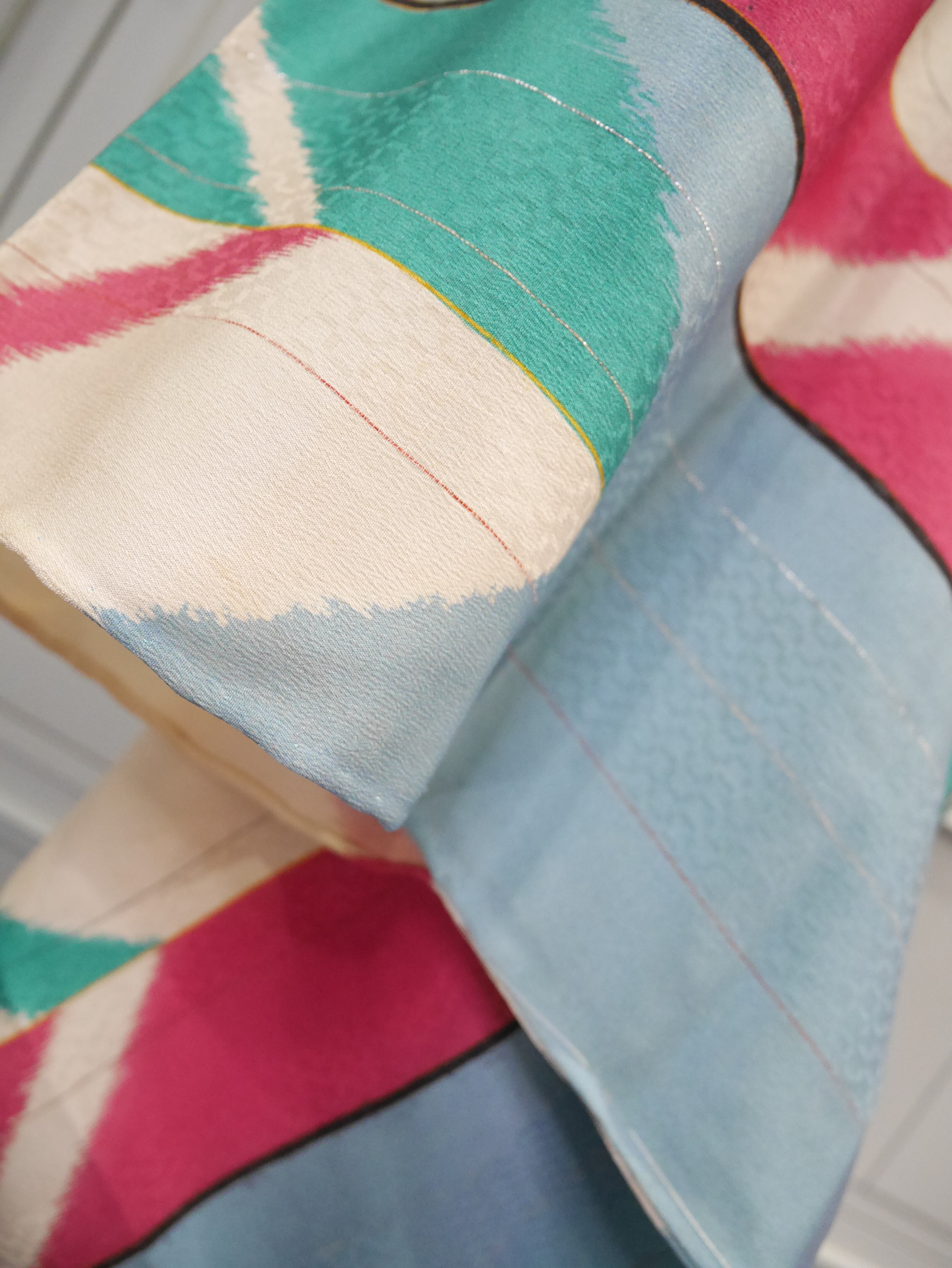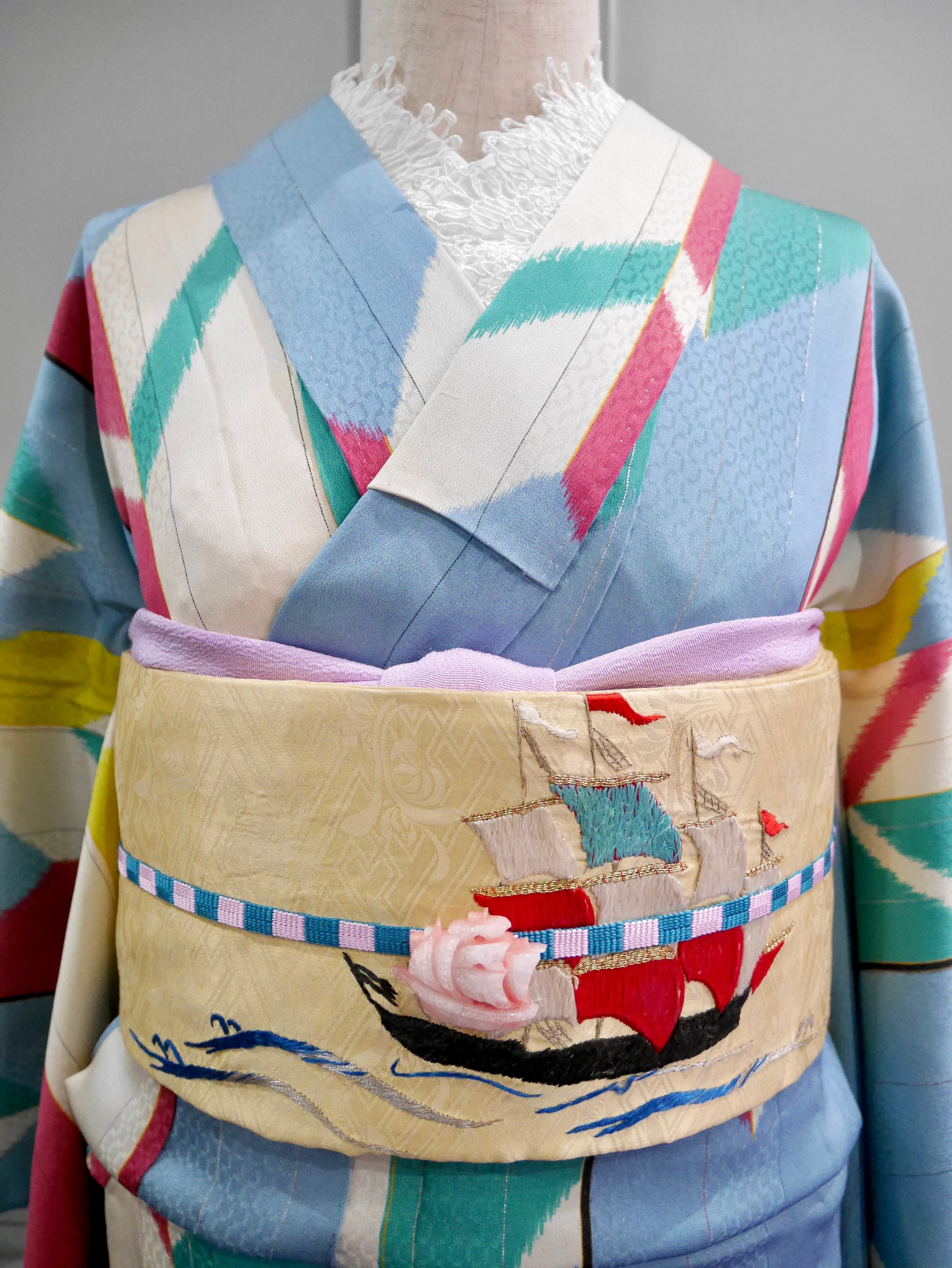 ○合わせた名古屋帯と、オリジナル三分紐しましま グリーン×ピンクもweb shop掲載品です♪