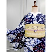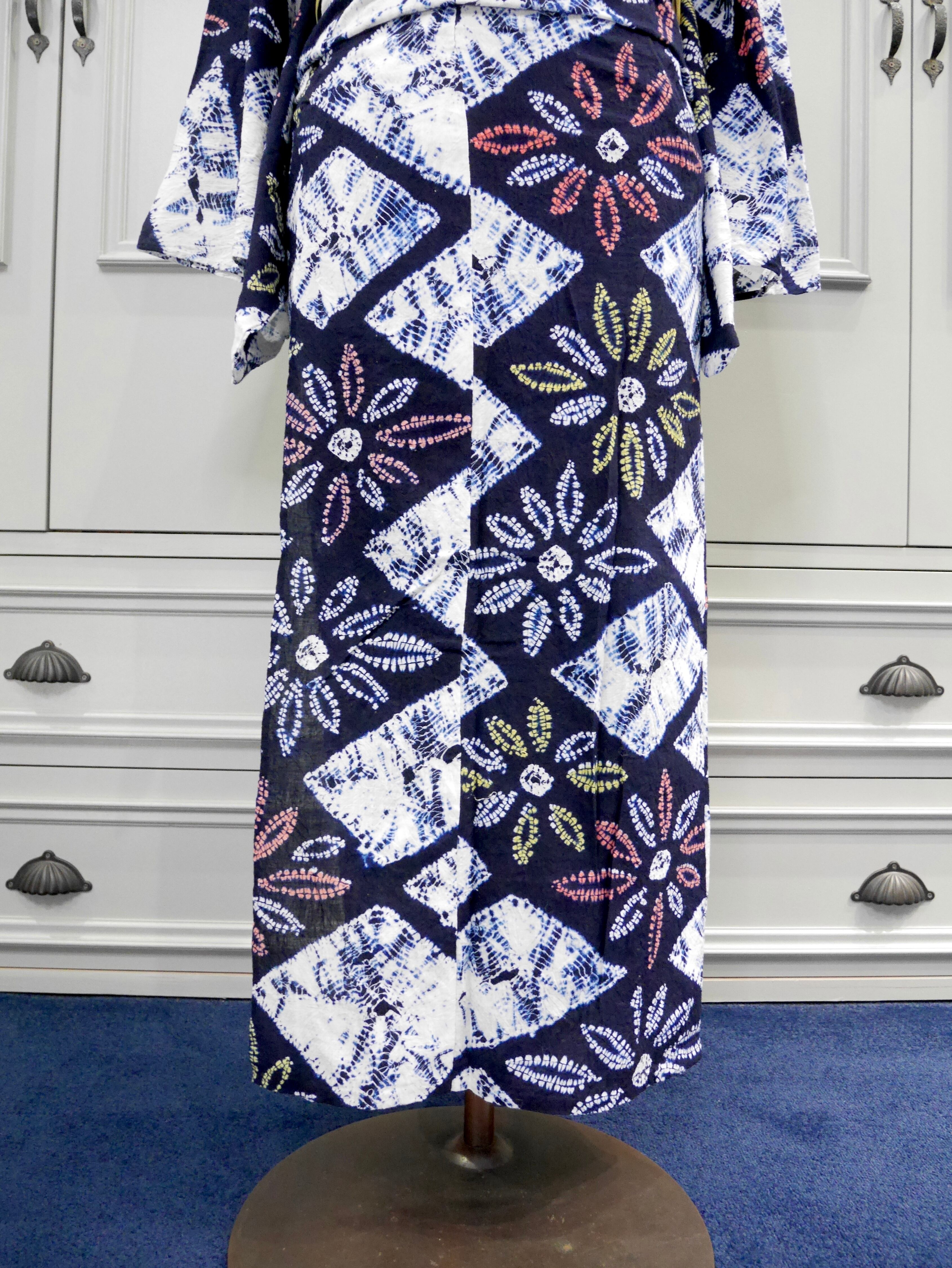 有松鳴海絞り浴衣*藍色×白 フラワータイル 0319