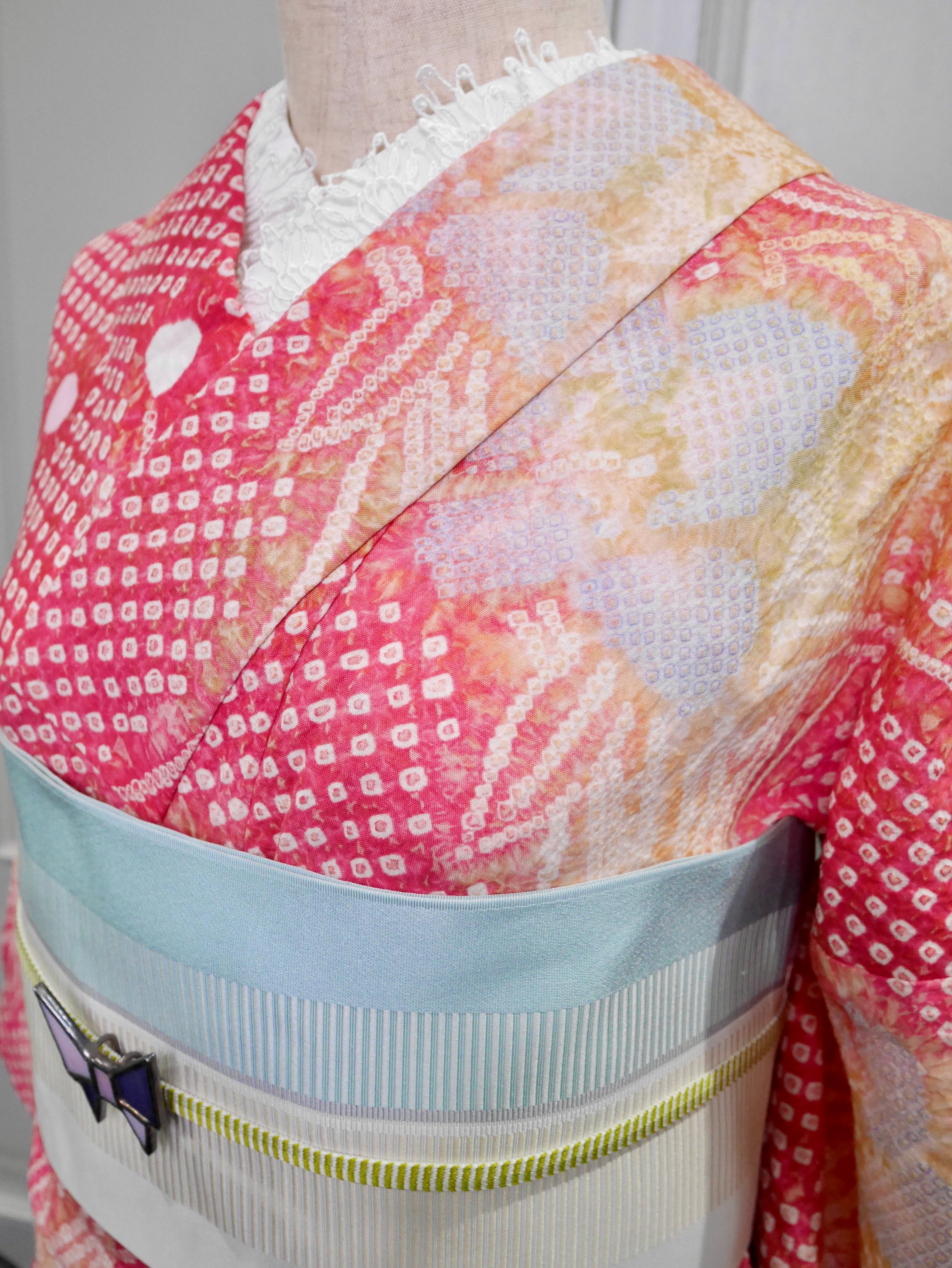なかなか無い絶妙なピンク系の絞り浴衣♡