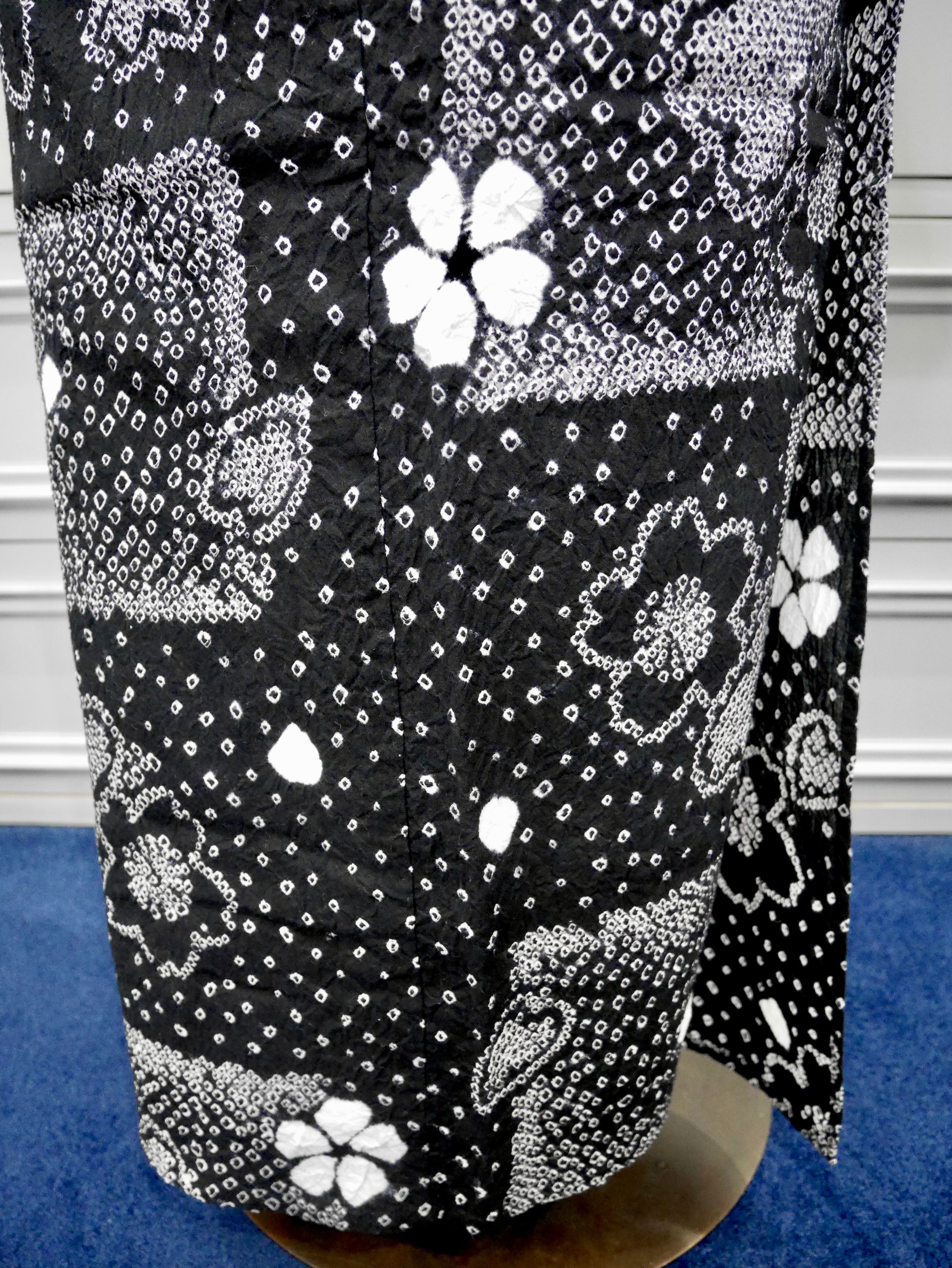 有松鳴海絞り浴衣*黒地に桜と市松模様 0338