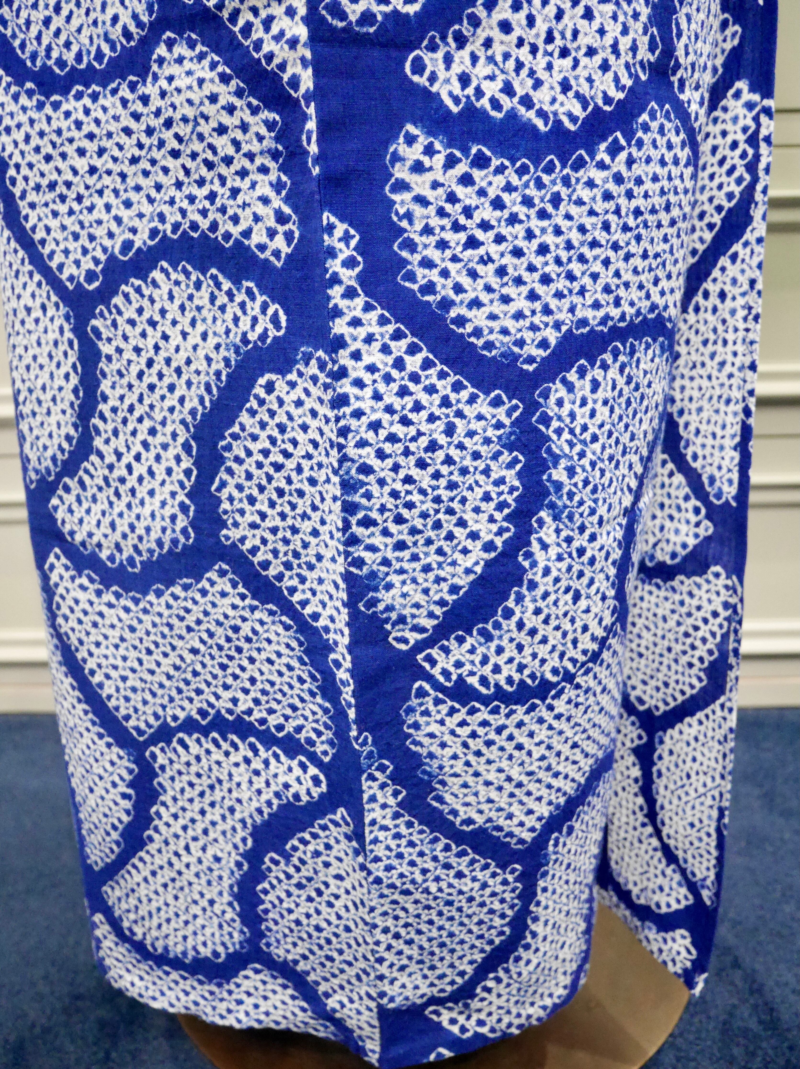 明るい藍色で水面の揺らぎのような模様が綺麗な有松鳴海絞り浴衣です!