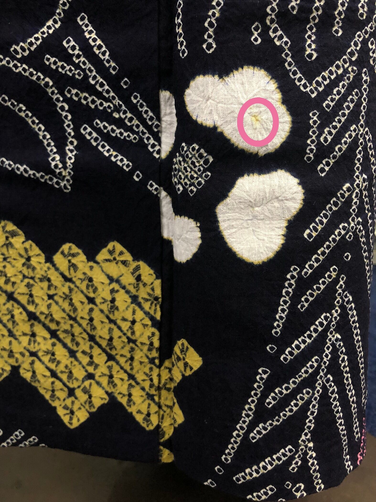 (シミなどの箇所を○で示していますので写真にてご確認ください。)