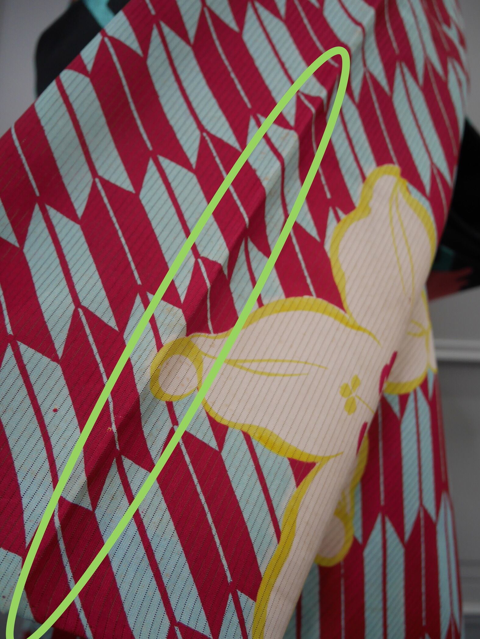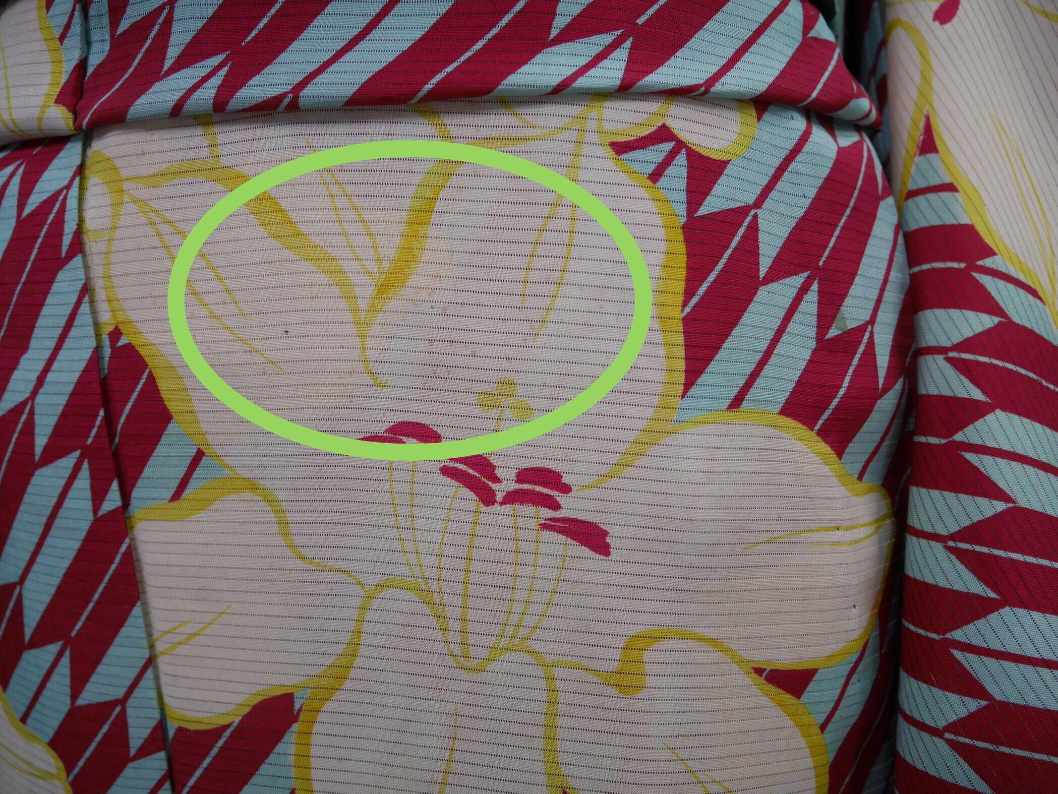 両袖山、前身頃、後身頃など(写真掲載以外にも全体的に百合の白場を中心に)細かい点アクが多数有り。