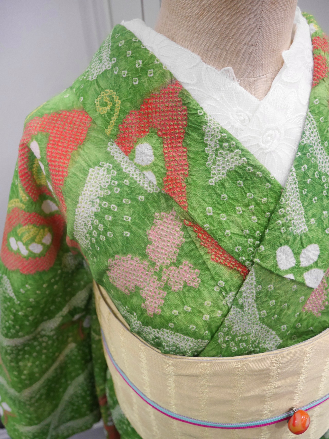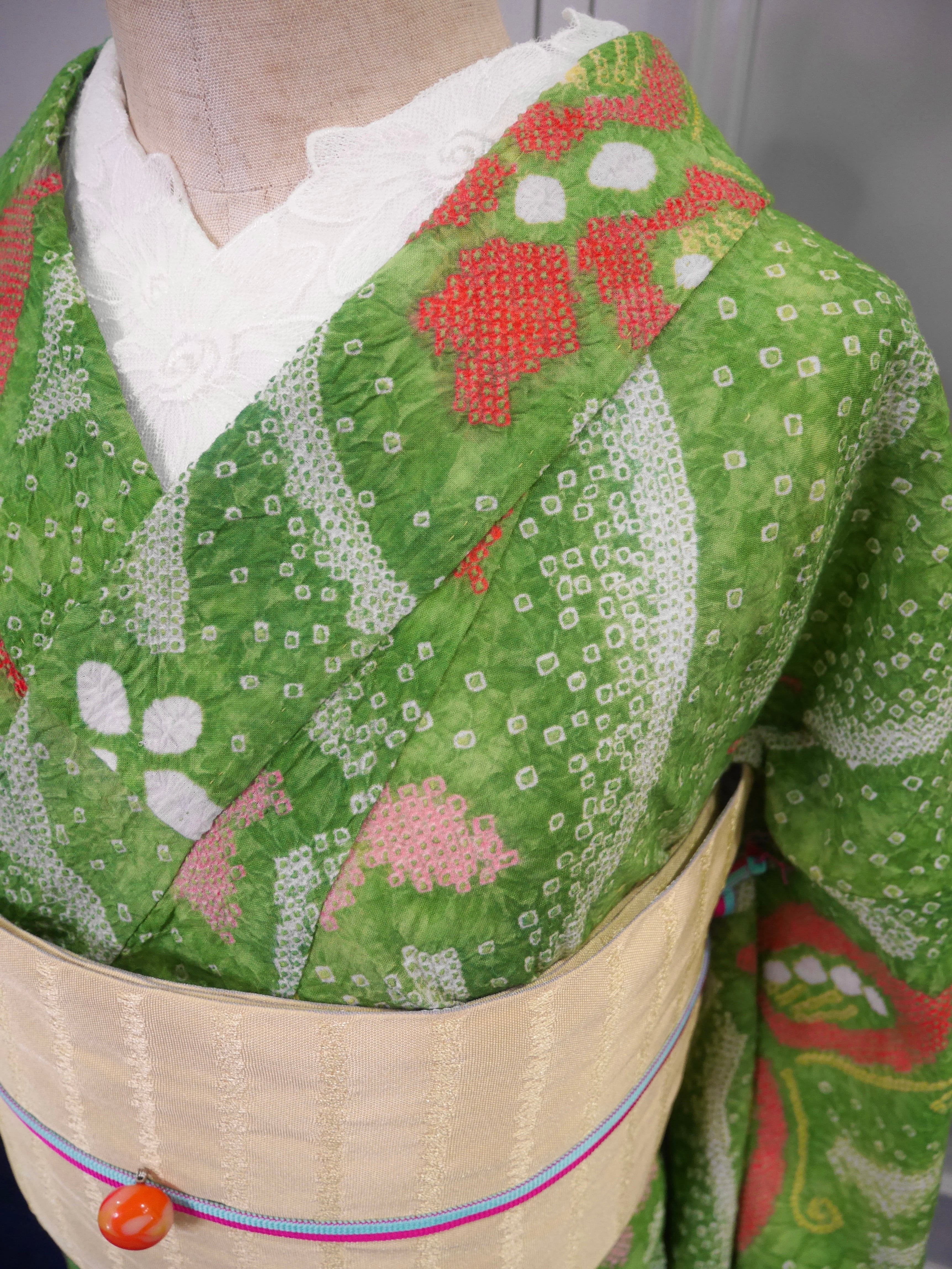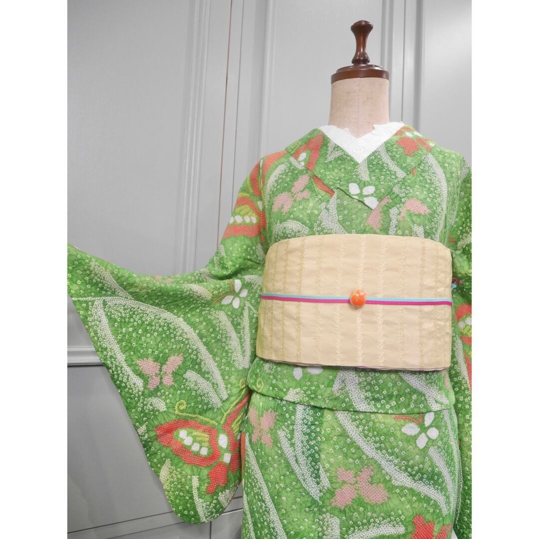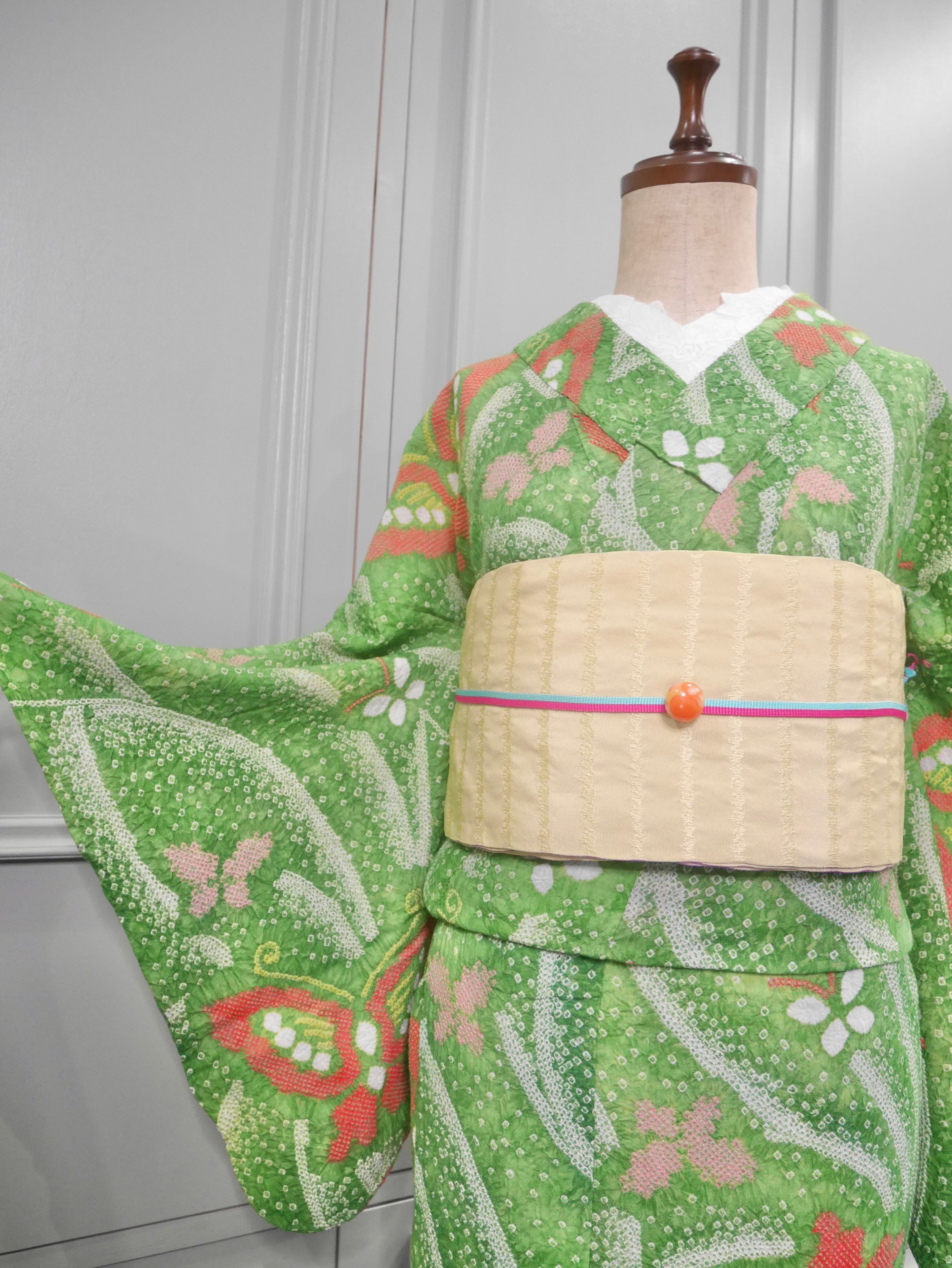 有松鳴海絞り浴衣*リーフグリーン×風に舞うバタフライ 0377