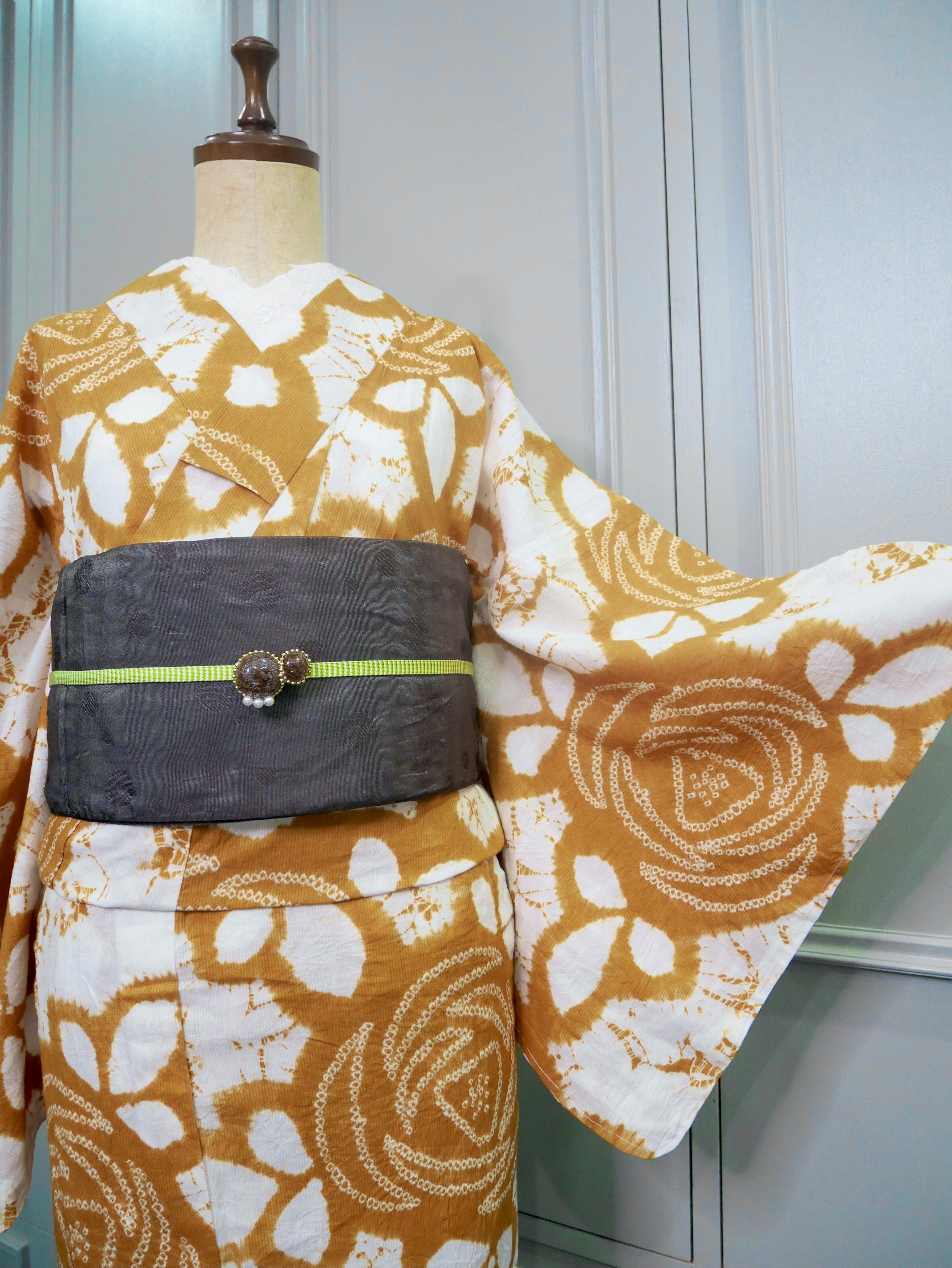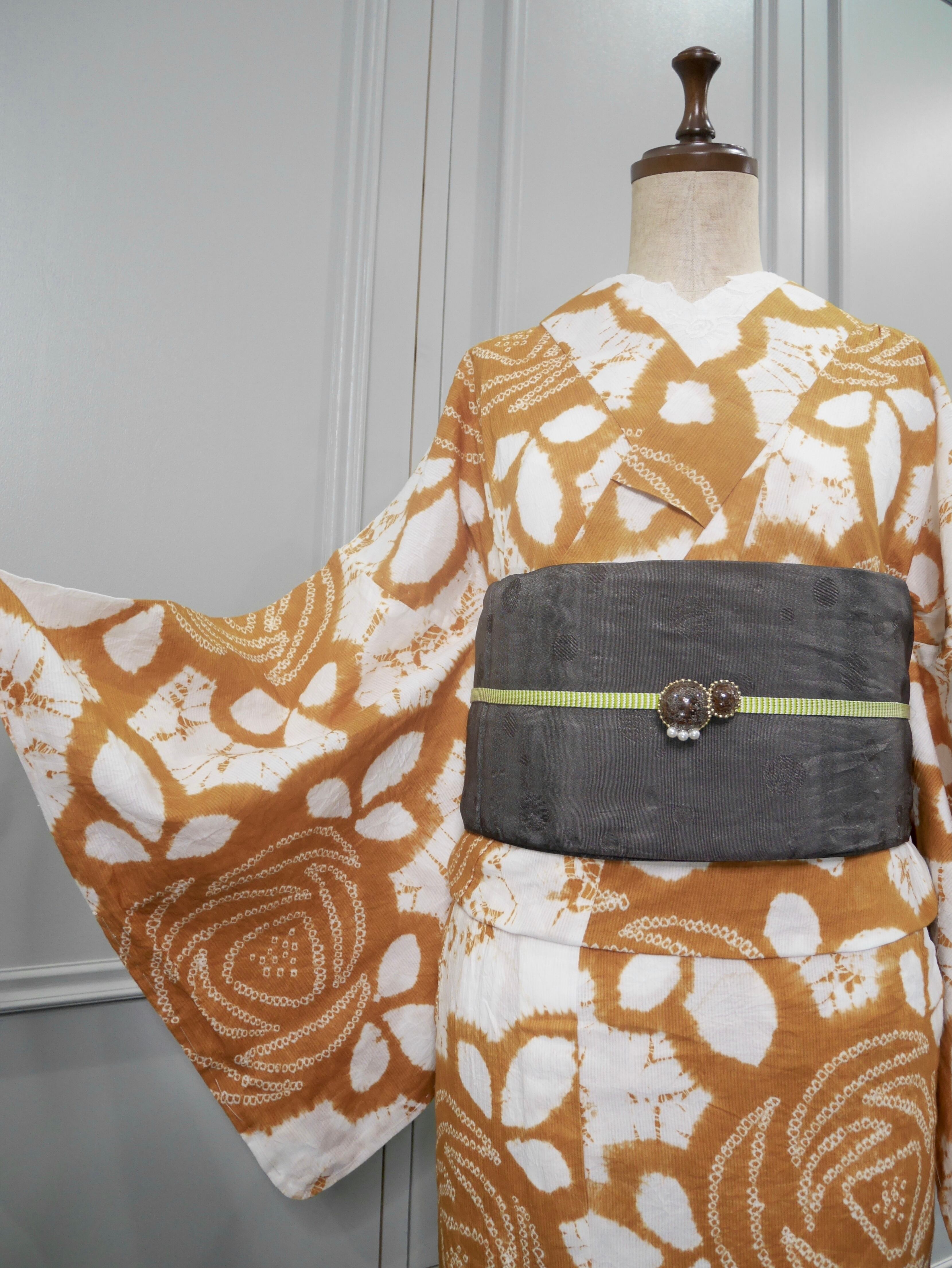 ロング*有松鳴海絞り浴衣*キャラメルオレンジミルク×ローズ 0380