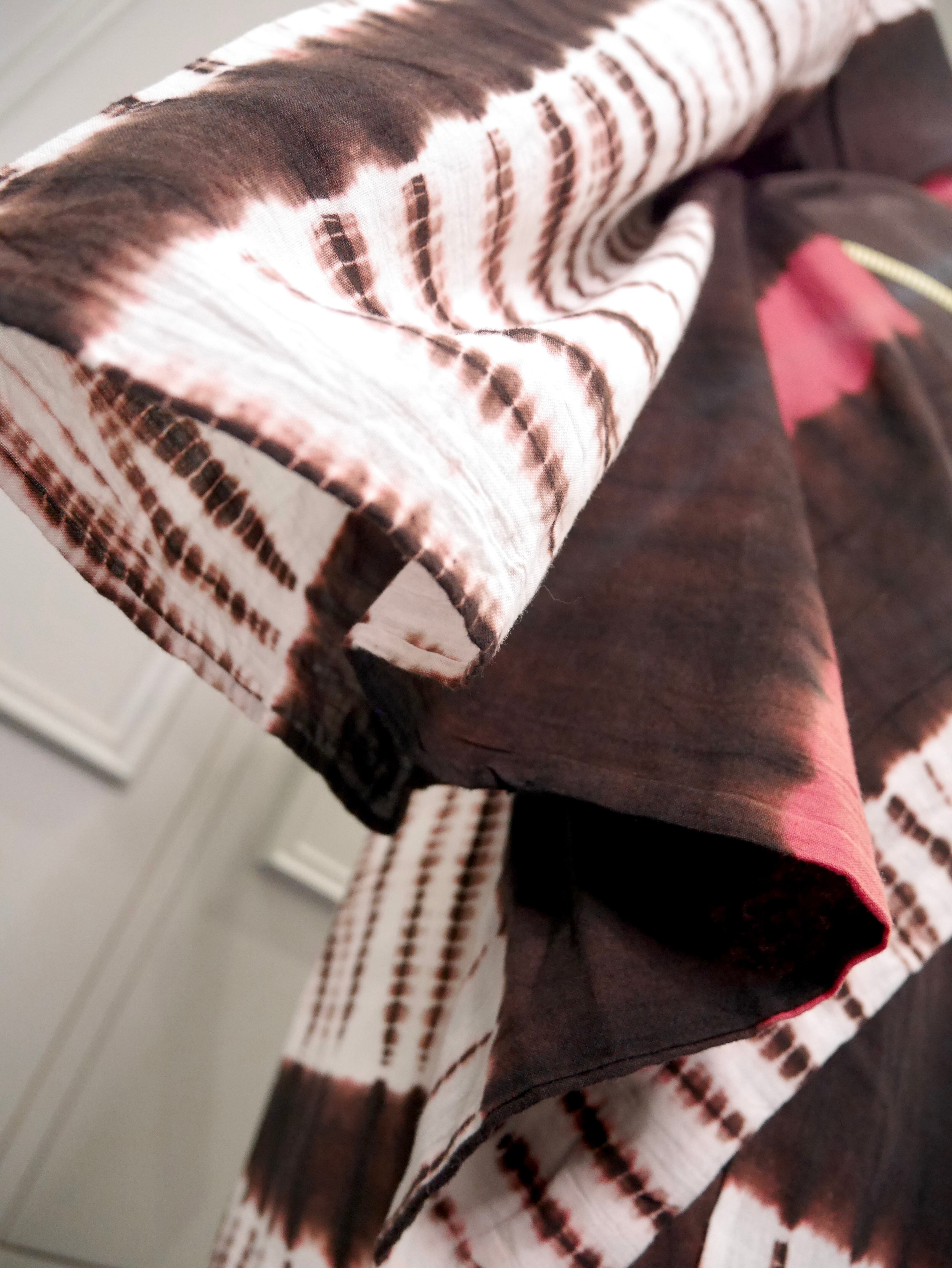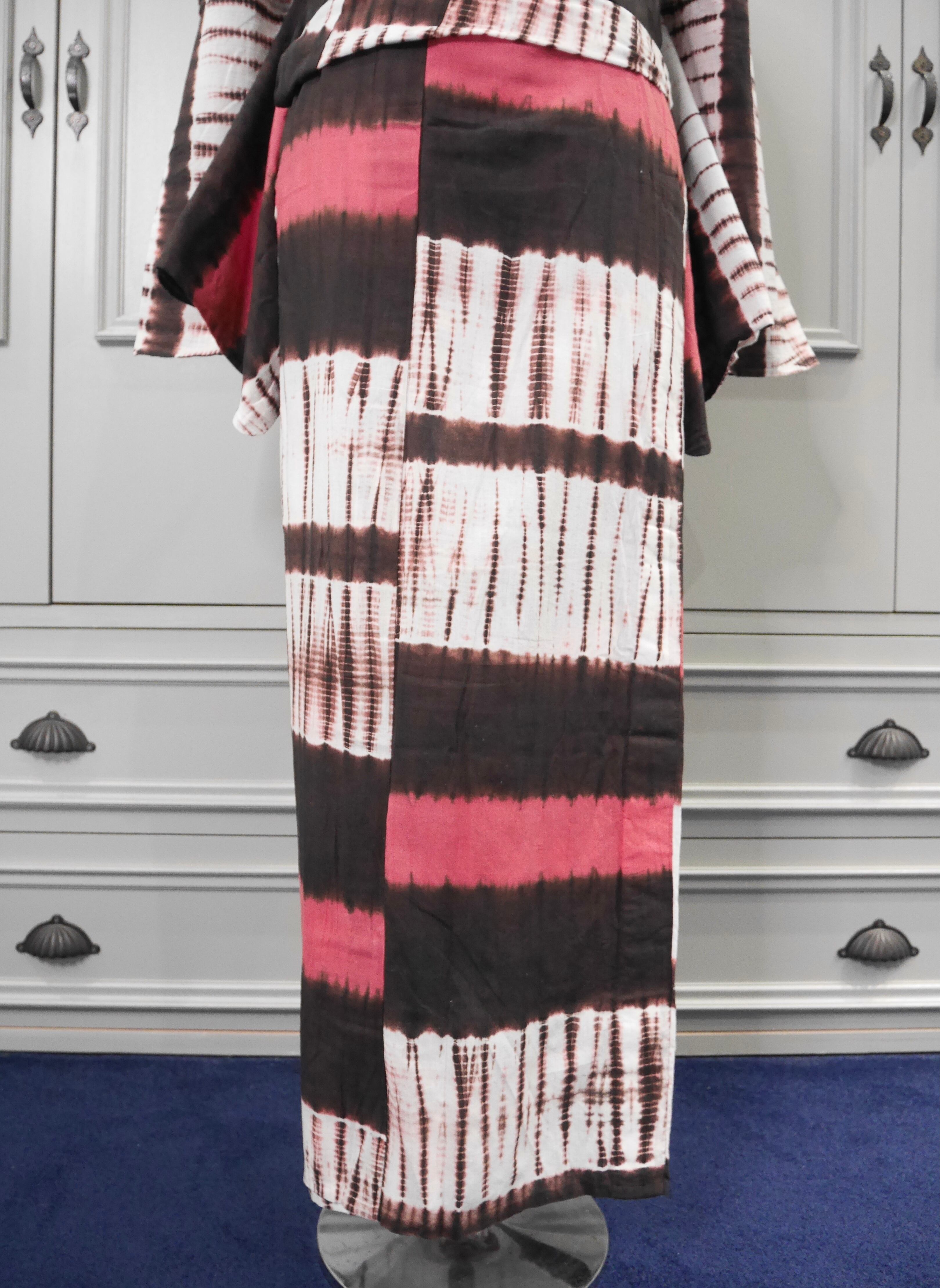 ダークブラウン×ホワイト×ピンク系の組み合わせがオシャレな有松鳴海絞り浴衣です!