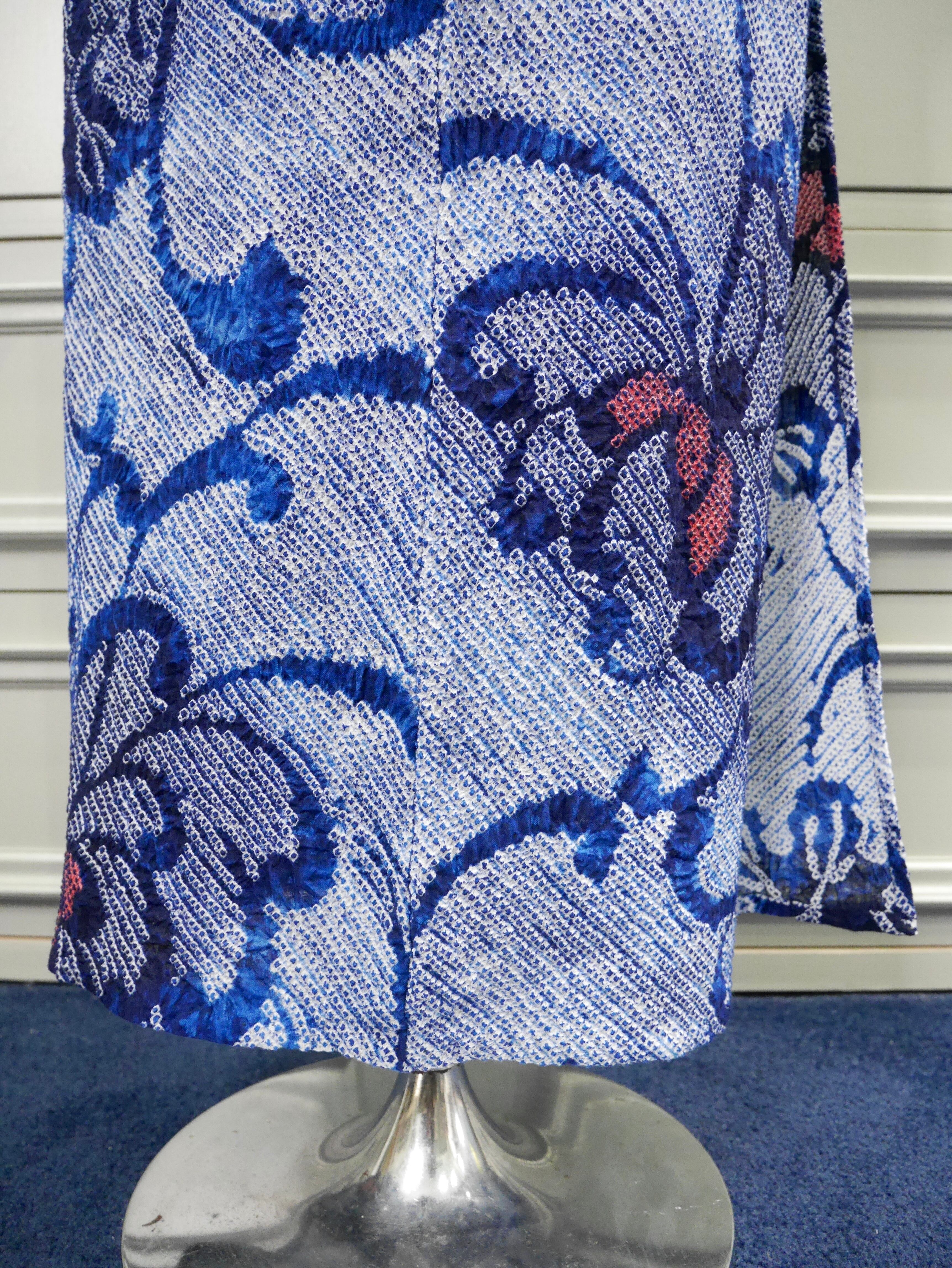 有松鳴海絞り浴衣*ディープブルーウェーブ×フラワー0389