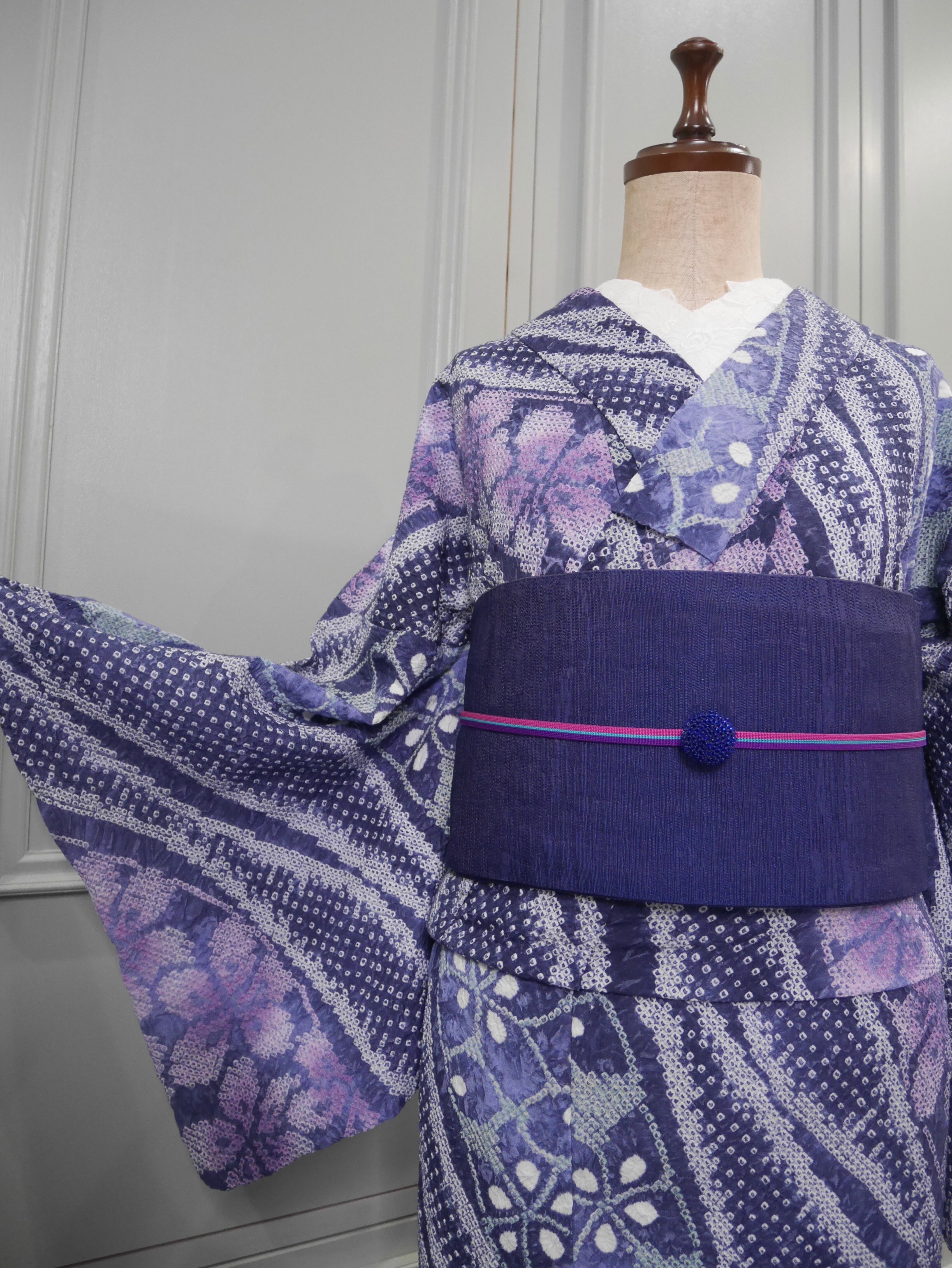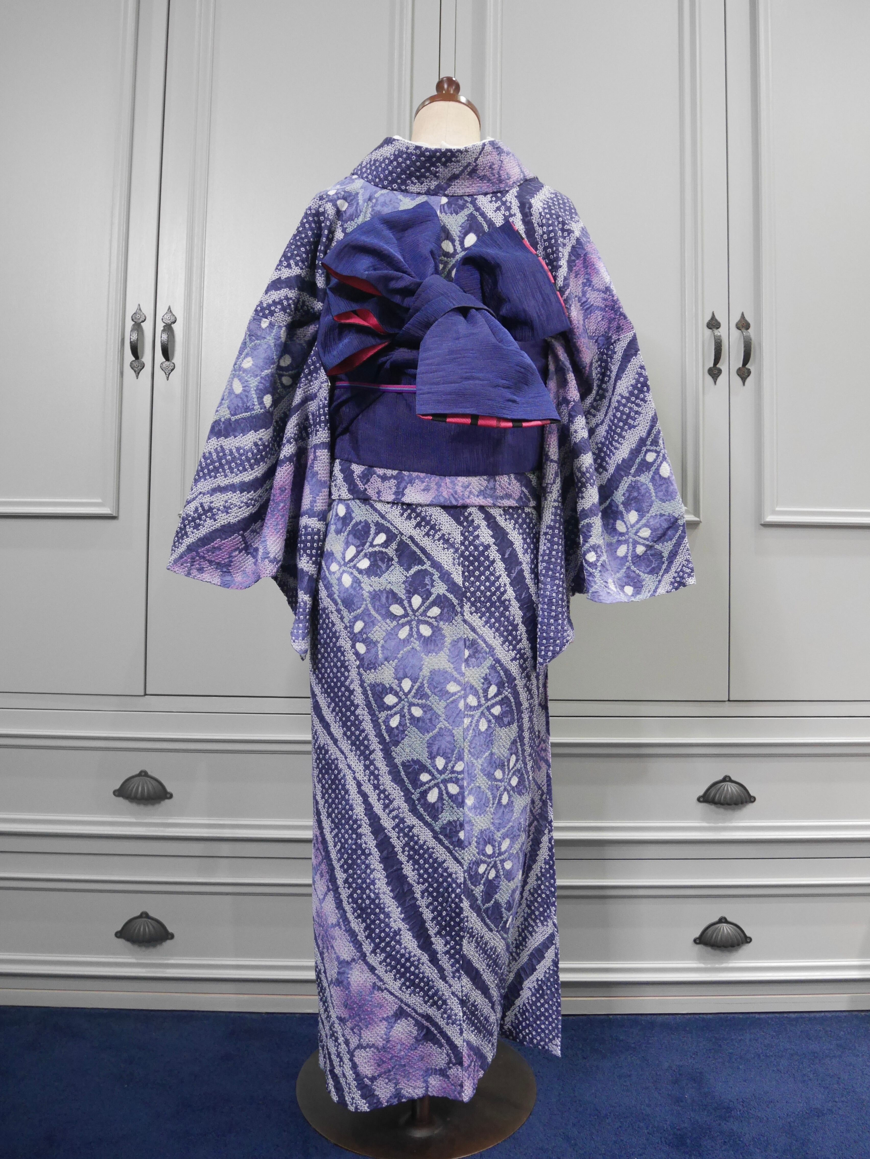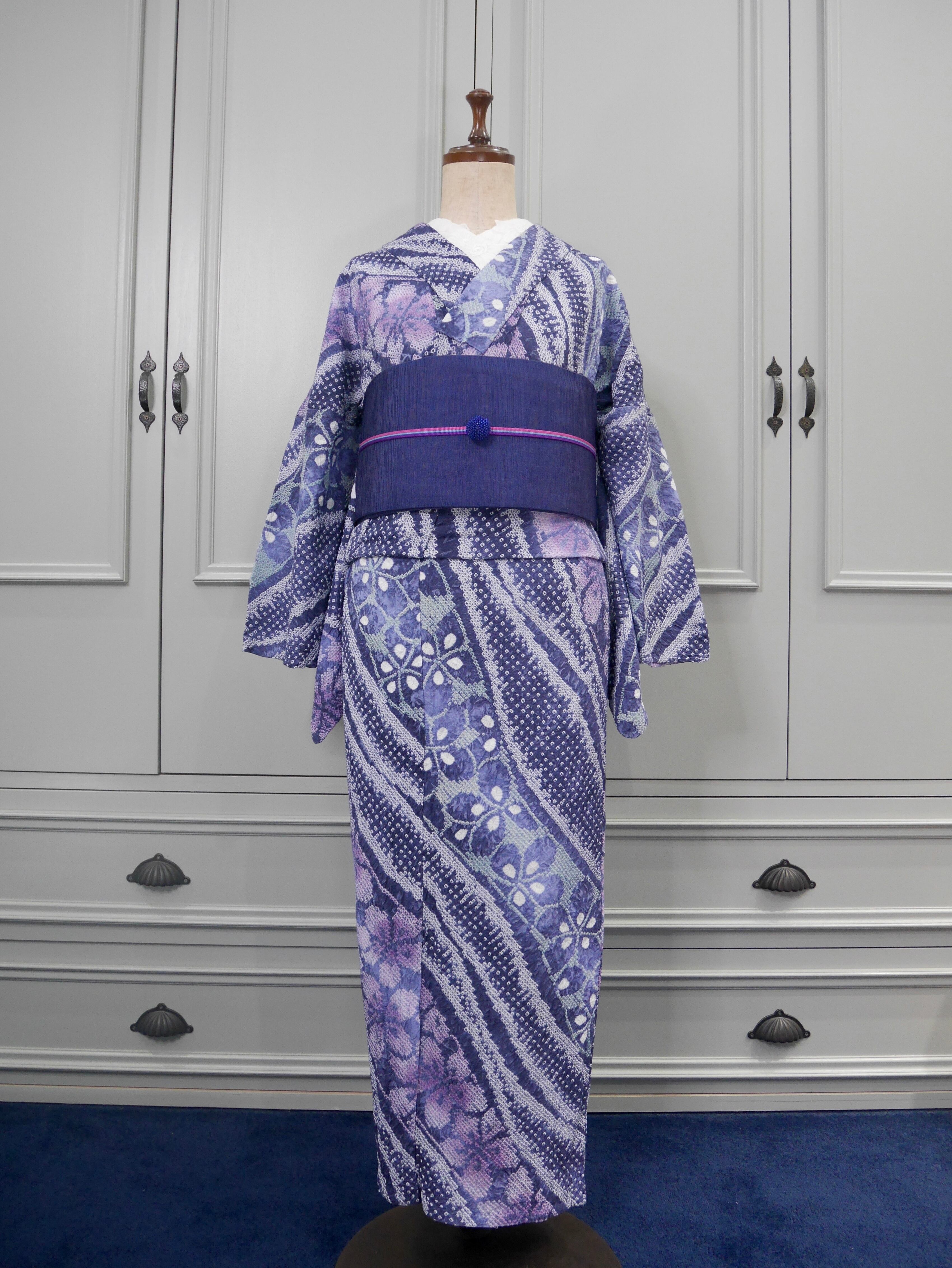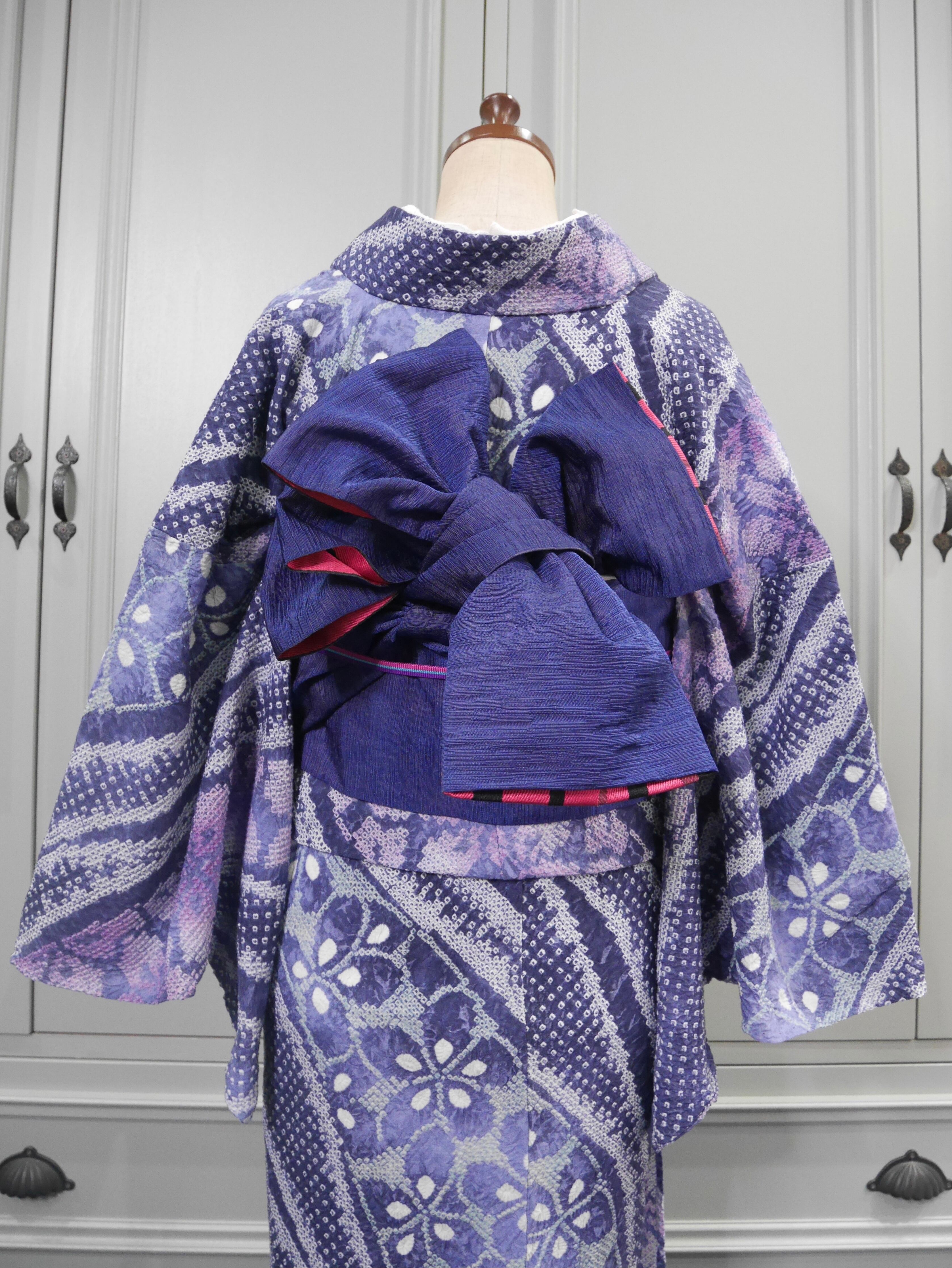有松鳴海絞り浴衣*ノーブルパープル×ライド·ザ·ウィンド·フラワー 0401