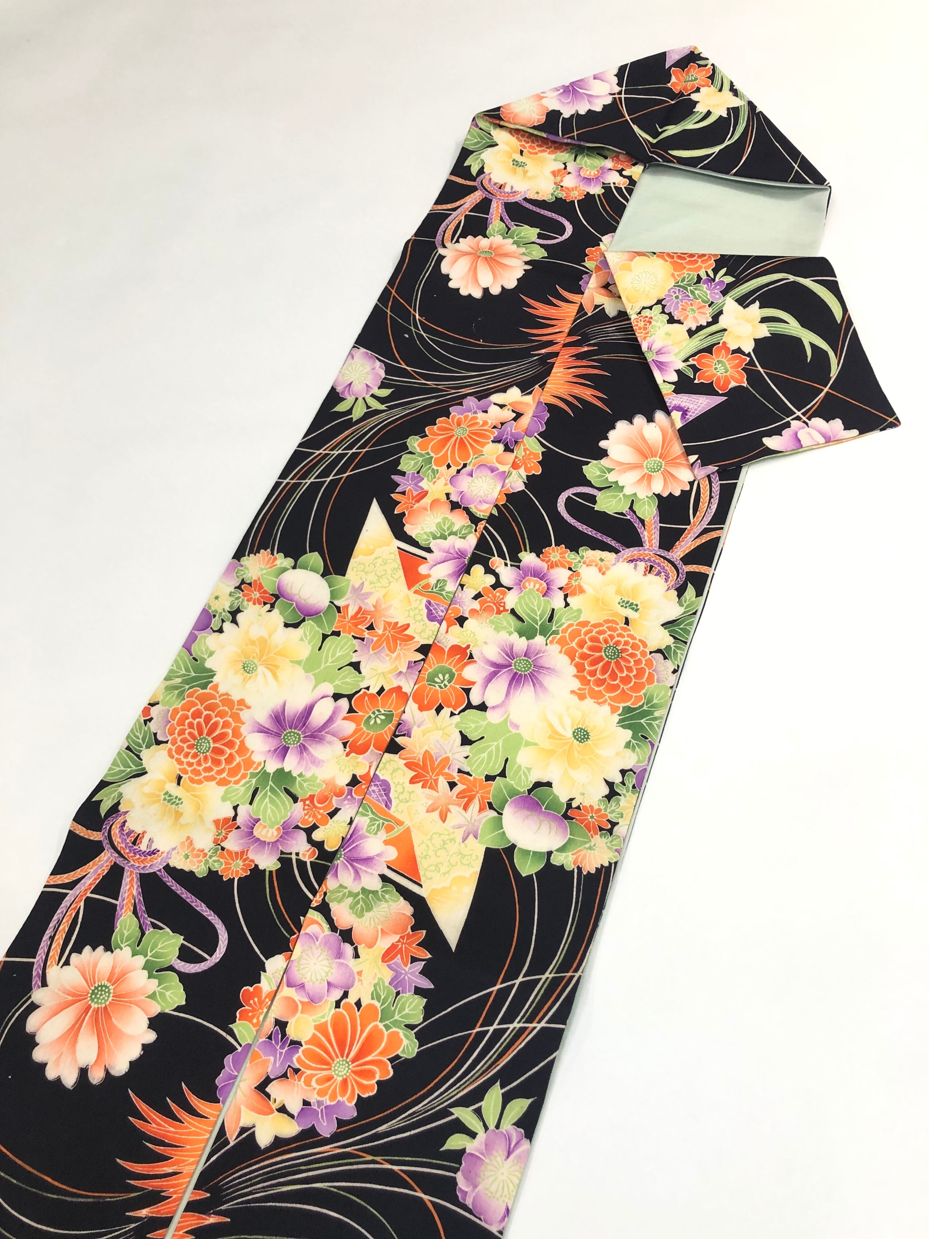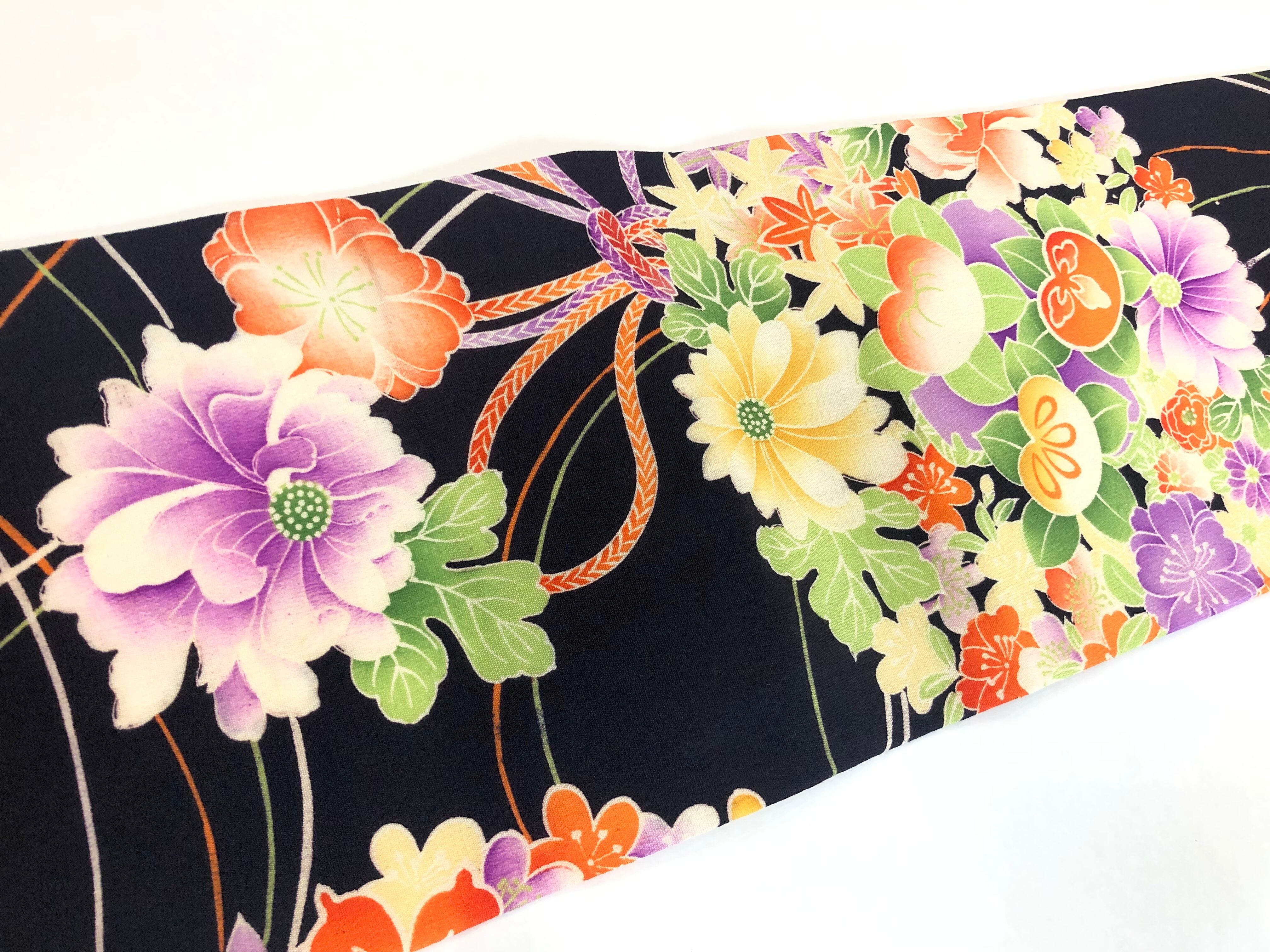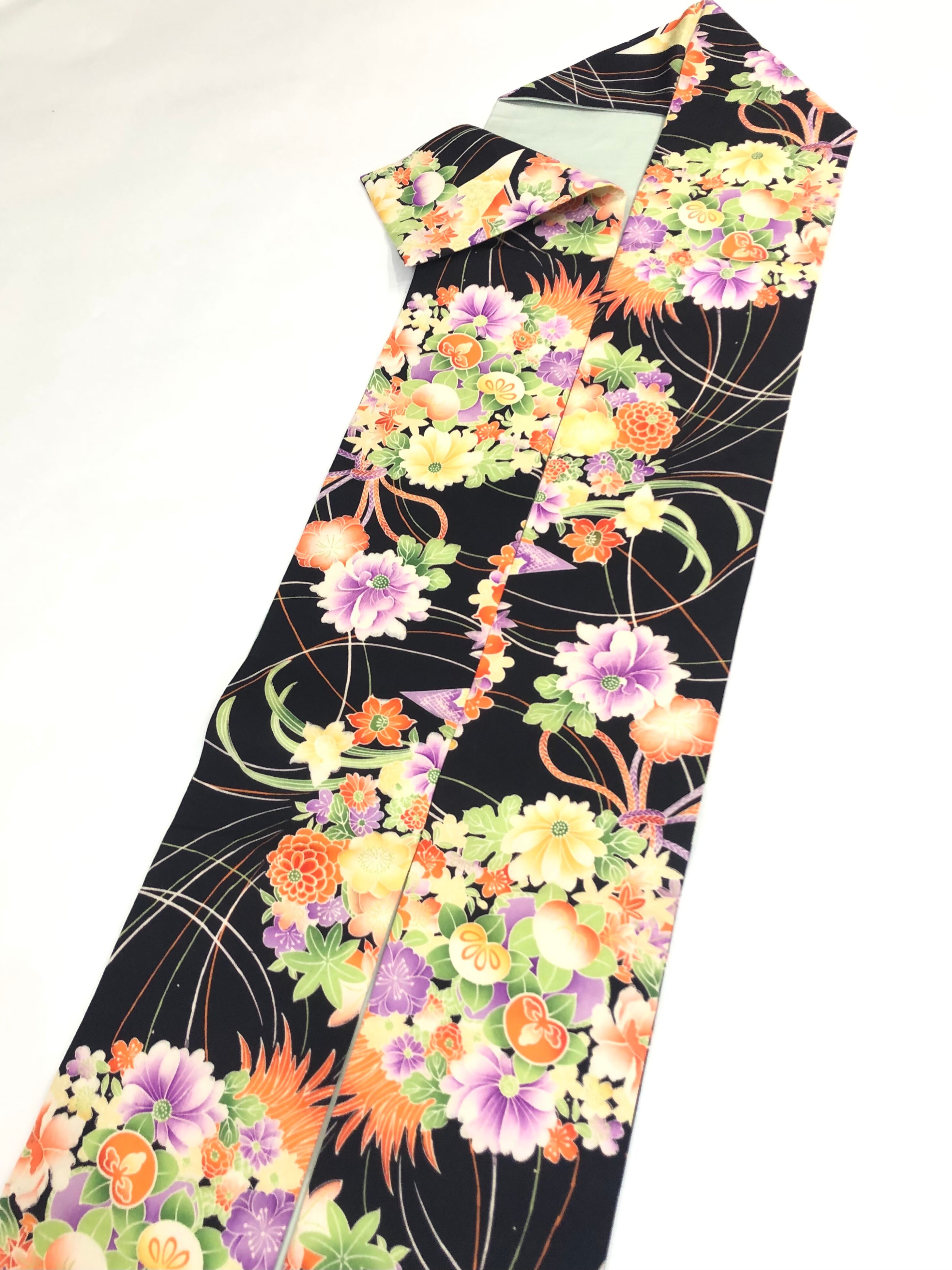 ブラック×ベジタブルカラー花薬玉*仕立て替え名古屋帯 0421