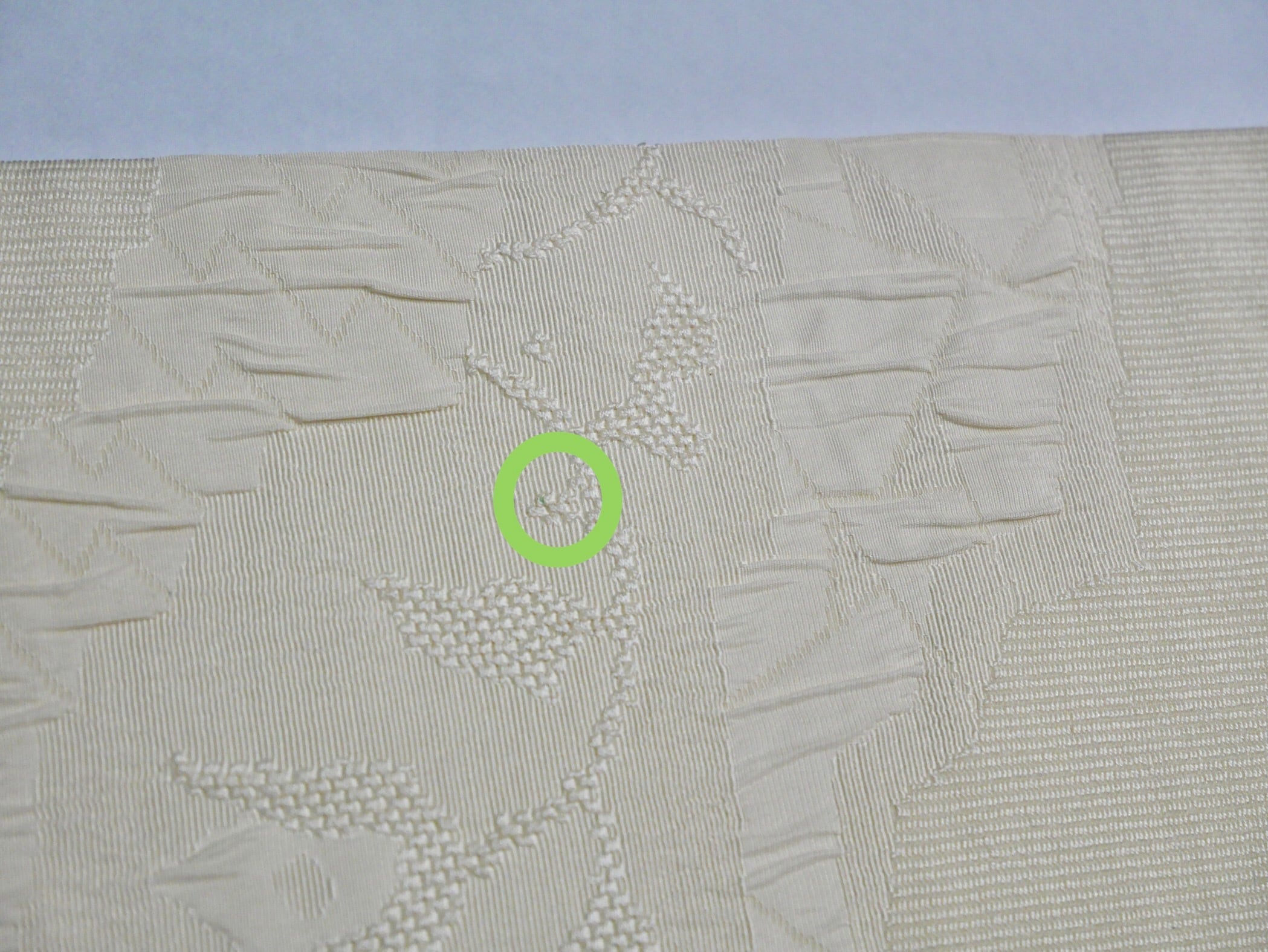 お太鼓、前柄、手先にうっすらシミあり。