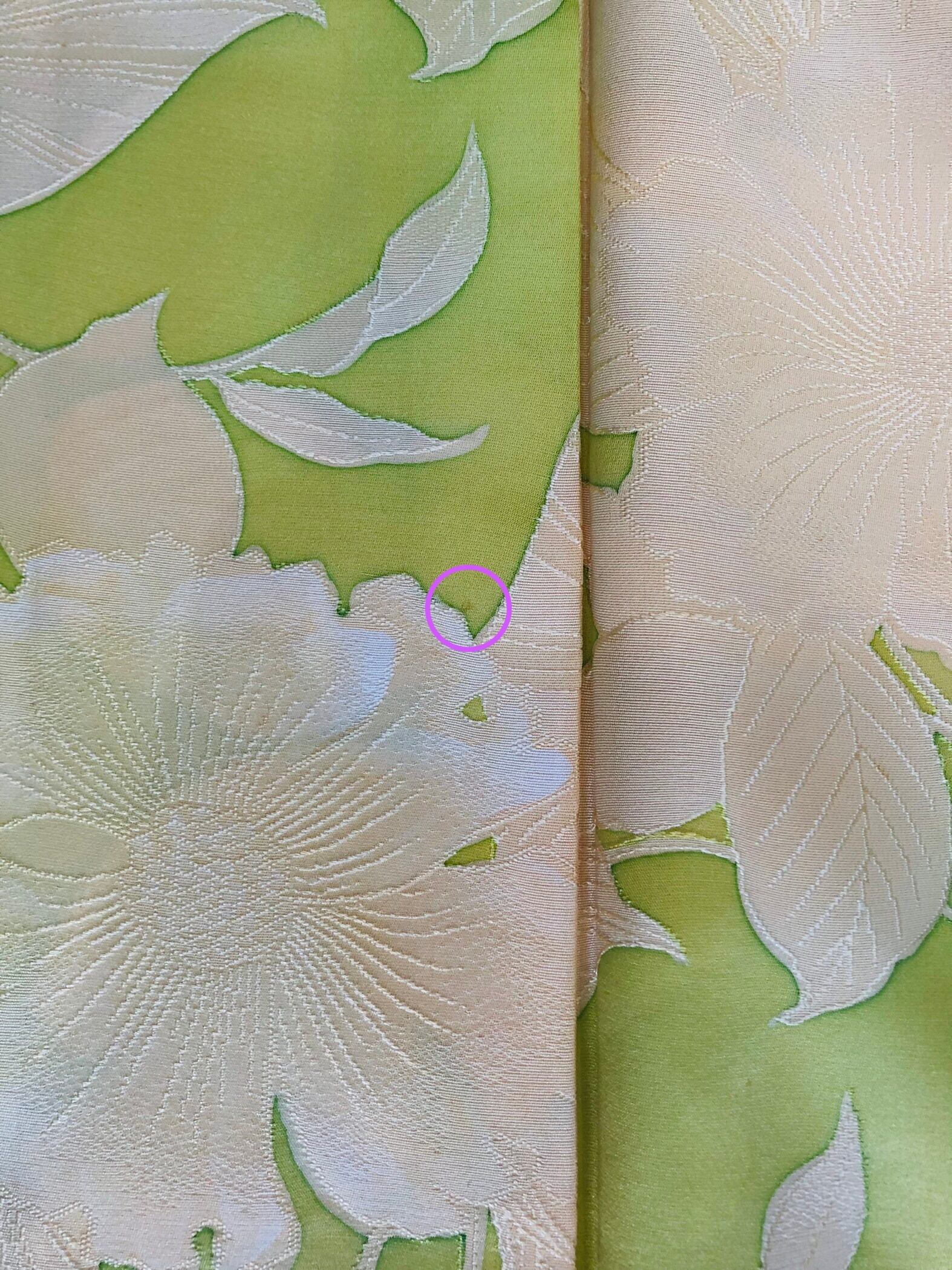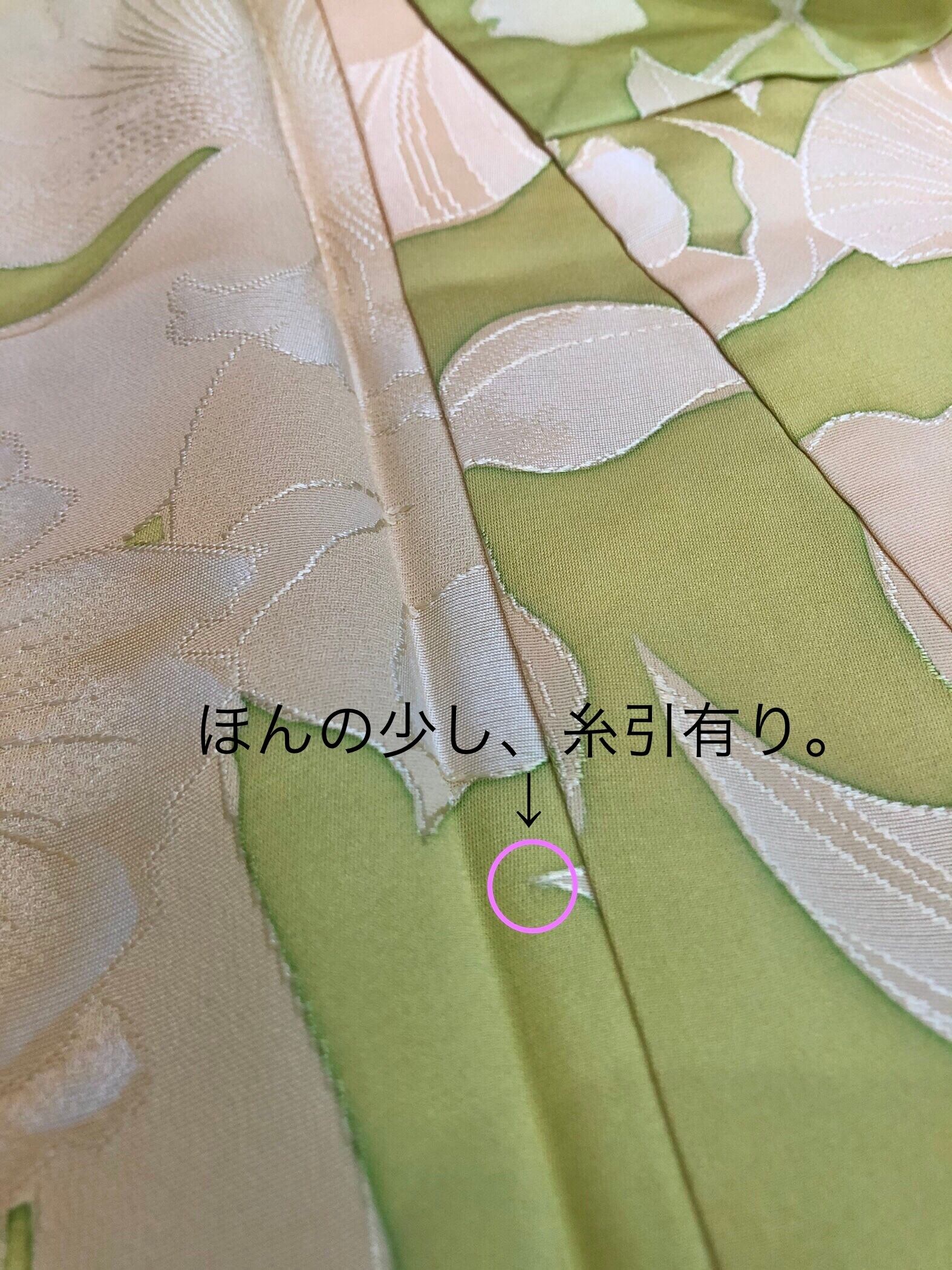 上前衽、右前身頃に目立ちにくいですが、小さな糸引き有り。