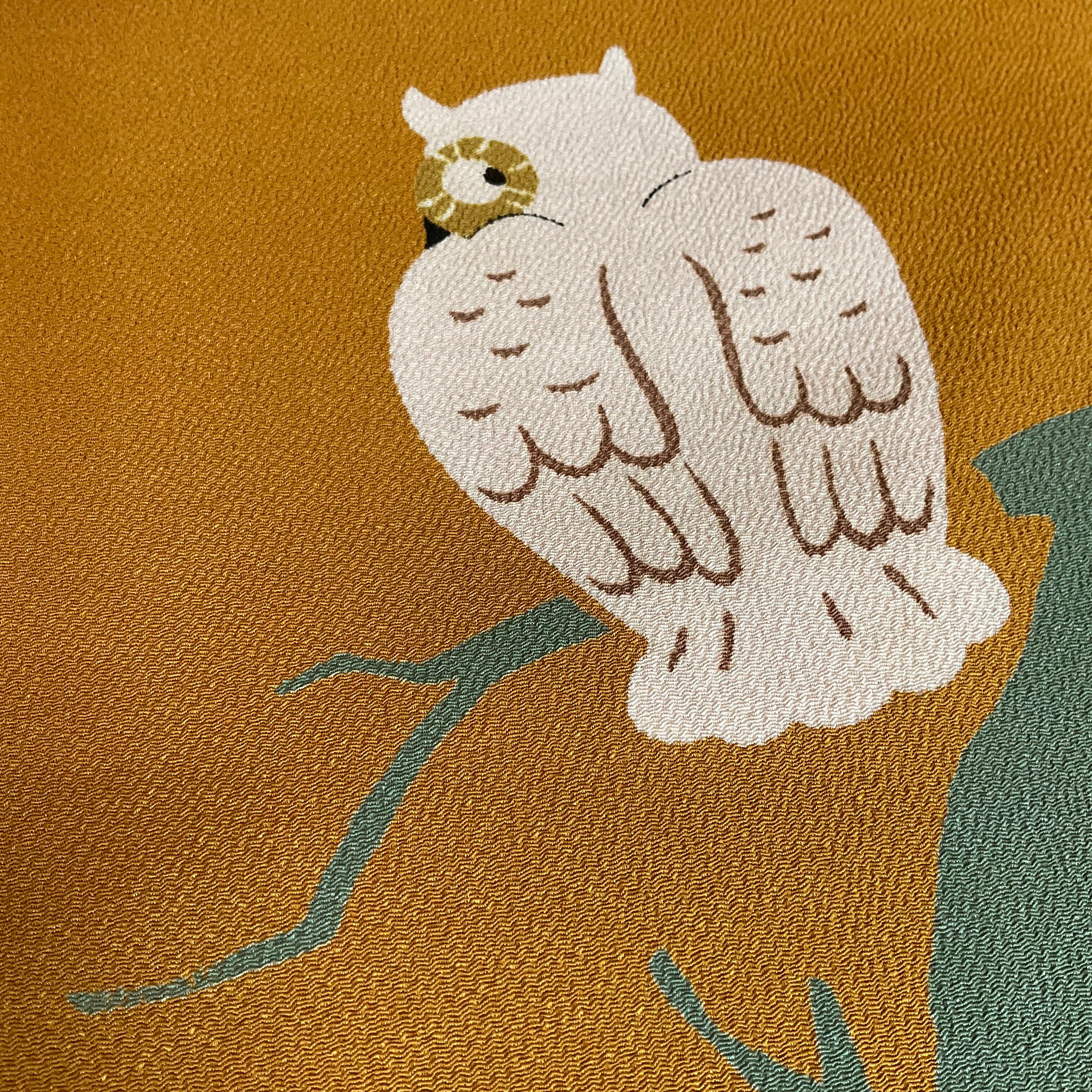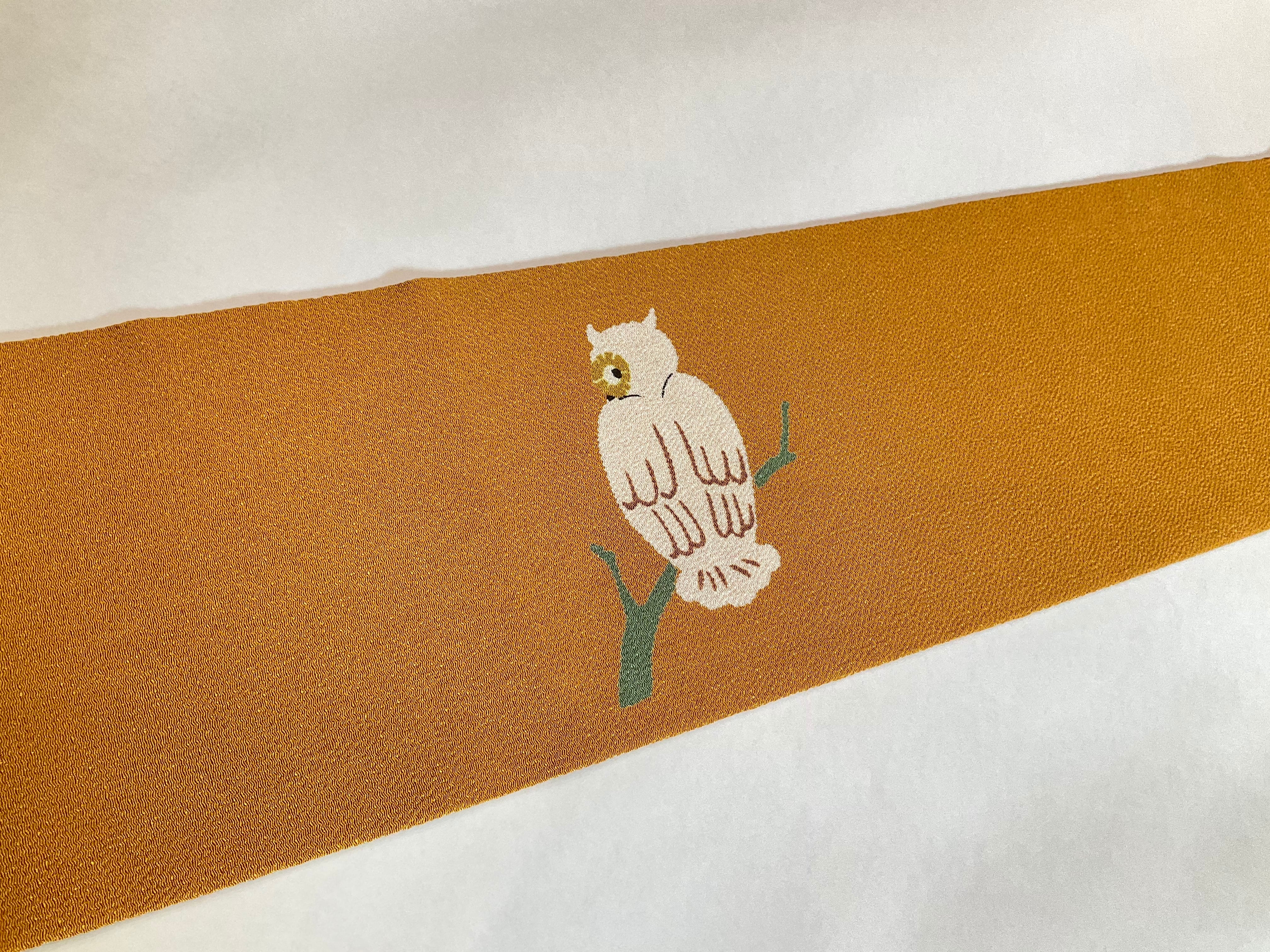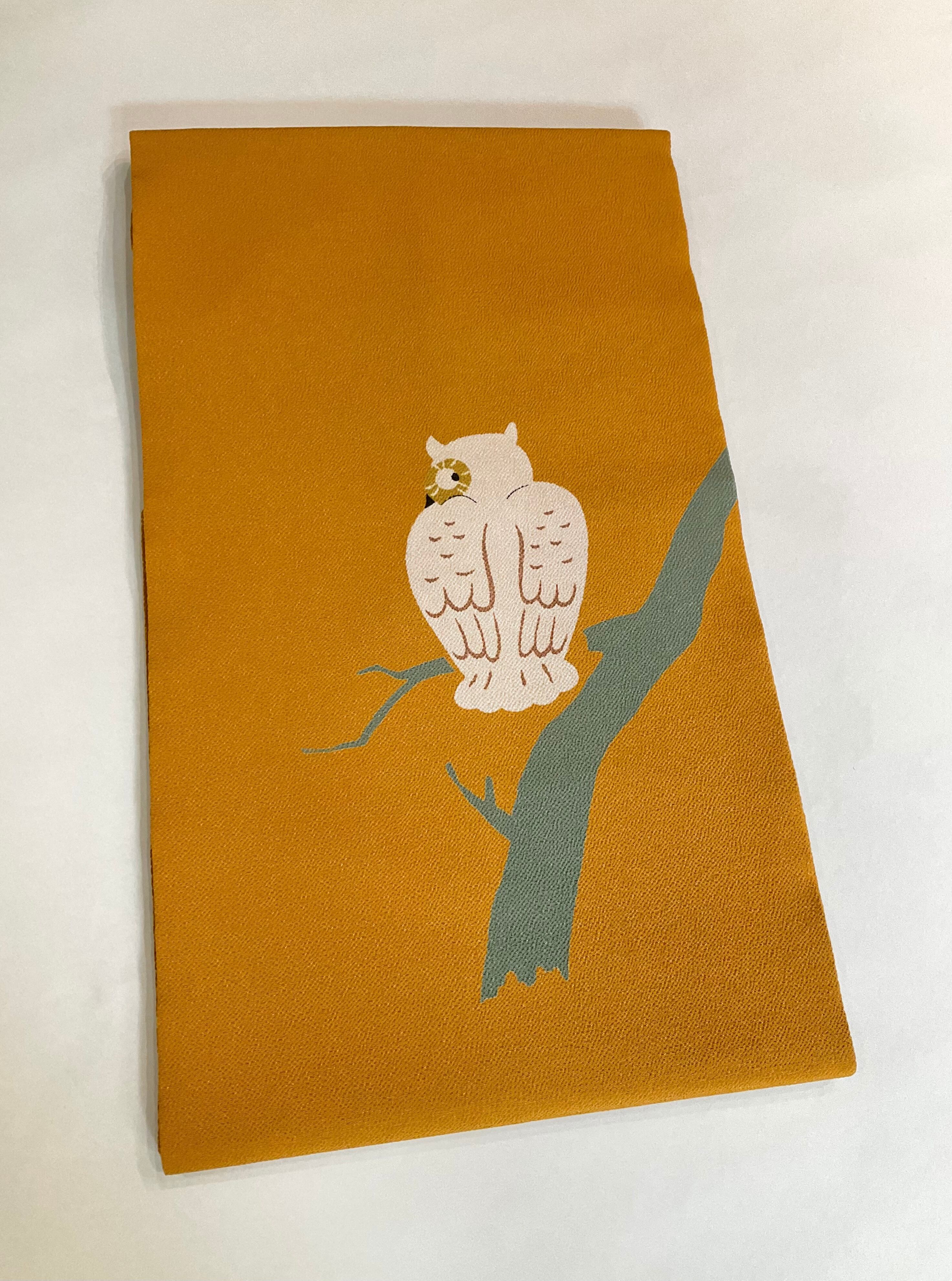 ブラウン系の地色に、フクロウの柄がデザインされた名古屋帯です!