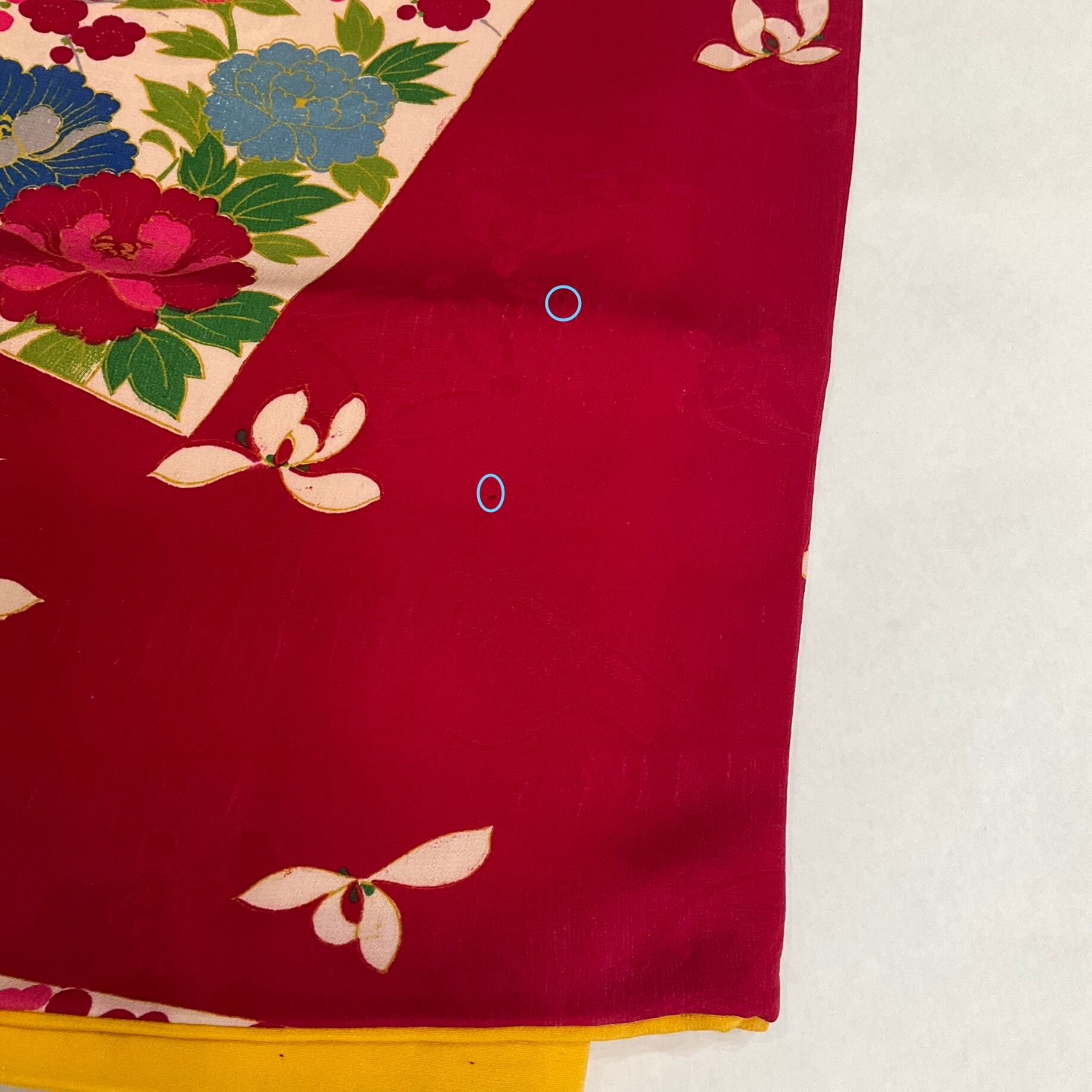 紅の八塩 色紙に花模様*アンティーク小紋キモノ 0474