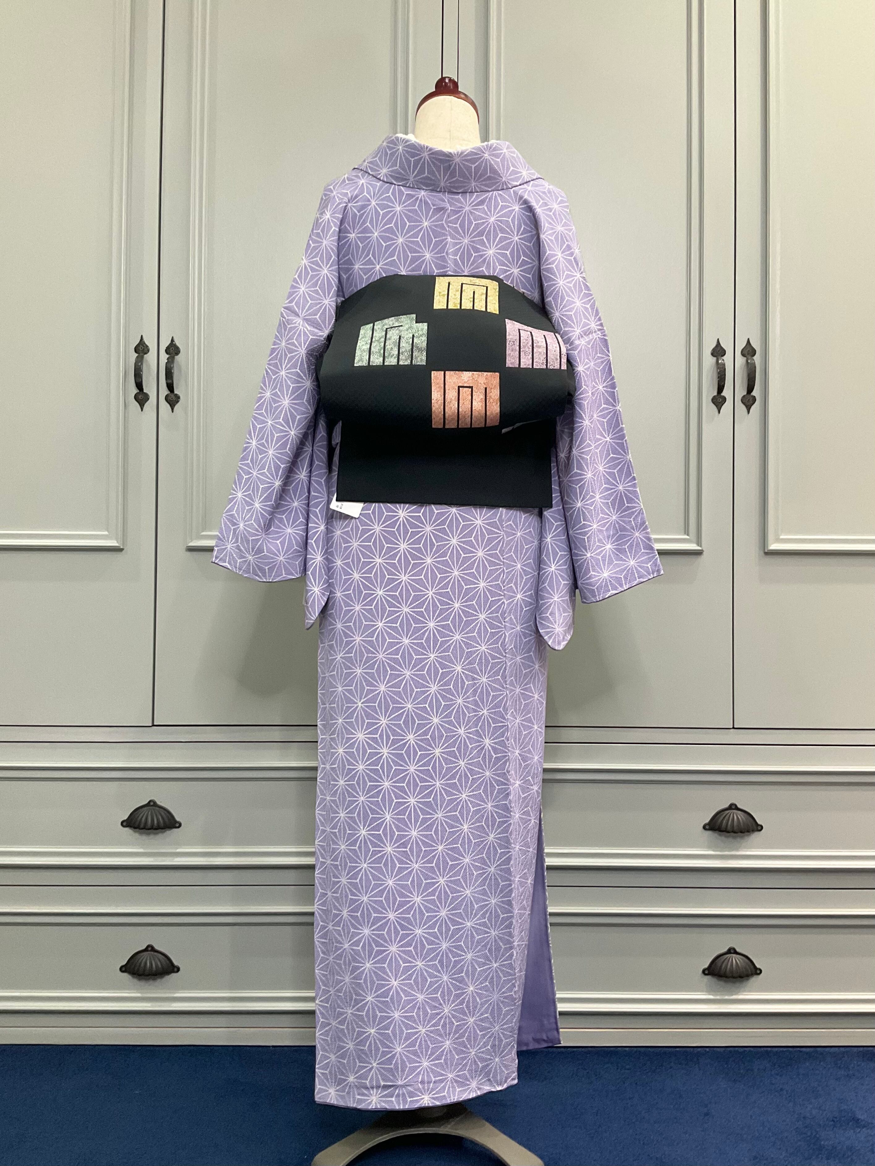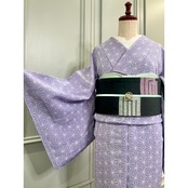 淡いパープルの地色に、麻の葉模様がデザインされた小紋着物です♪