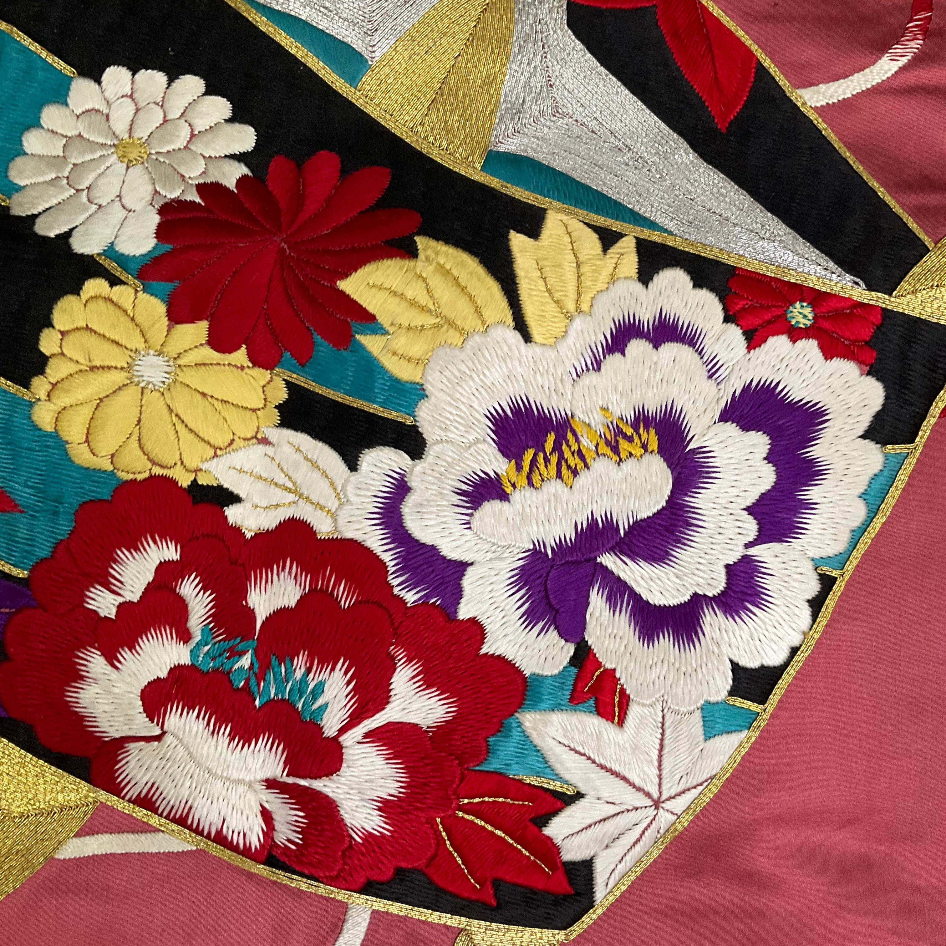 また糸巻と胴回りを彩る大きな花模様には、牡丹や菊、紅葉が色鮮やかに刺繍されており、とてもゴージャスです✨
