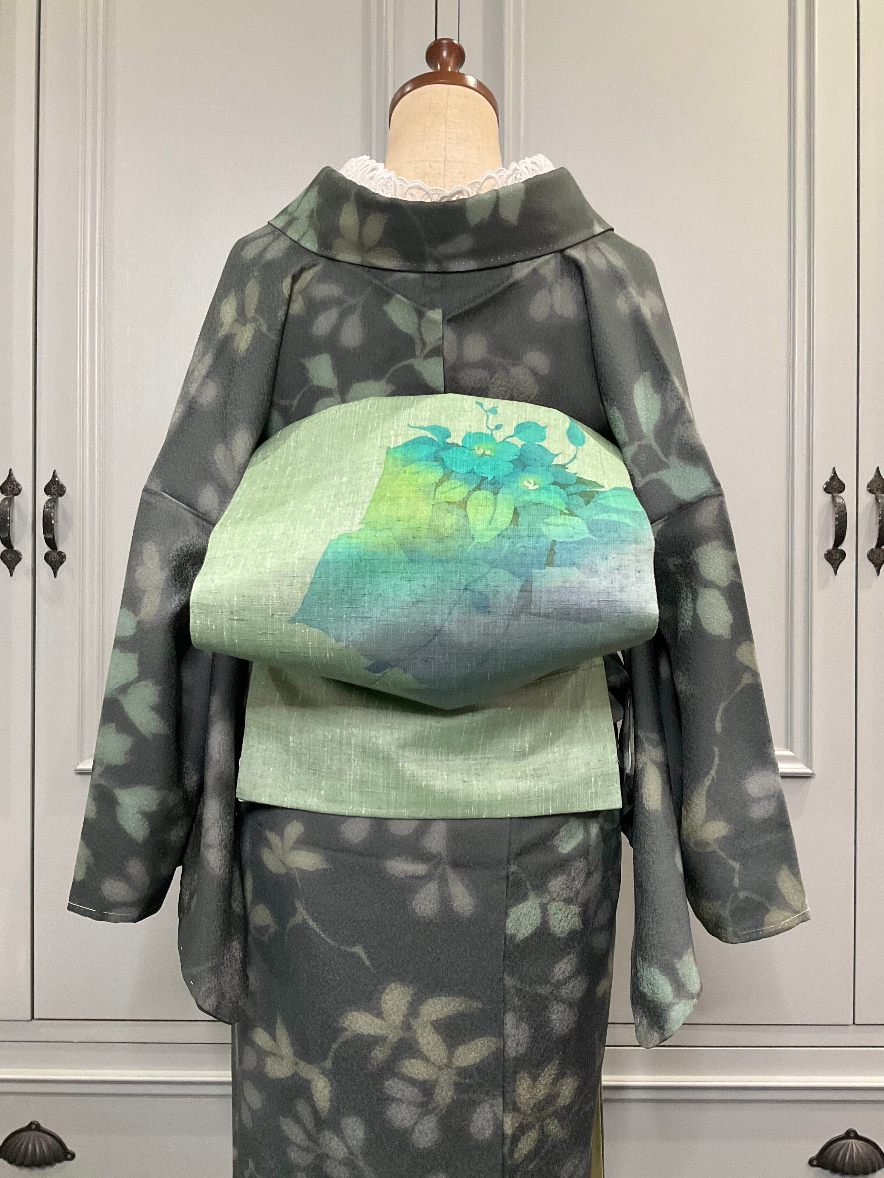 地色のグリーンは、グリーンにグレーを混ぜたような、なんとも言えない深みのある色合いが素敵です✨