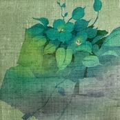 ふんわりグリーン 水彩画タッチ・グラデーションフラワー *リサイクル名古屋帯 0494