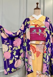 パンジーパープル 菊の舞*アンティーク長羽織 0497