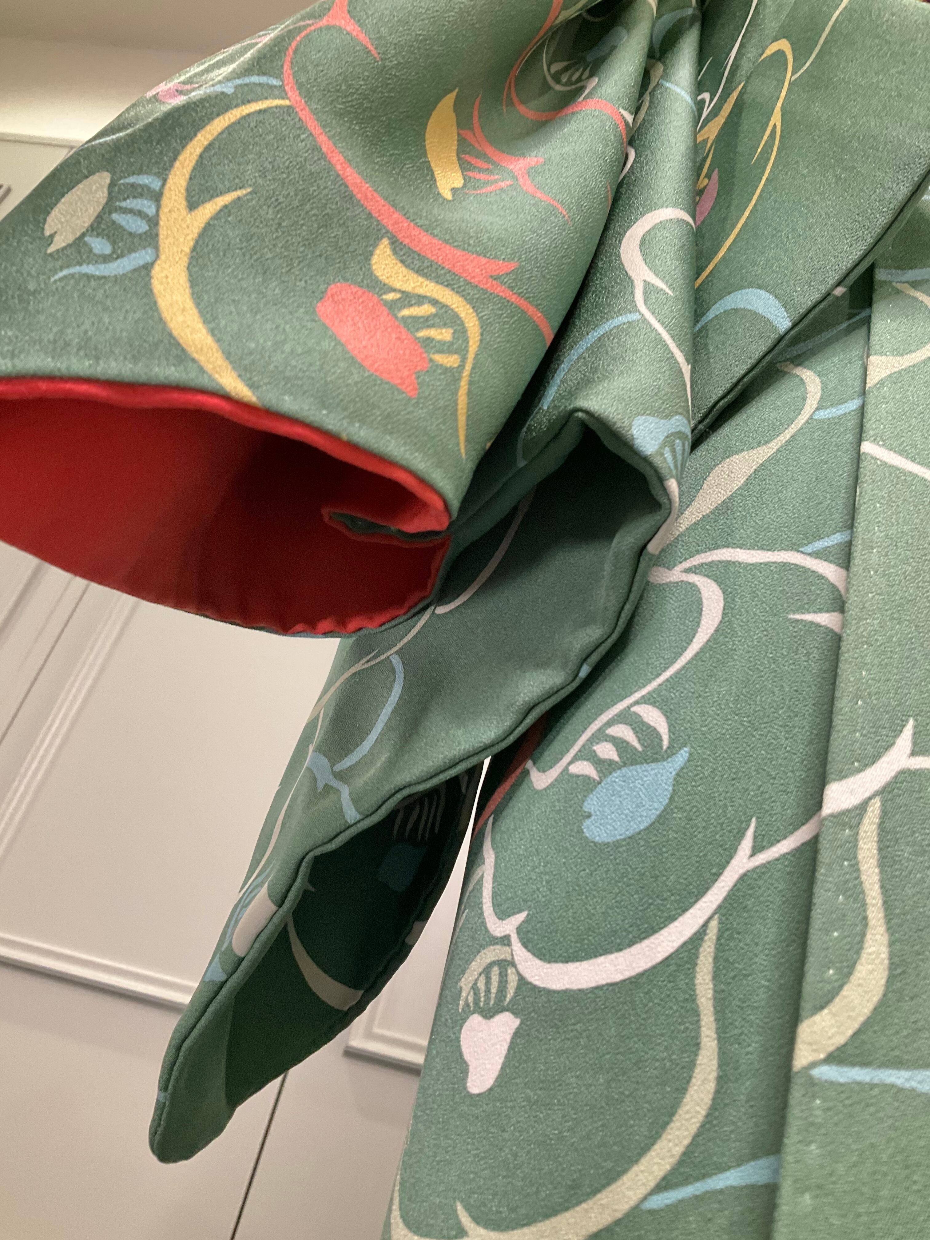 tall*セージグリーン カメリア·ラインドローイング*リサイクル小紋キモノ 0513