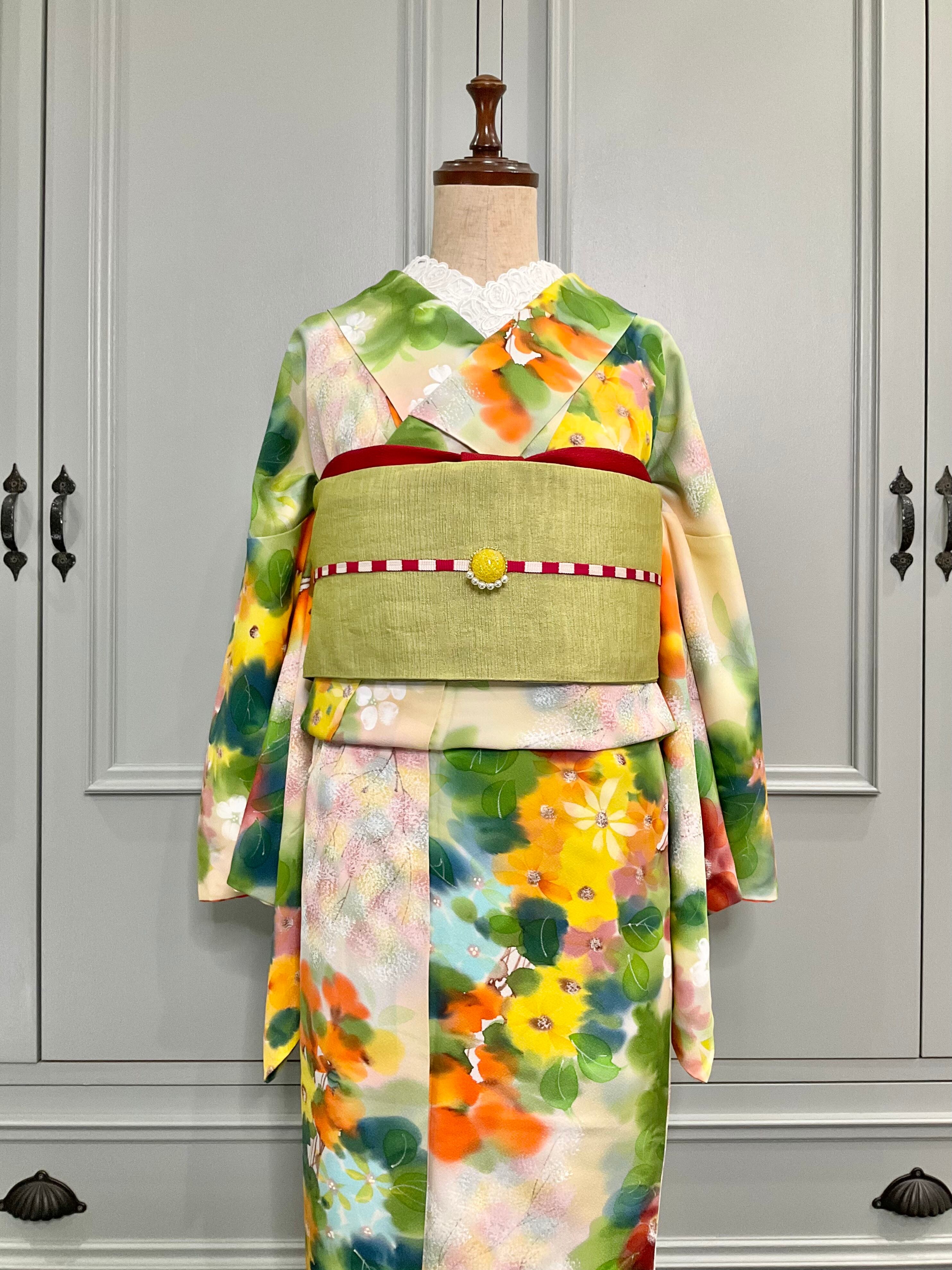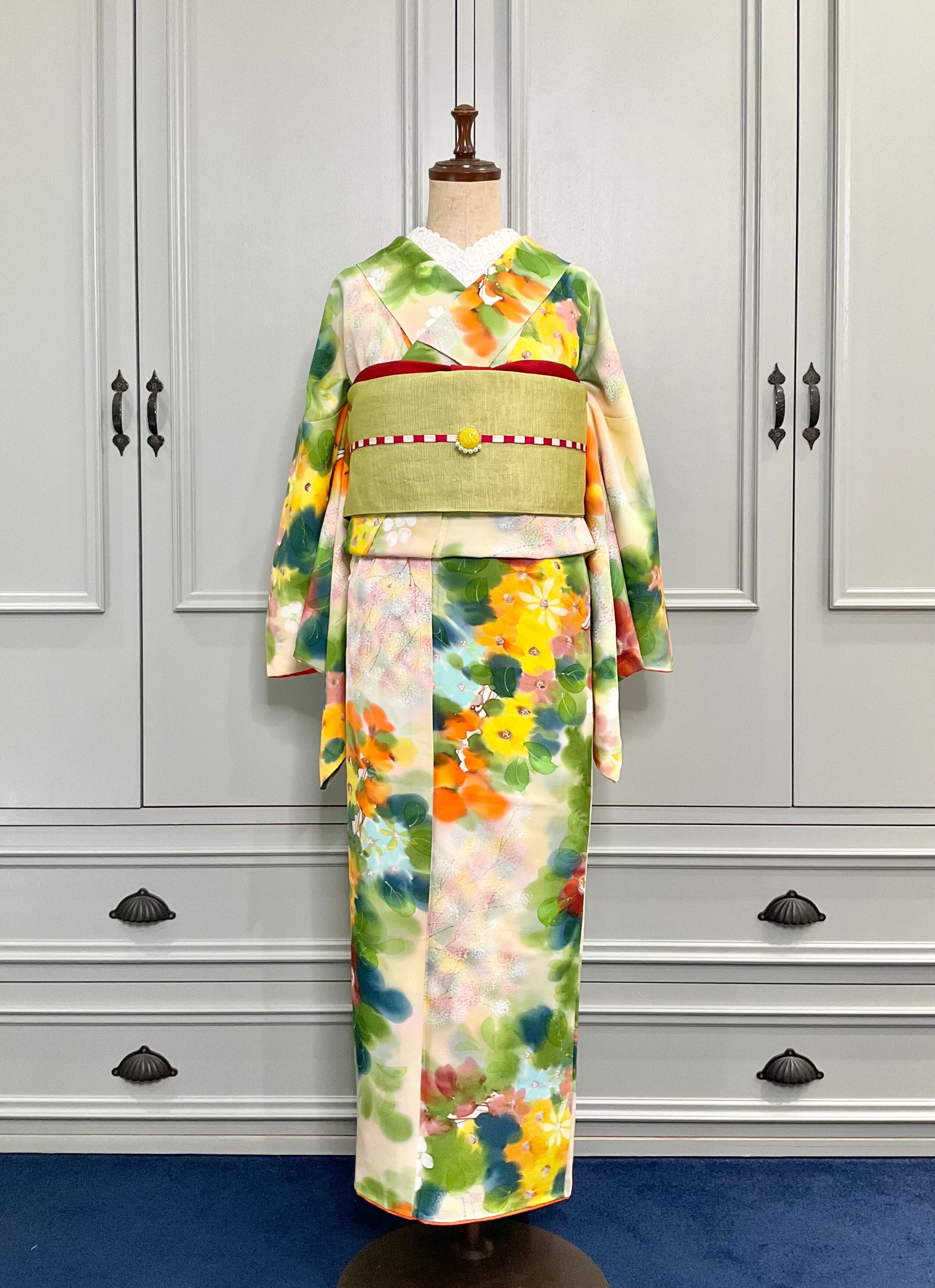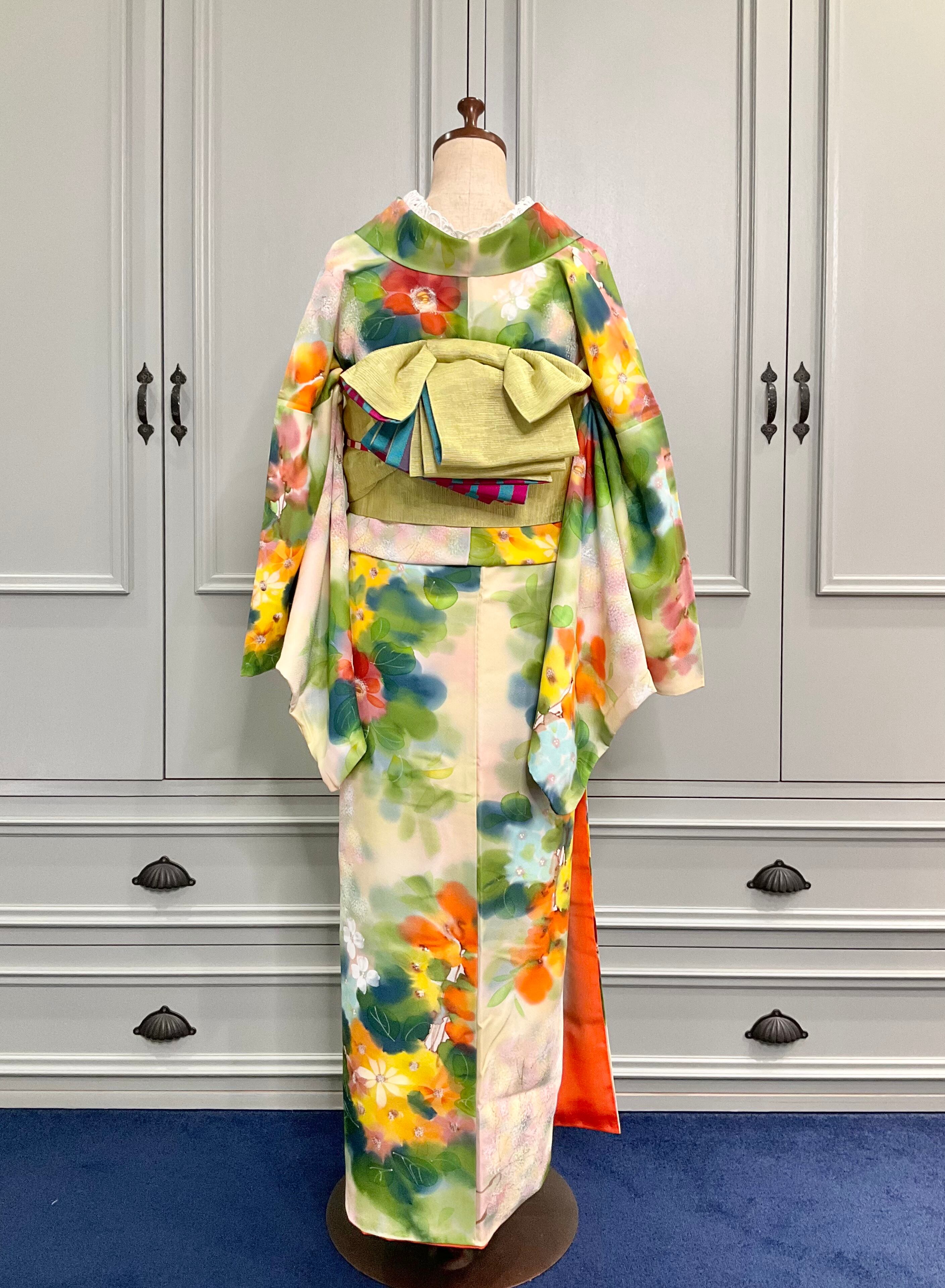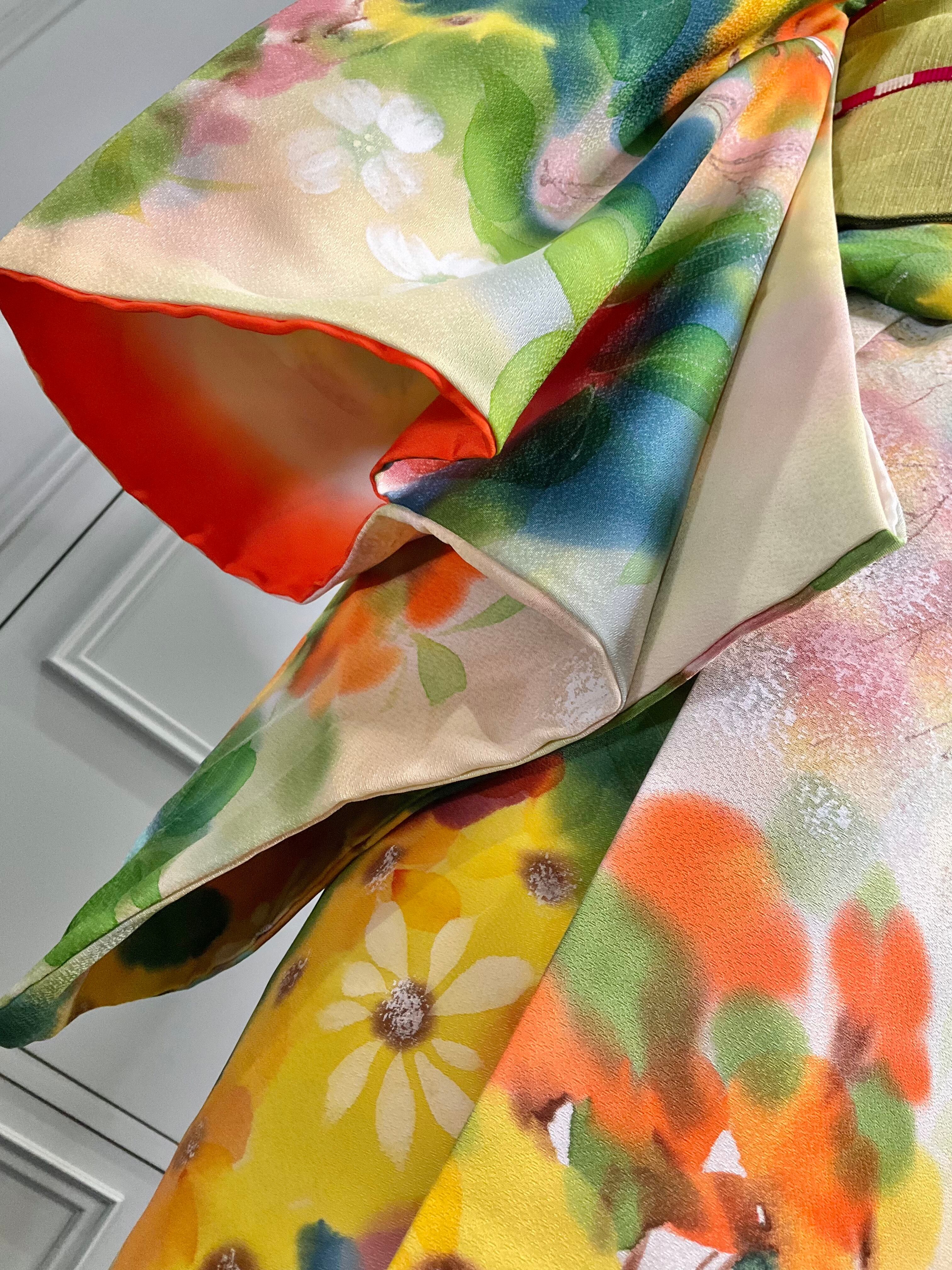 どの角度から見ても、文字通り華やかなこちらのお着物は、絵画のように芸術的ですよね✨