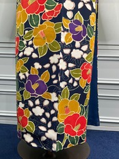 ネイビーの地色に、色とりどりの椿柄がデザインされた小紋着物です♪