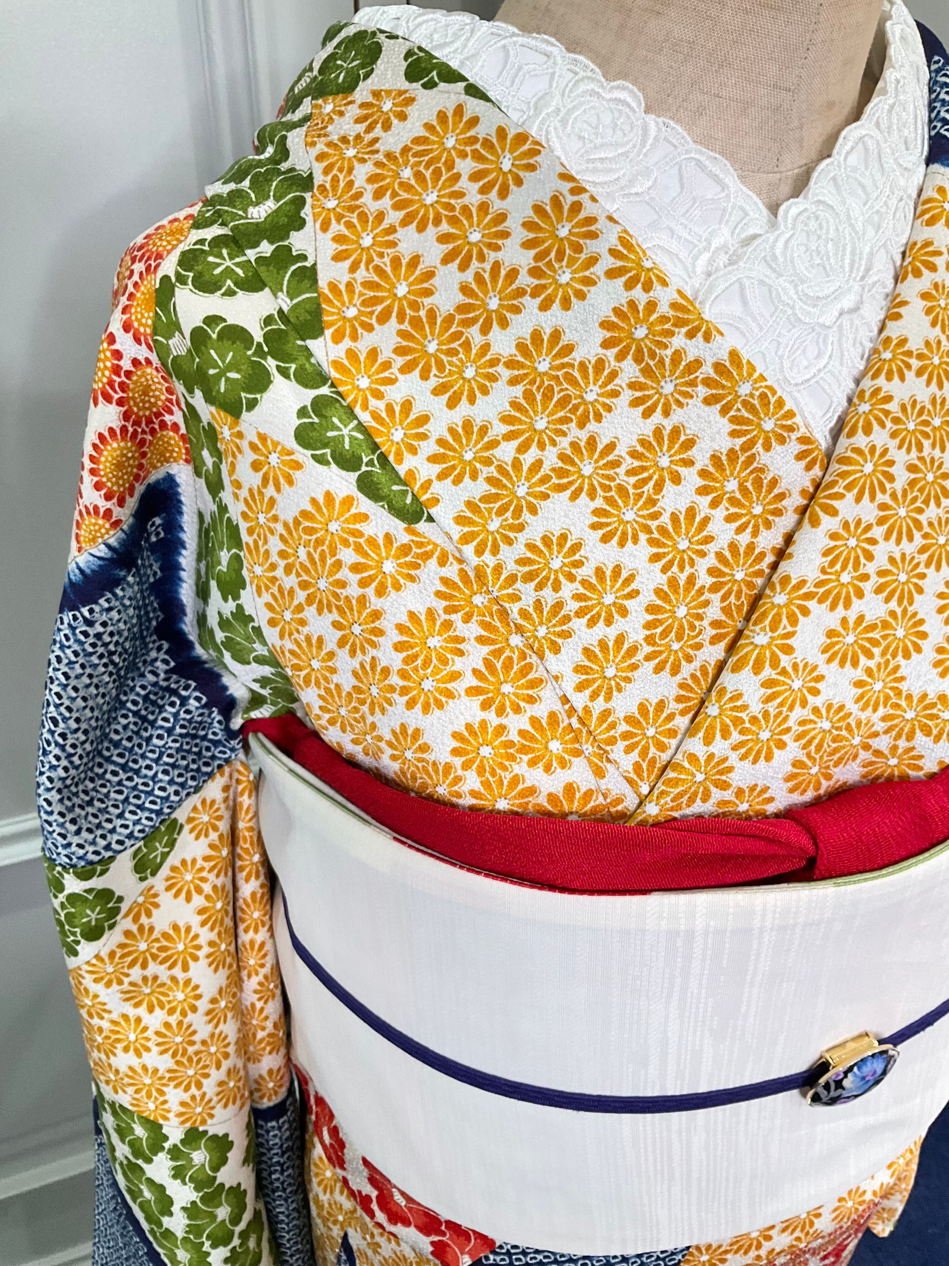 見ているだけでも、とても明るい気持ちになるこちらのお着物。