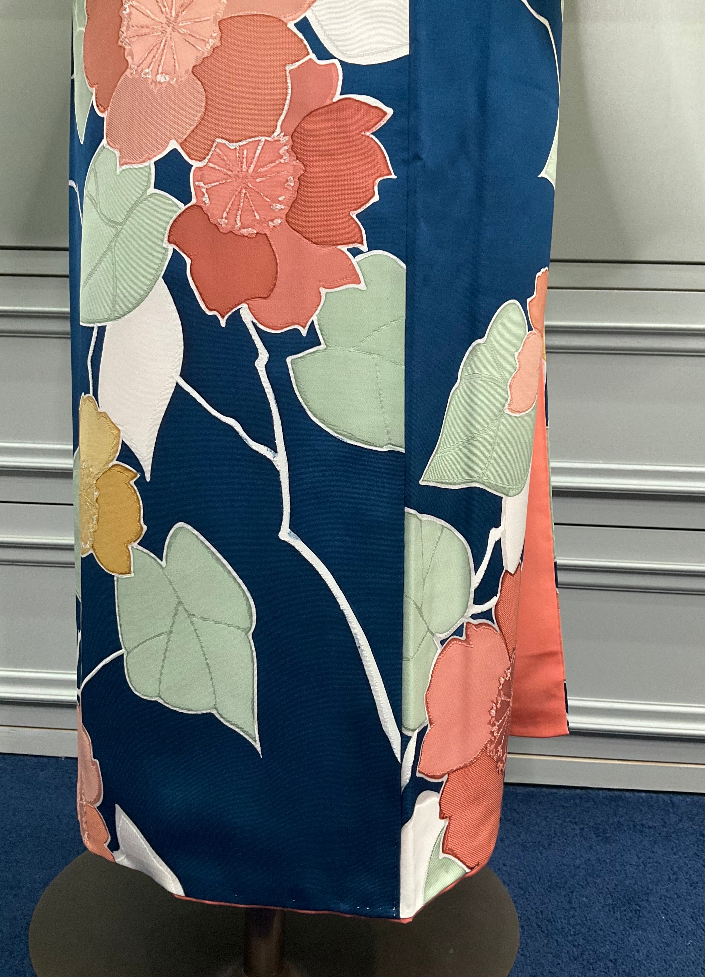 インディゴブルーの地色に、花模様がデザインされた小紋着物です♪