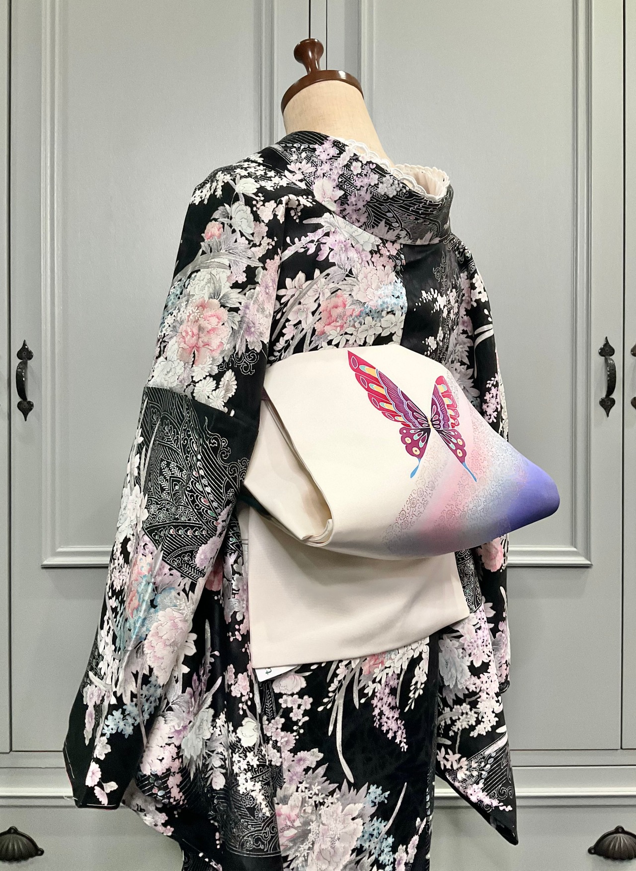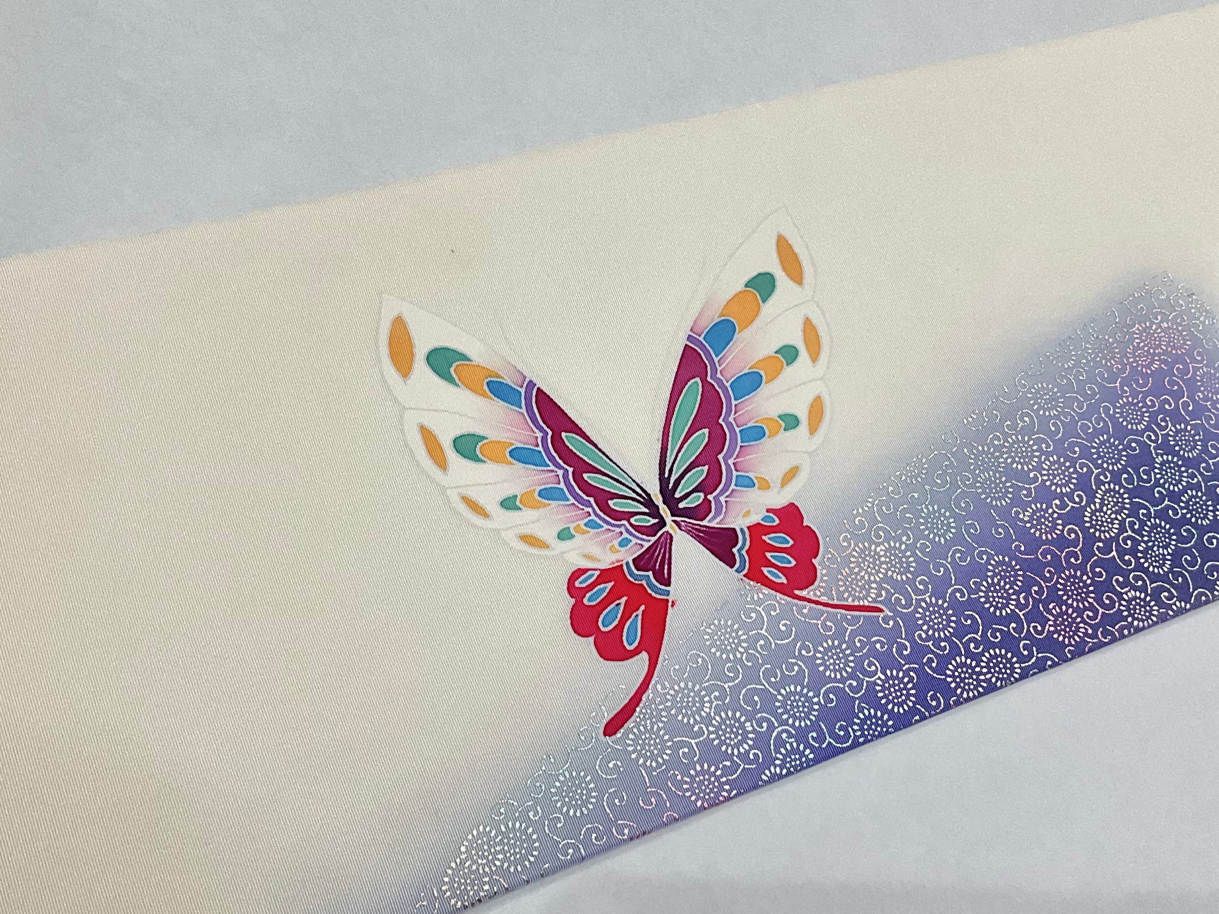 明るい色使いの蝶々はオフホワイトの地色にとても映えます✨