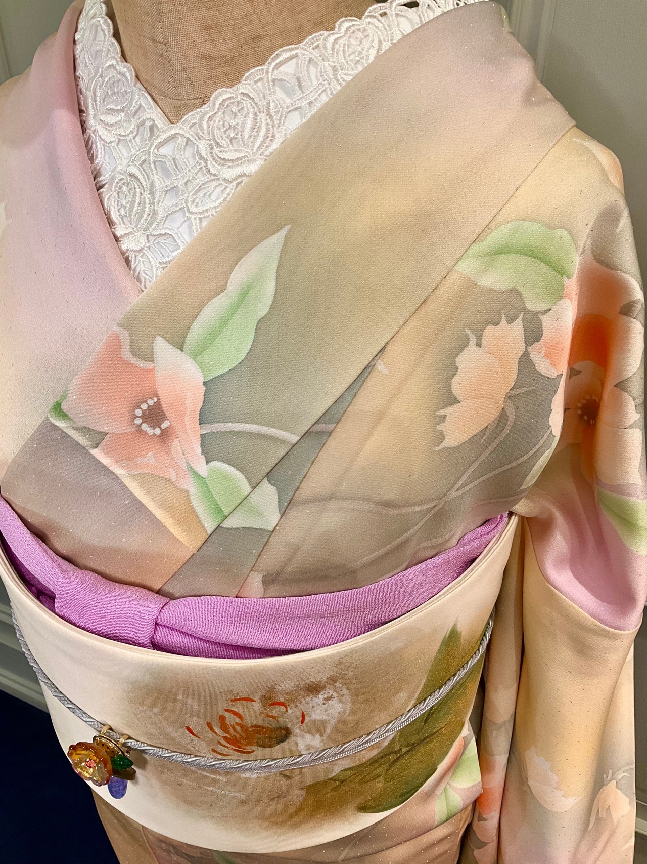こちらのお着物のお色味、とてもやわらかで優しい色合いがとても綺麗ですよね✨