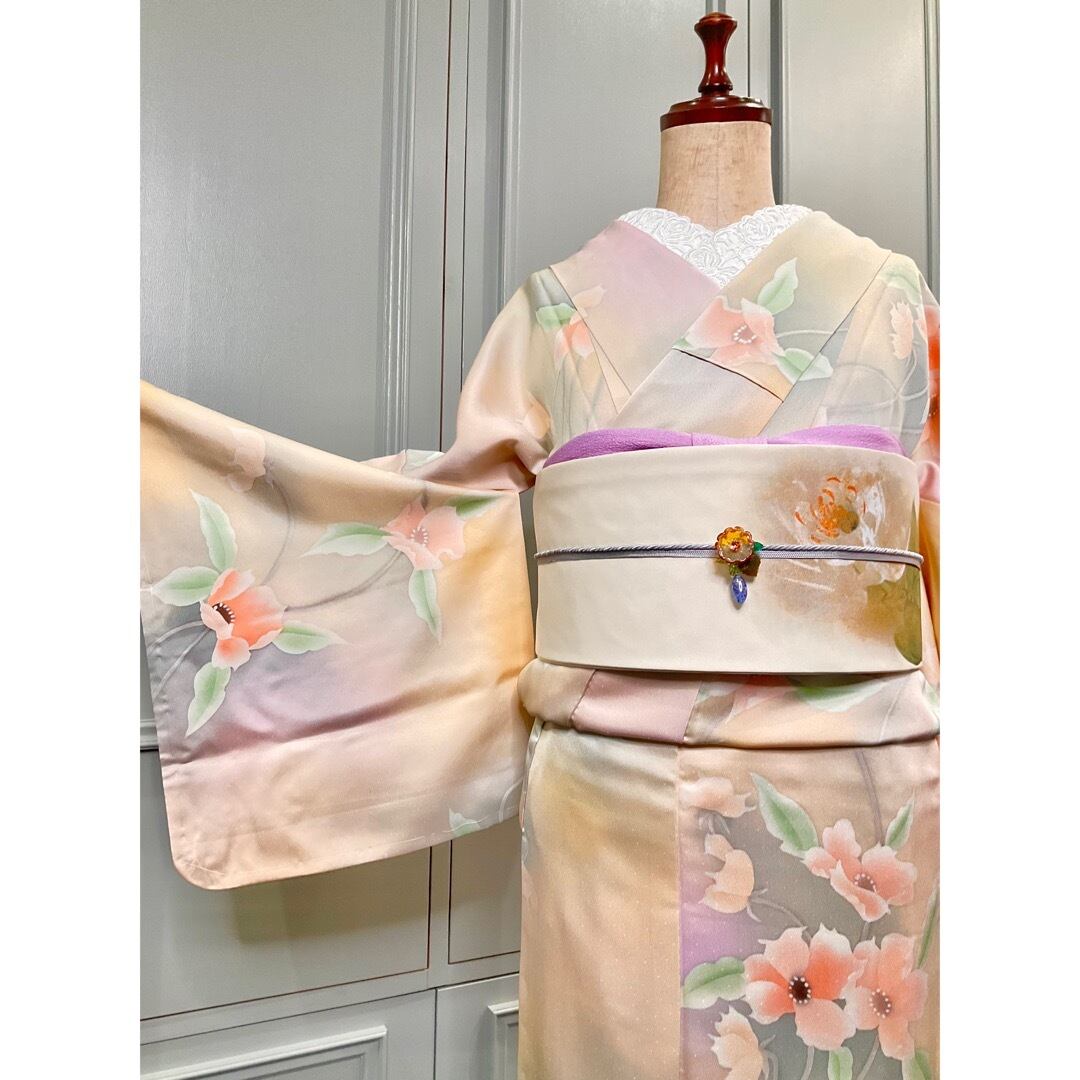 優しい色合いなので、淡いカラーの帯や小物を合わせて、オトナカワイイ♡コーディネートもオススメです^^
