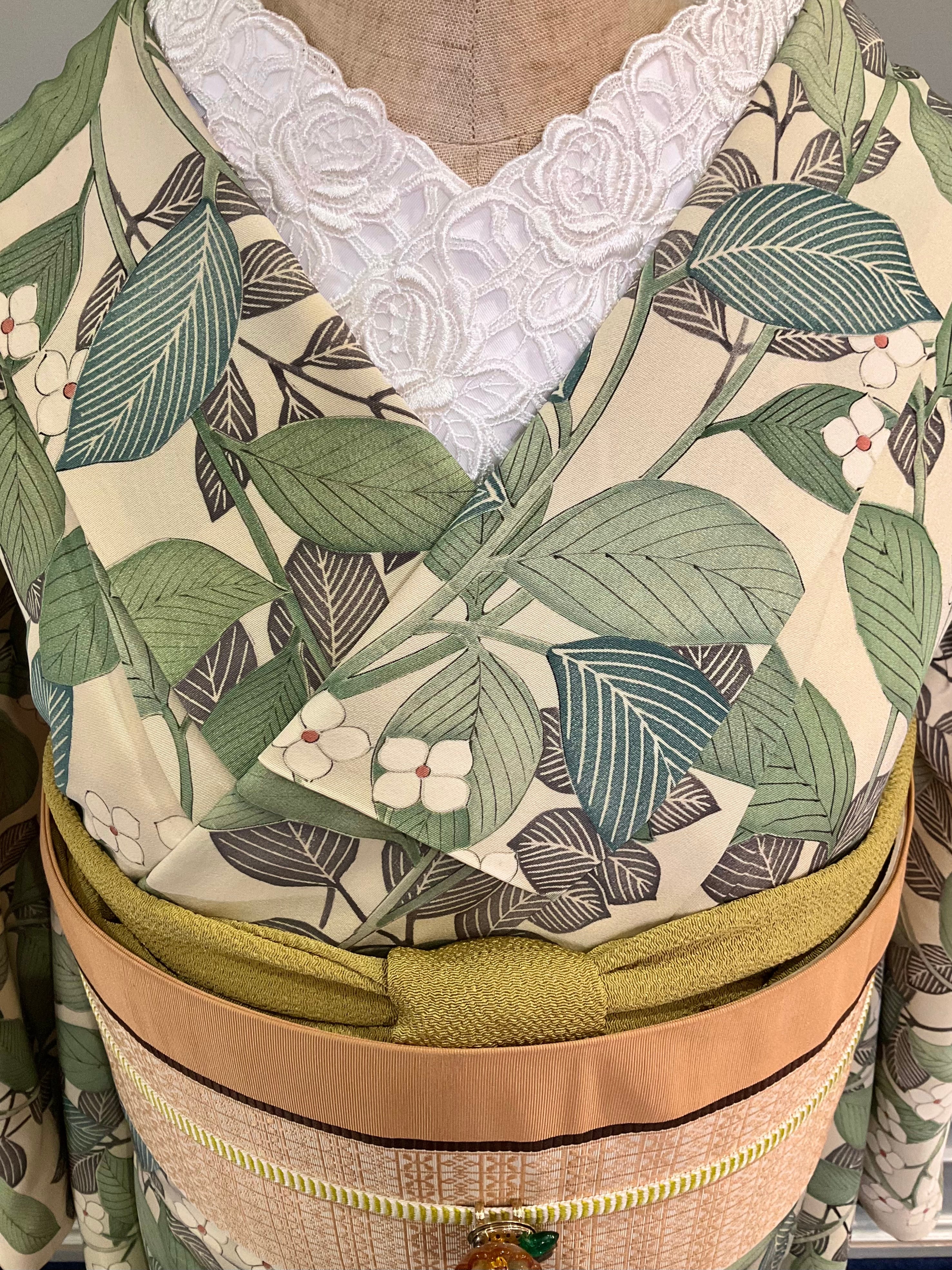 デザインは洋花ですので、ワンピース感覚で帯や小物などを合わせてコーディネートしていただいても素敵だと思いますよ♡^^♡