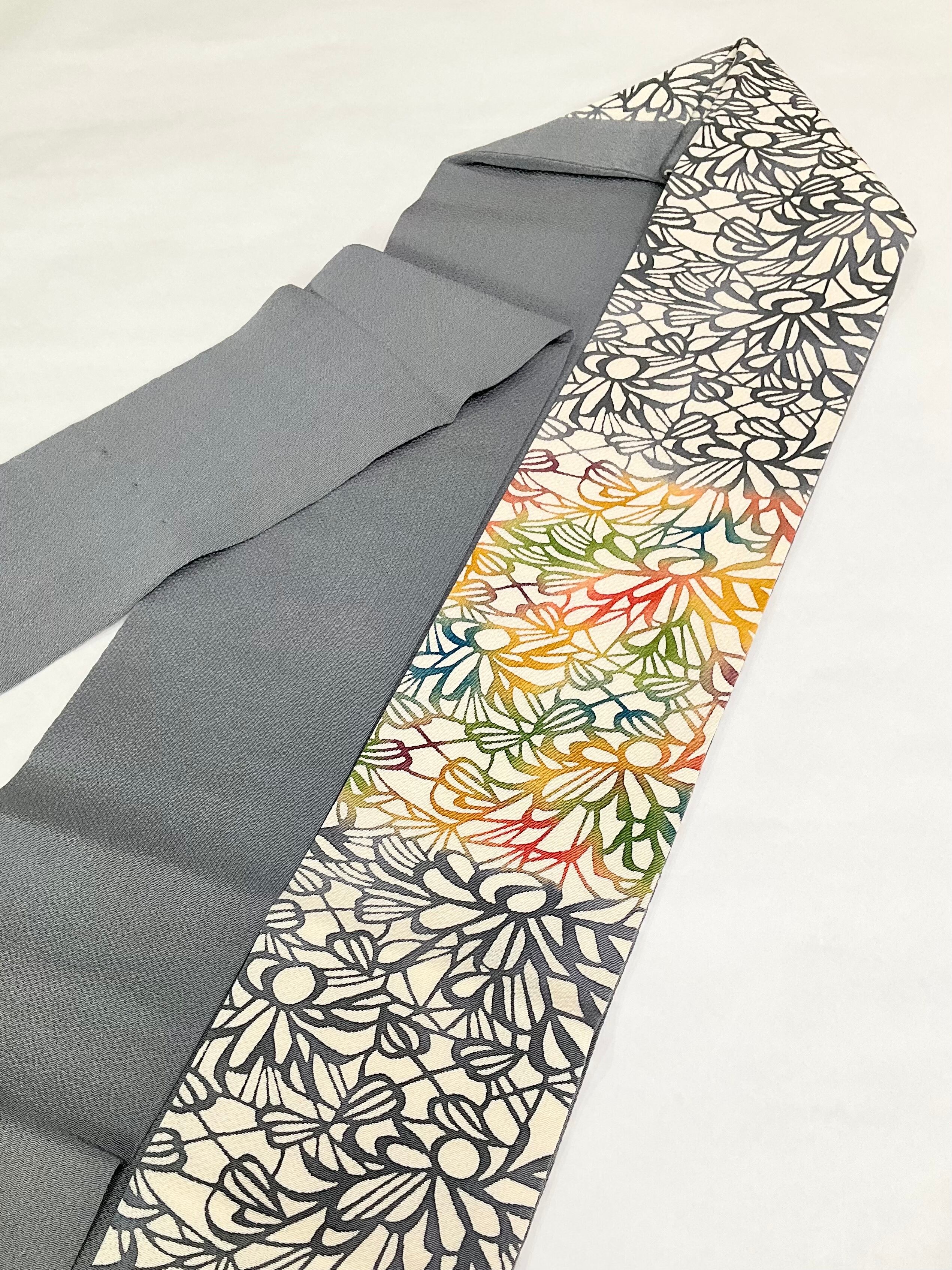 抽象的な花模様に、お太鼓部分と胴回りがレインボーカラーになっていて幻想的ですよね✨