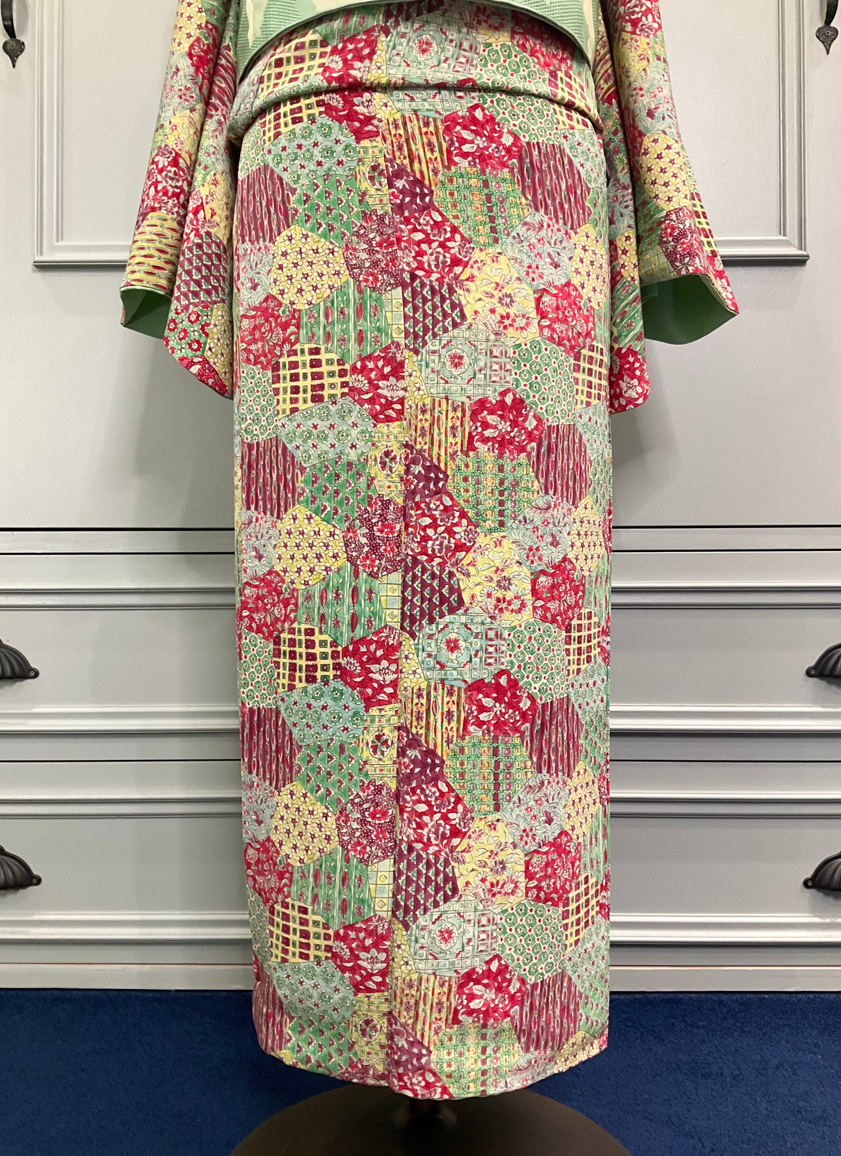 レトロ・パッチワークキルト・テイスト*リサイクル小紋キモノ 0554