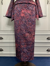 ロング*ネイビー オリエンタル・ファブリックテイスト*リサイクル小紋キモノ 0556