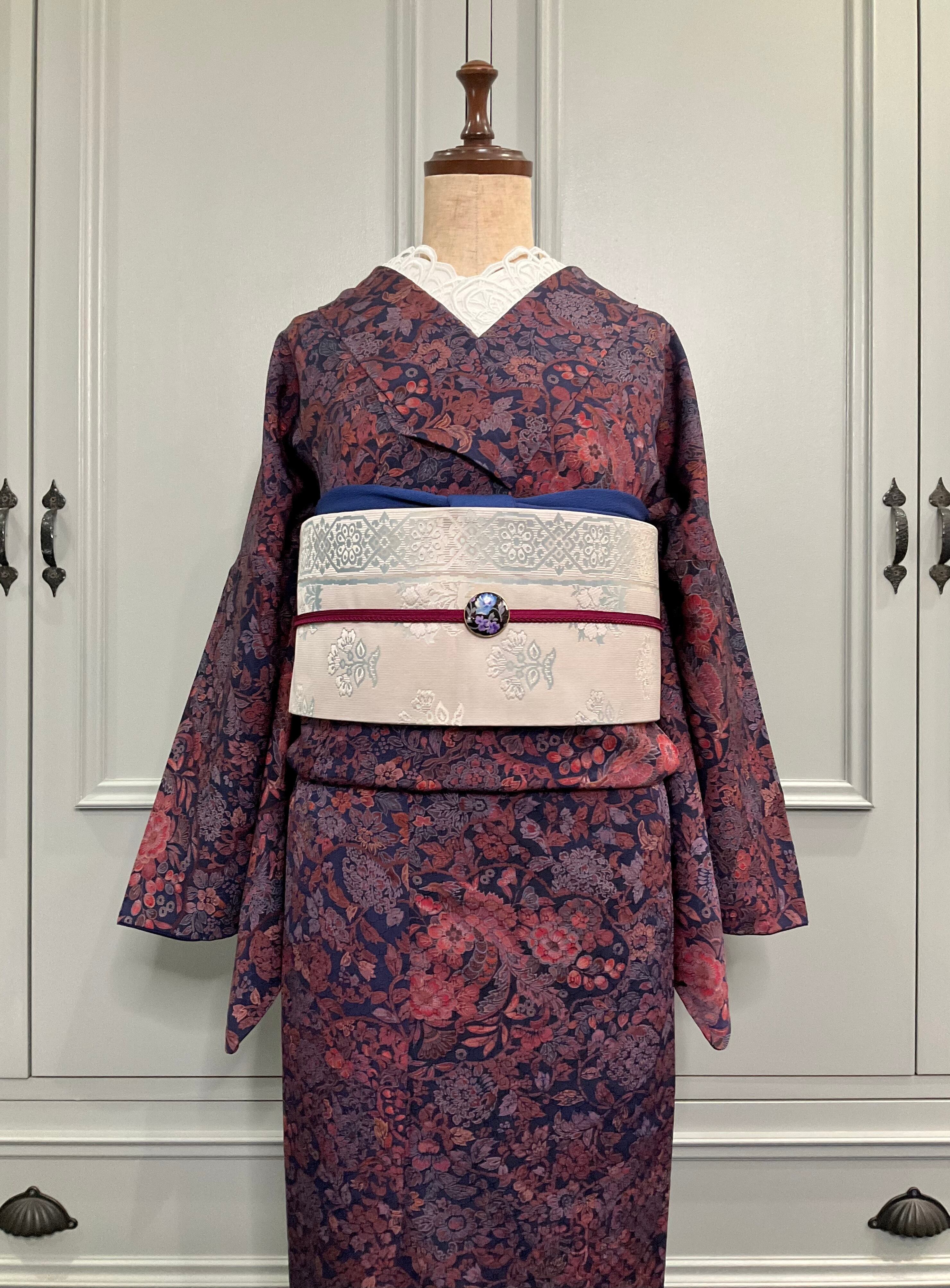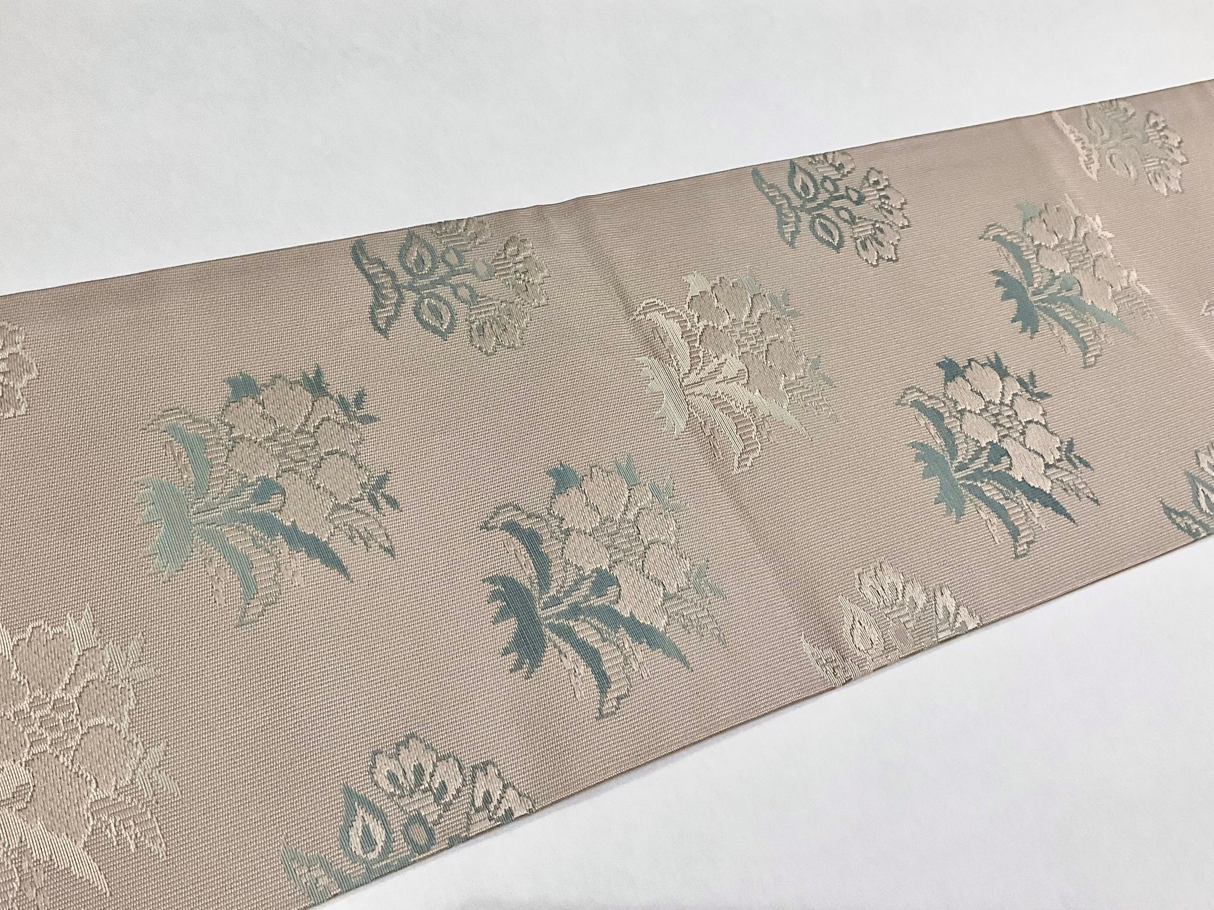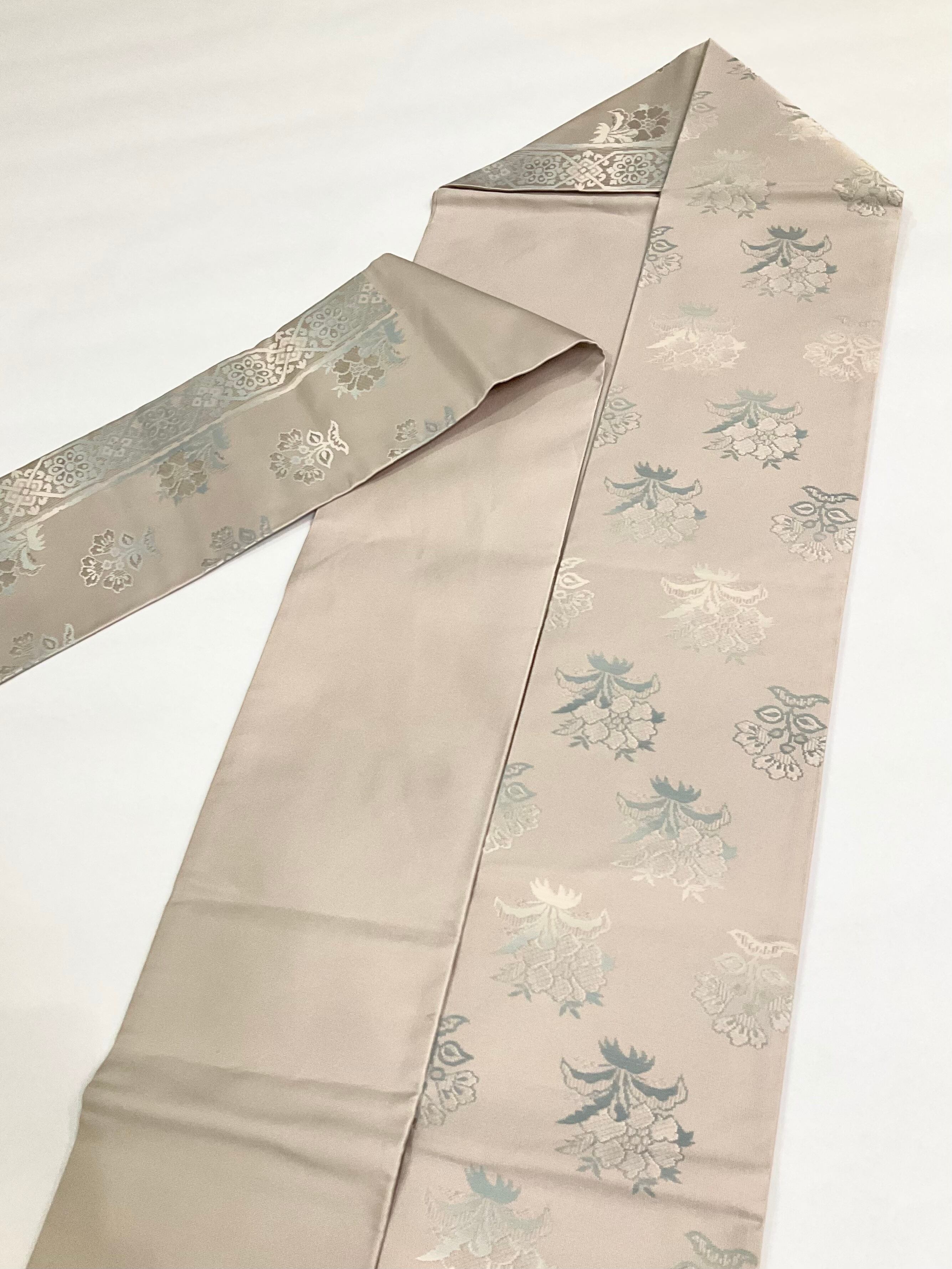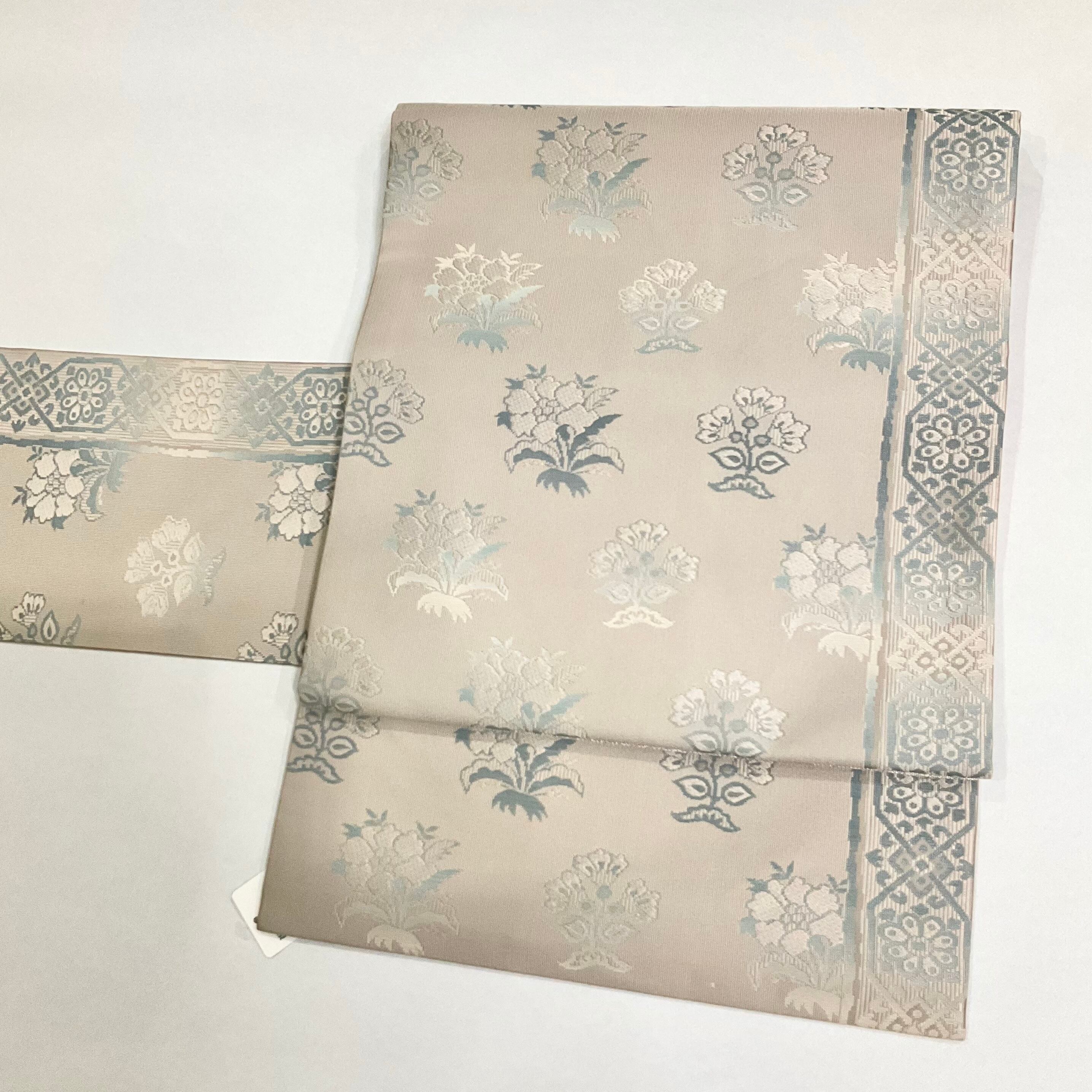グレージュの地色に、花模様がデザインされた名古屋帯です♪