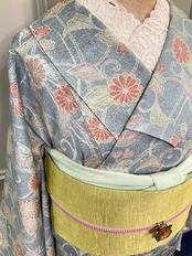全体的に淡いトーンのこちらのお着物。