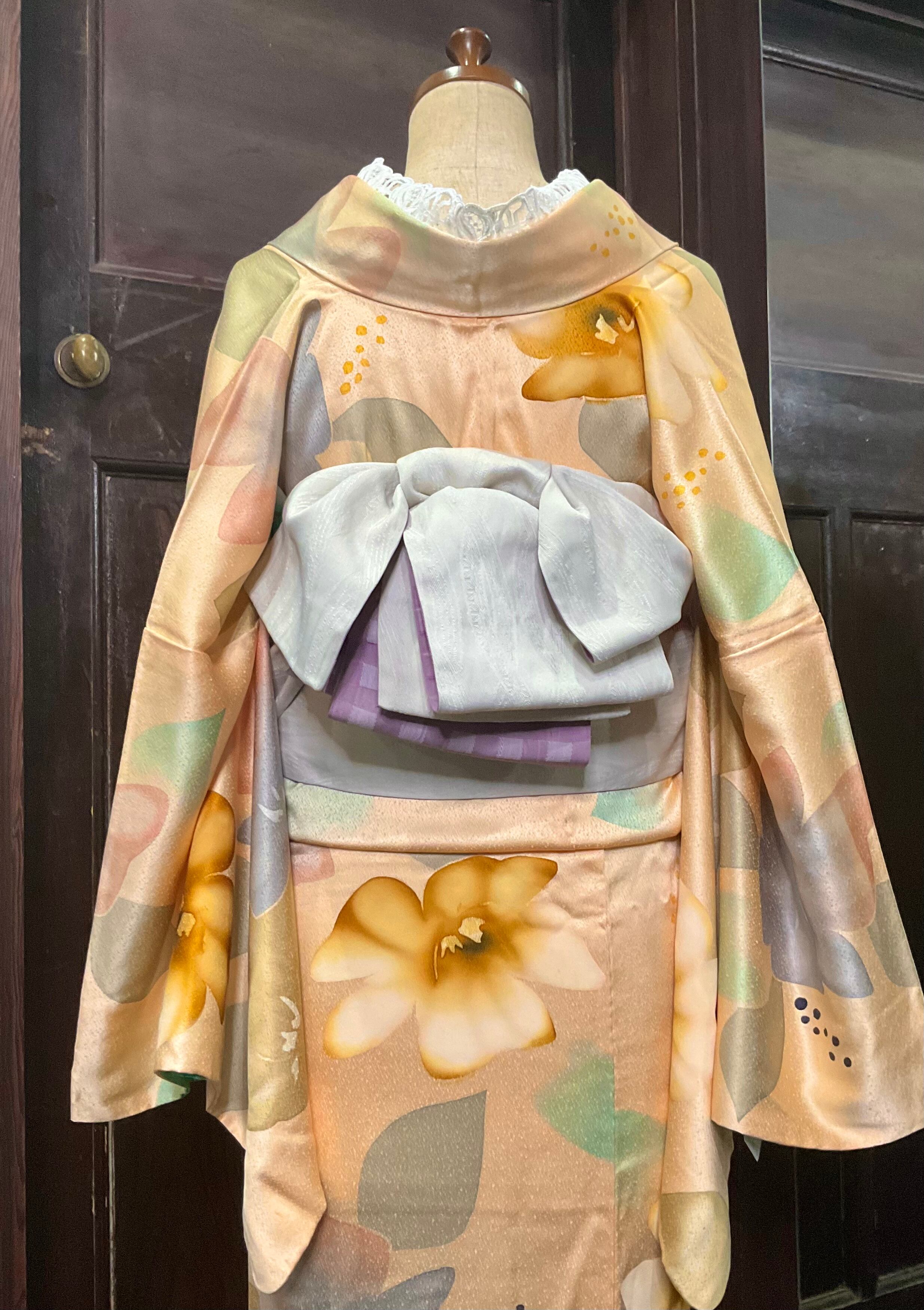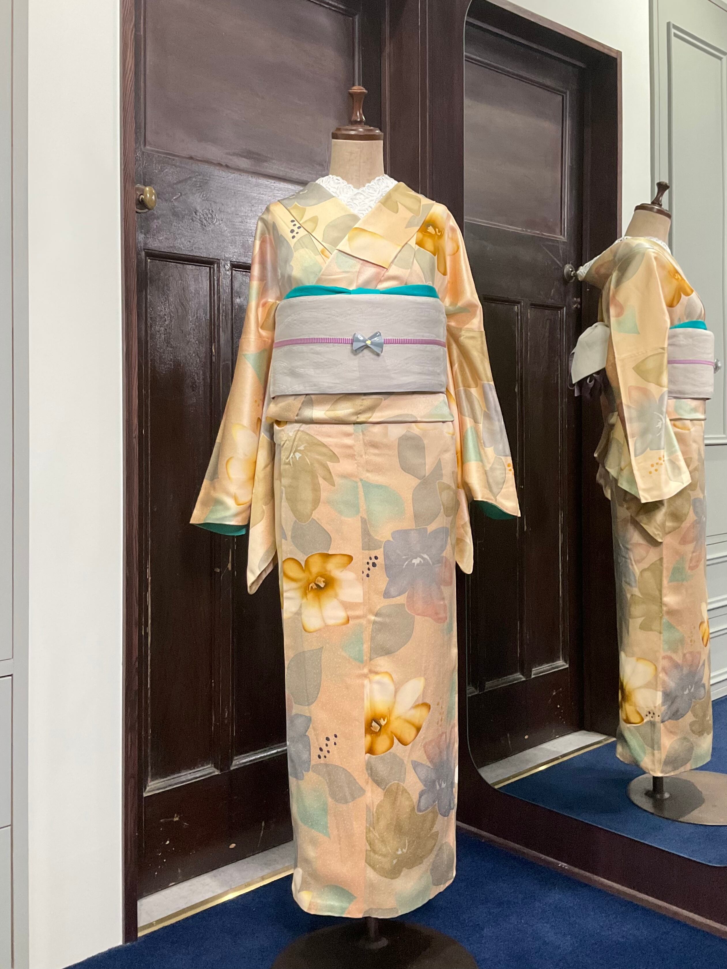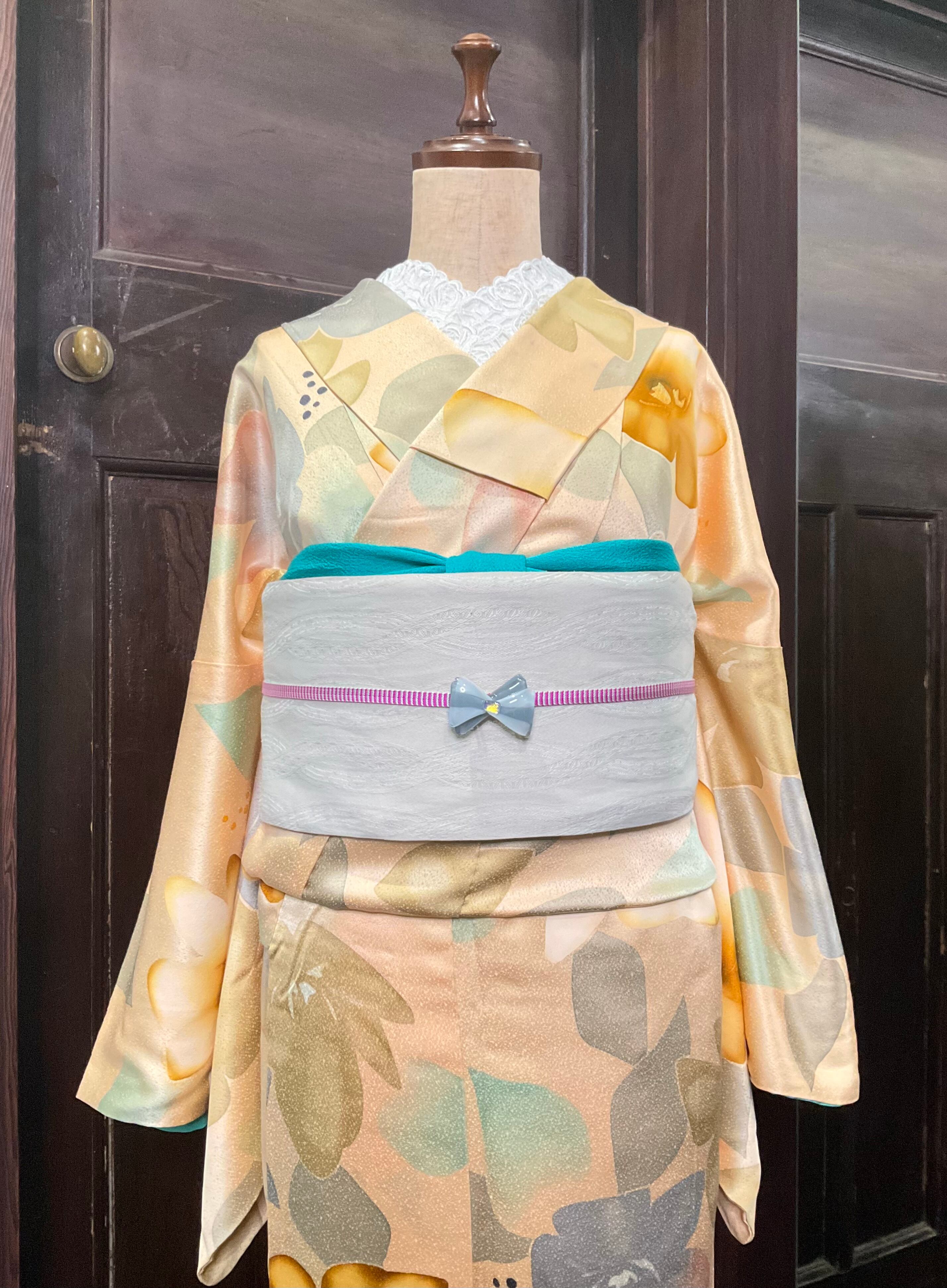 ふんわりカラーがやさしい印象のこちらのお着物。とても綺麗なお色味で素敵ですよね♡