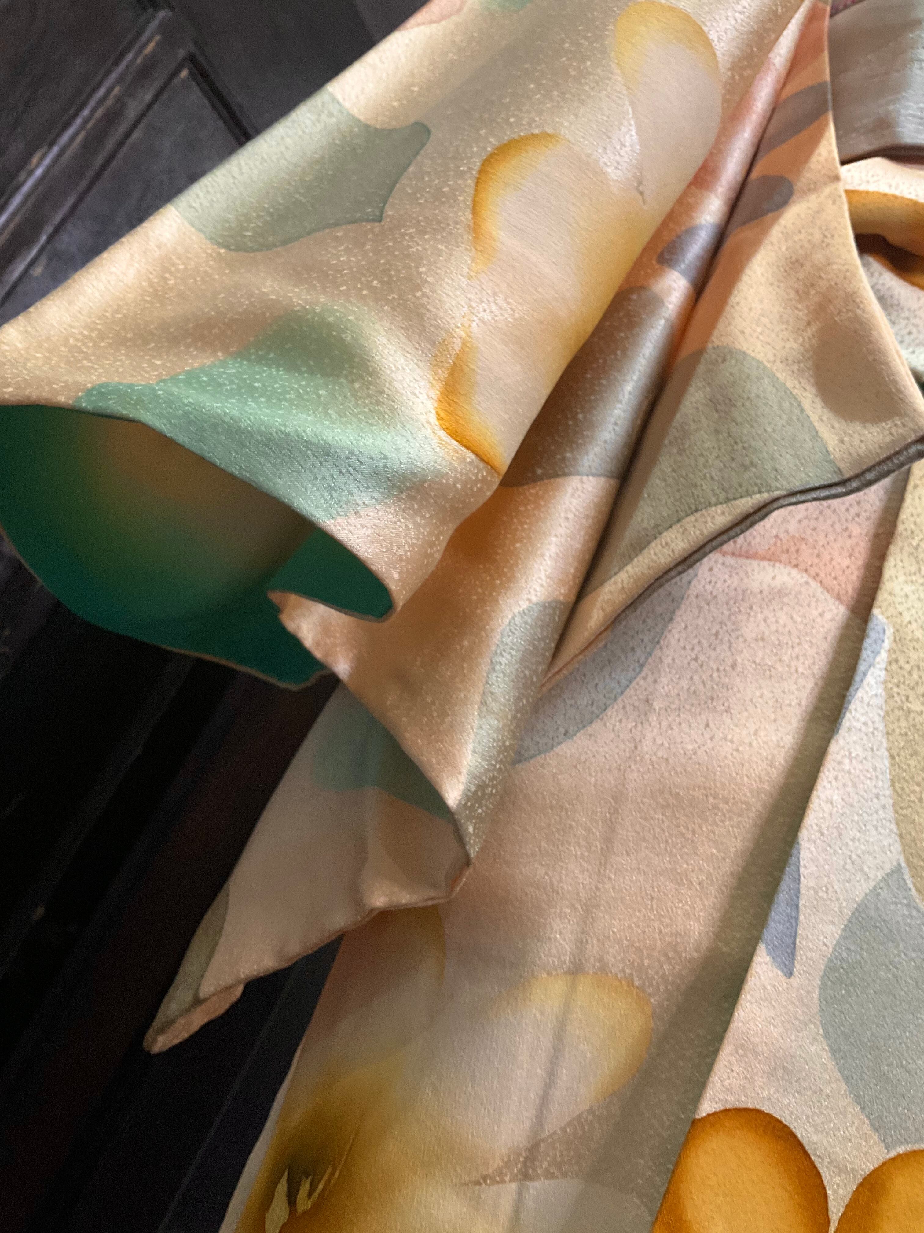 全体的に淡いトーンでデザインされていて、落ち着いた印象かと思いきや、八掛には明るいピーコックグリーン系が使われていることで、ポイントになっていて、また良いんですよね✨