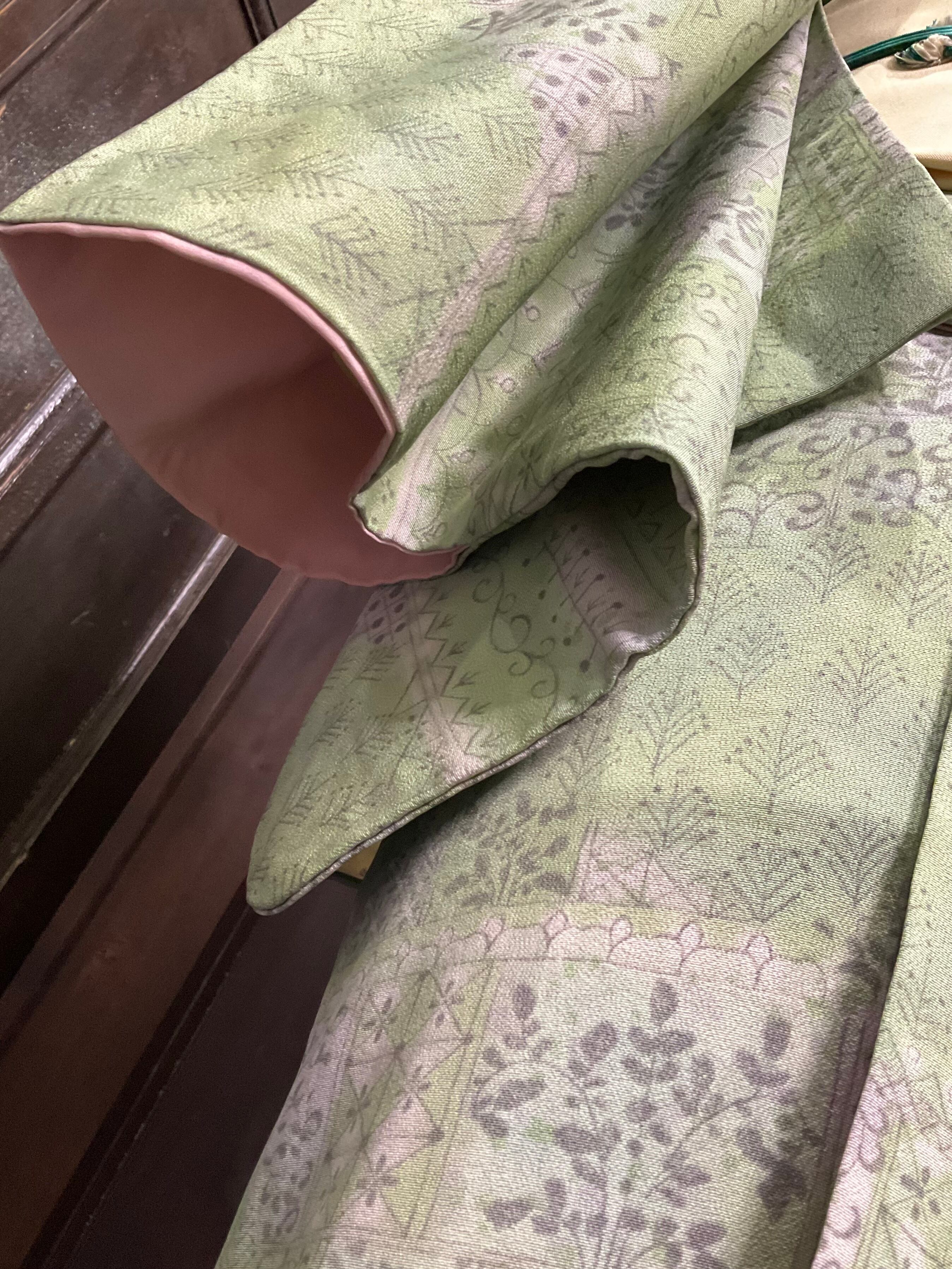 セージ・グリーン リトル・ガーデン癒しの庭*リサイクル小紋キモノ 0582