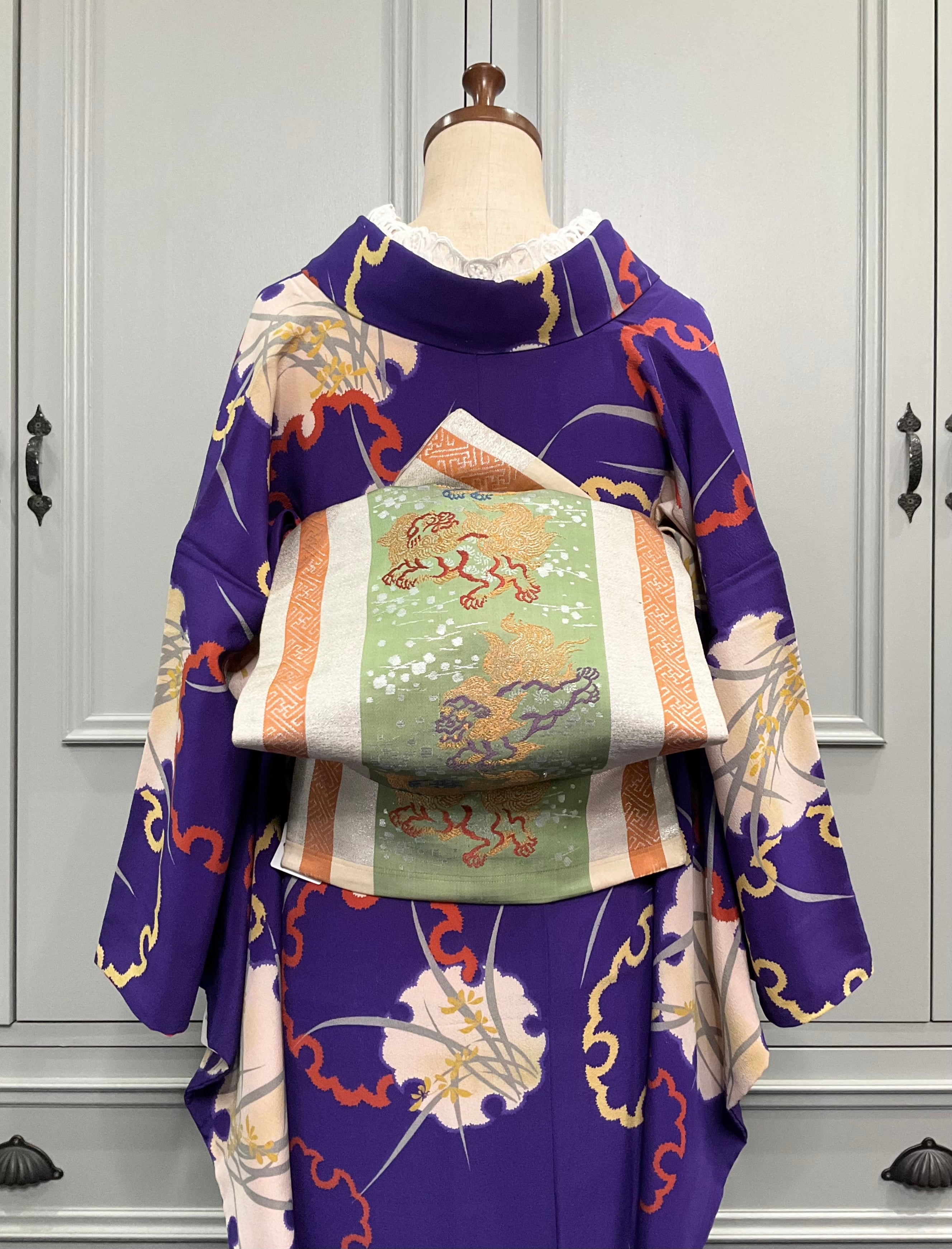 カラフルな獅子たちが描かれたこちらの名古屋帯。とてもかっこいいですよね✨